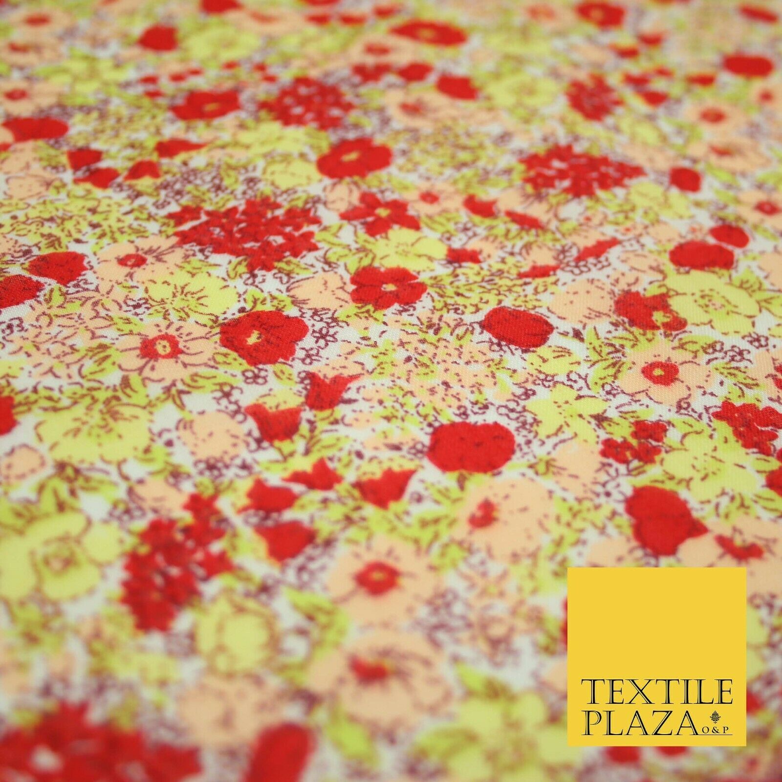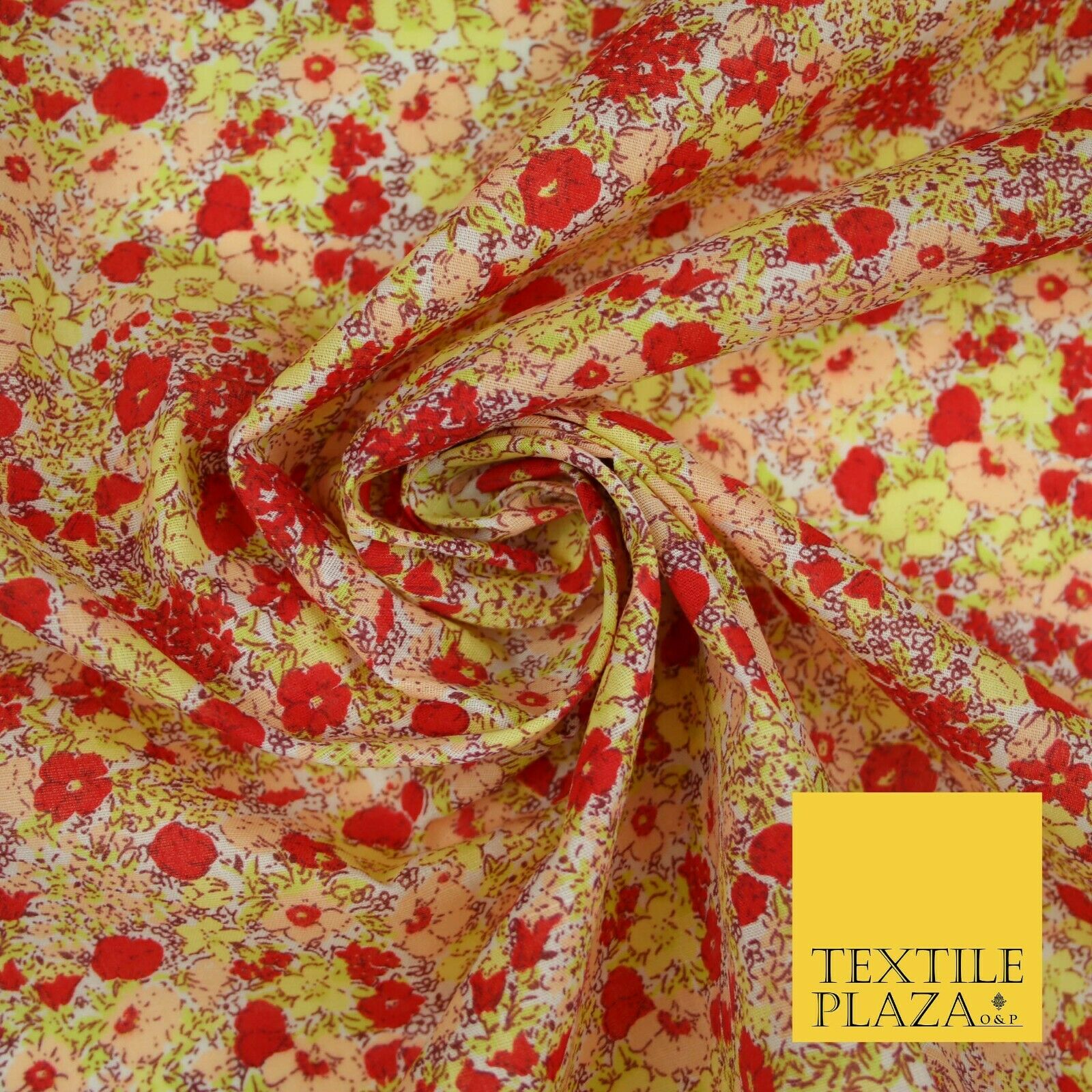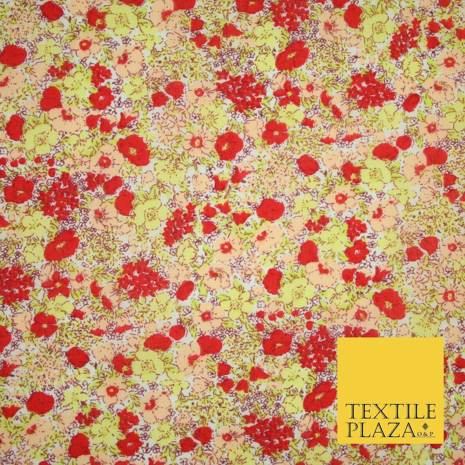 Red Pansy Cluster Ditsy Flower Printed Poly Cotton Fabric Polycotton Mask 3730
