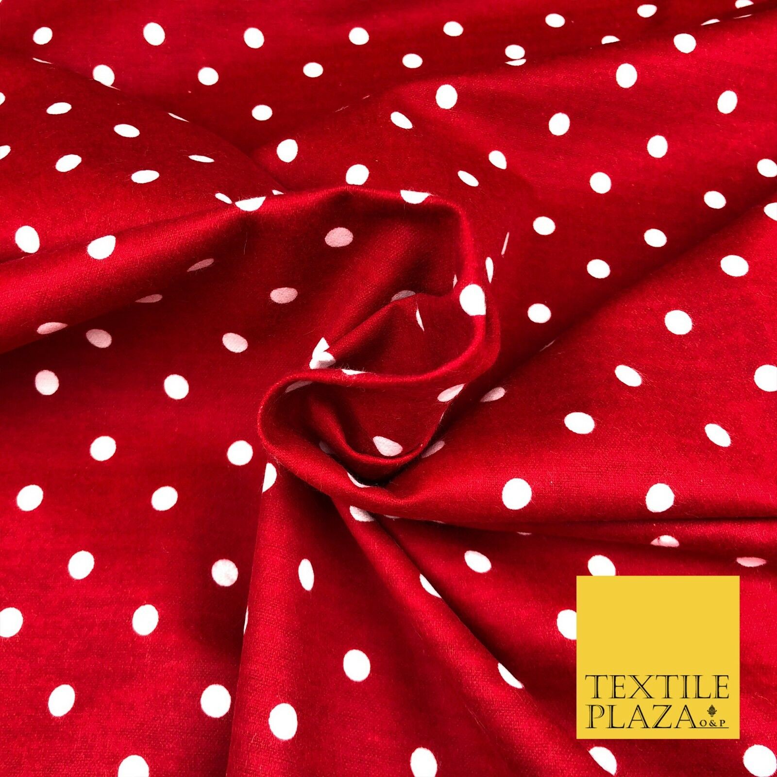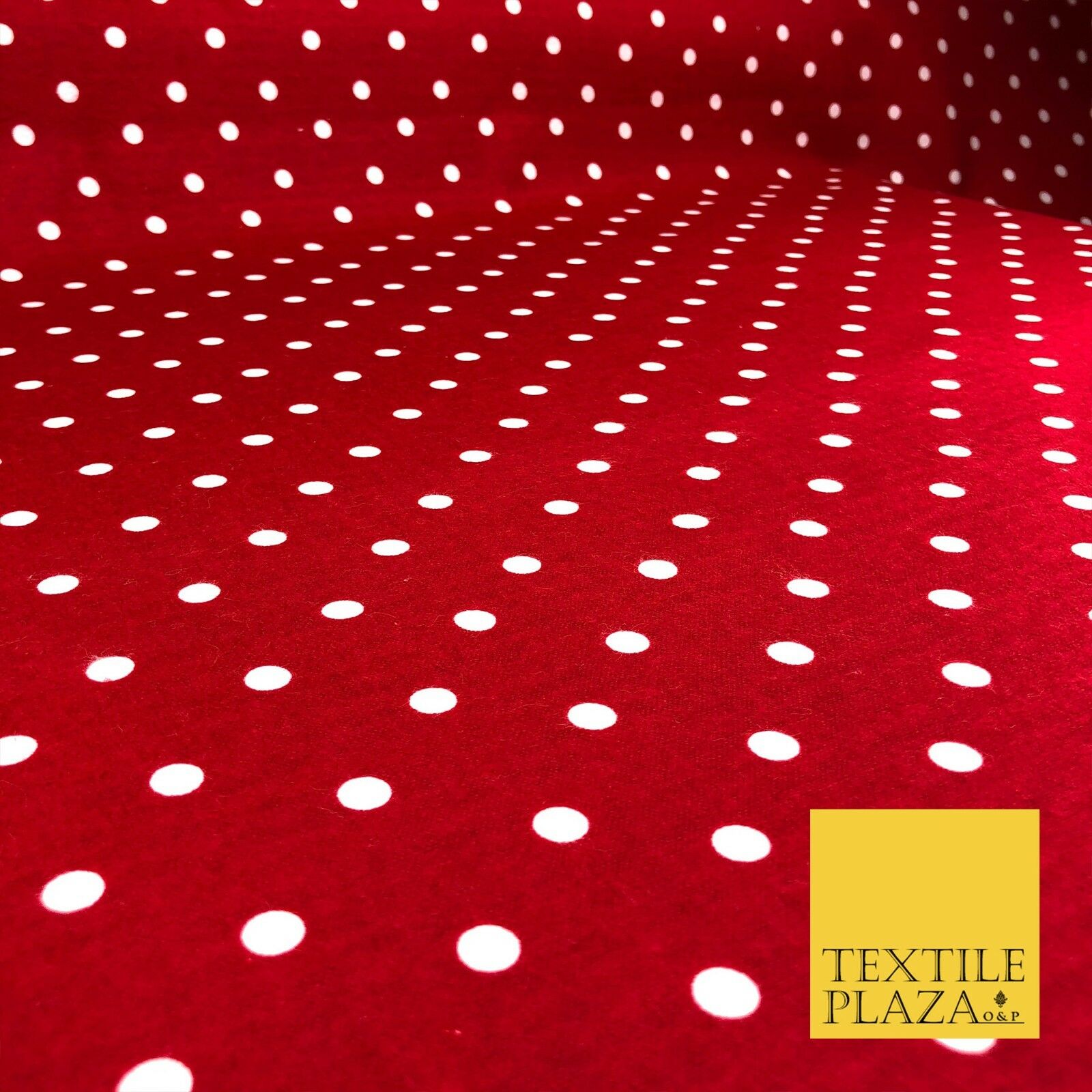 RED Soft Brushed Cotton Winceyette White Spot Dot Spotted Print Fabric RE914