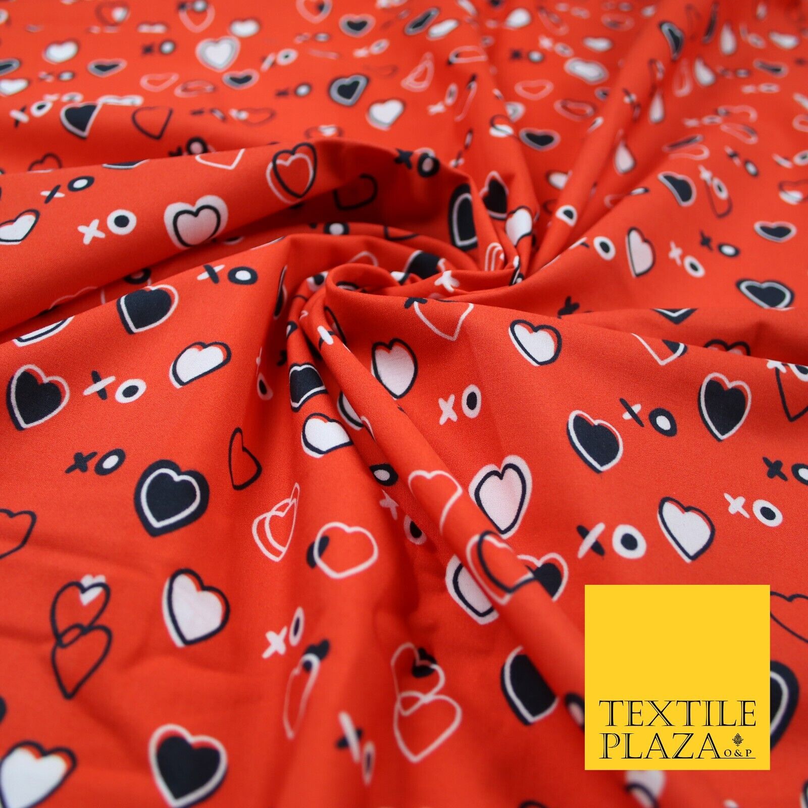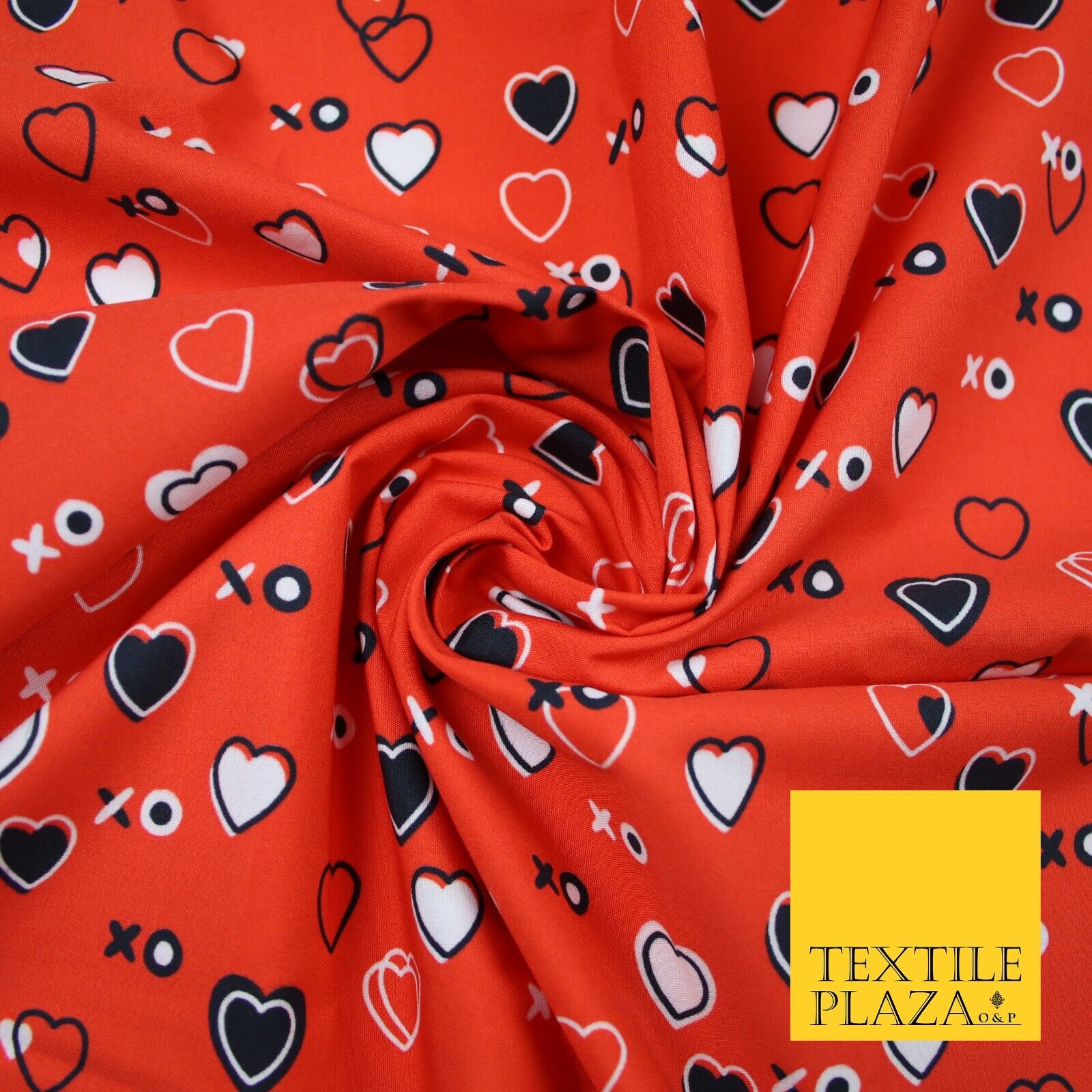 Red Valentine Love Hearts XO Hugs & Kisses Printed 100% Cotton Fabric 7357