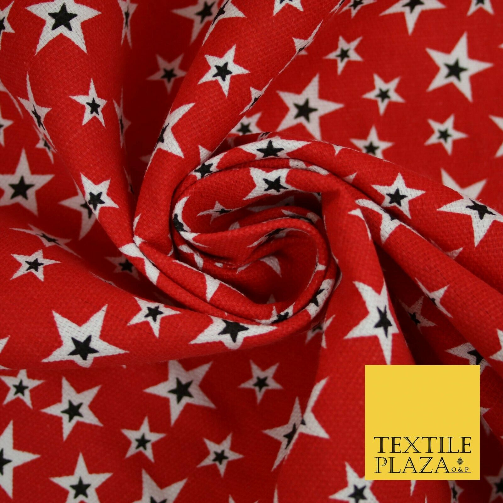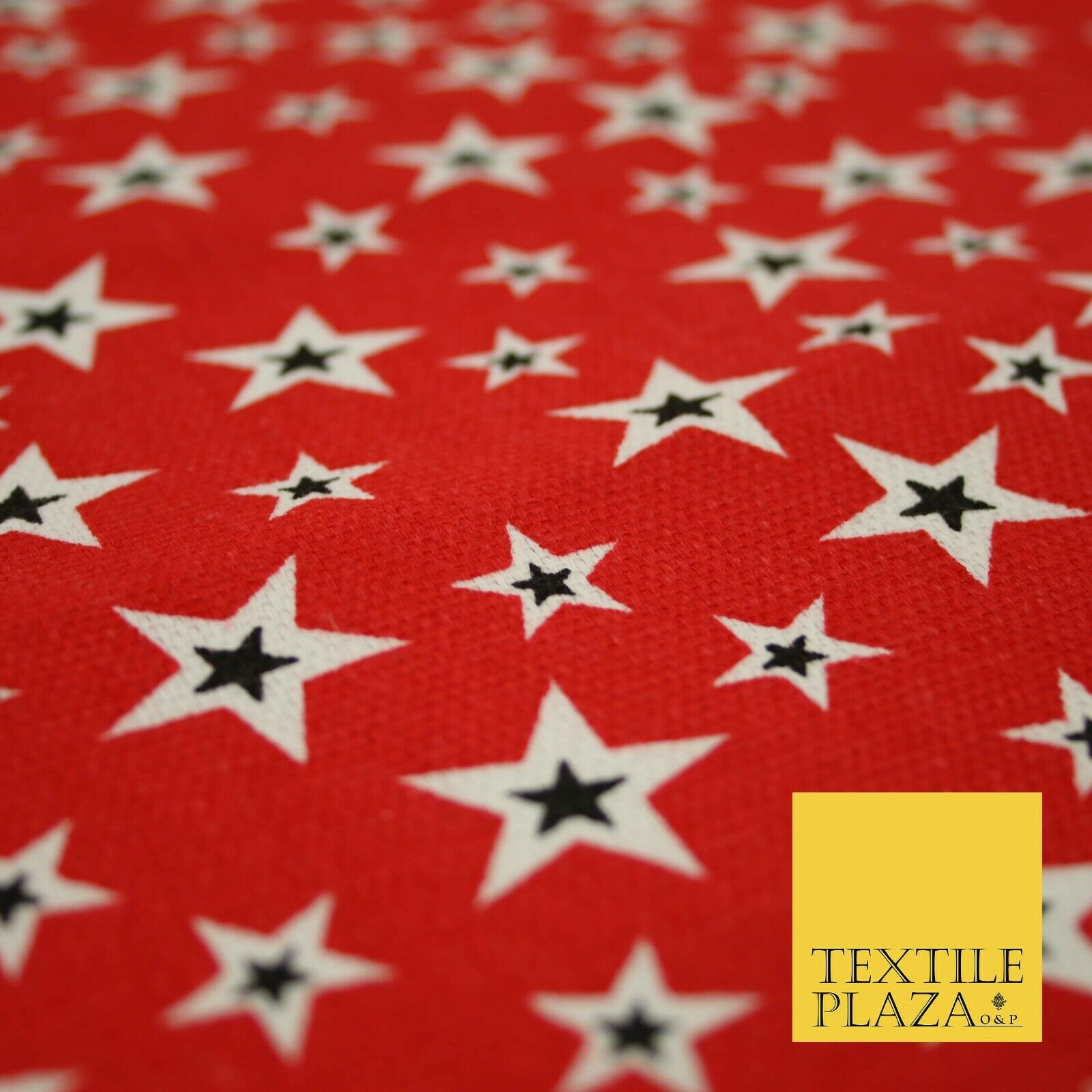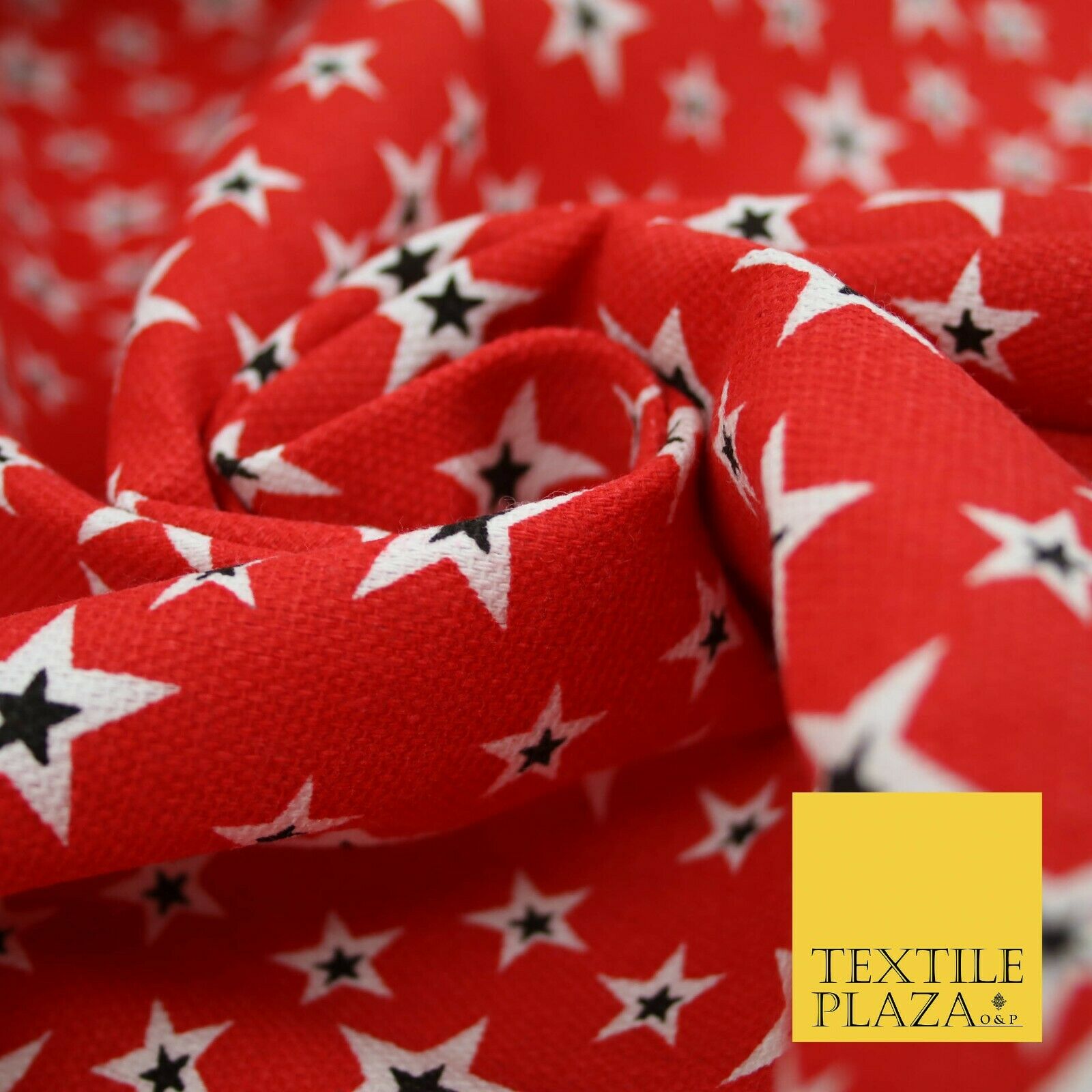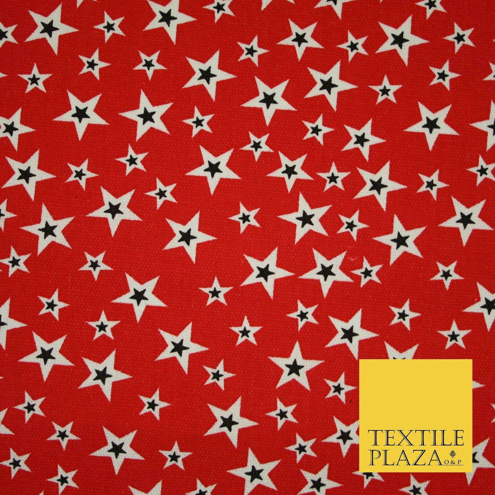 Red White Black Scattered Multi Stars Printed Cotton Canvas Fabric 58" Wide 4127