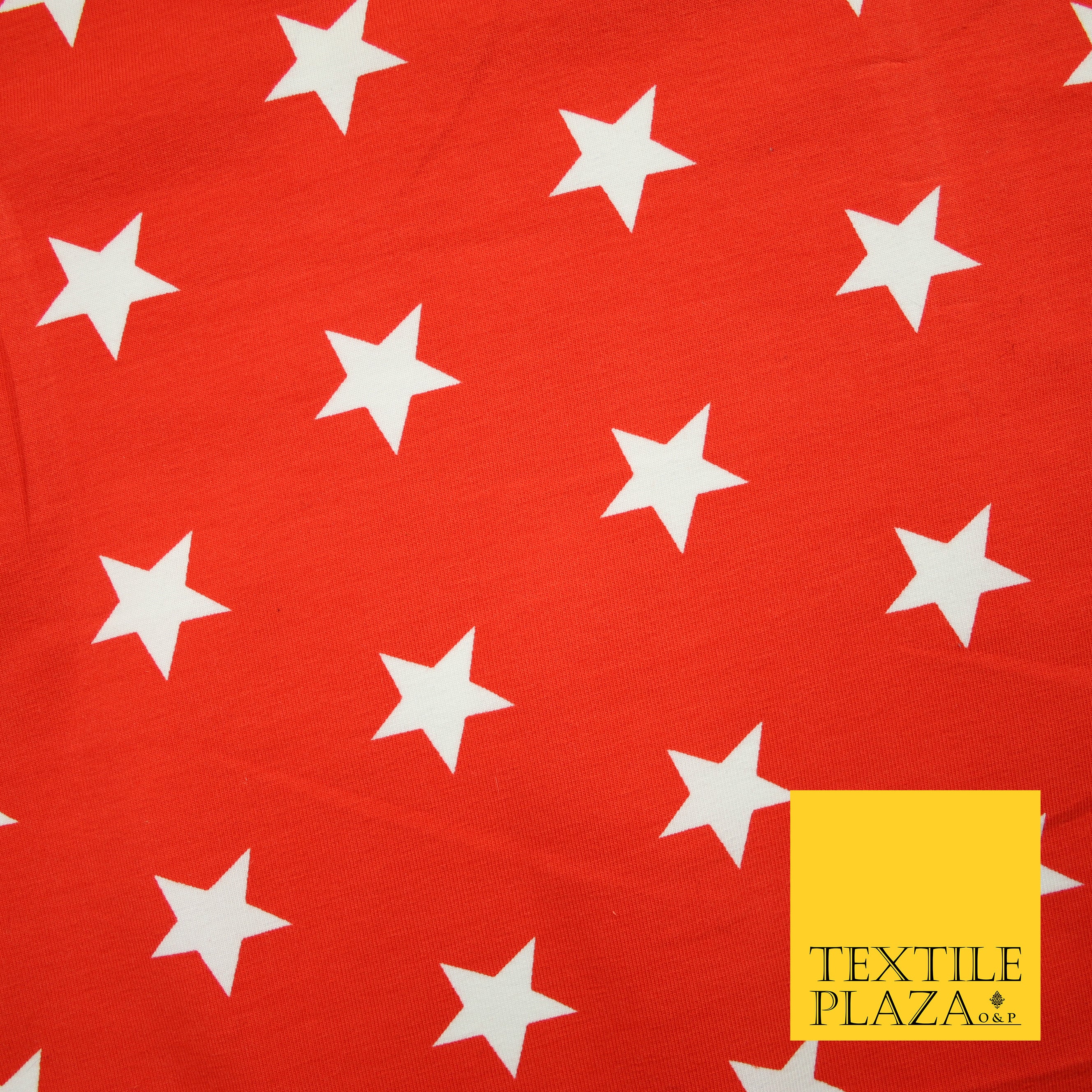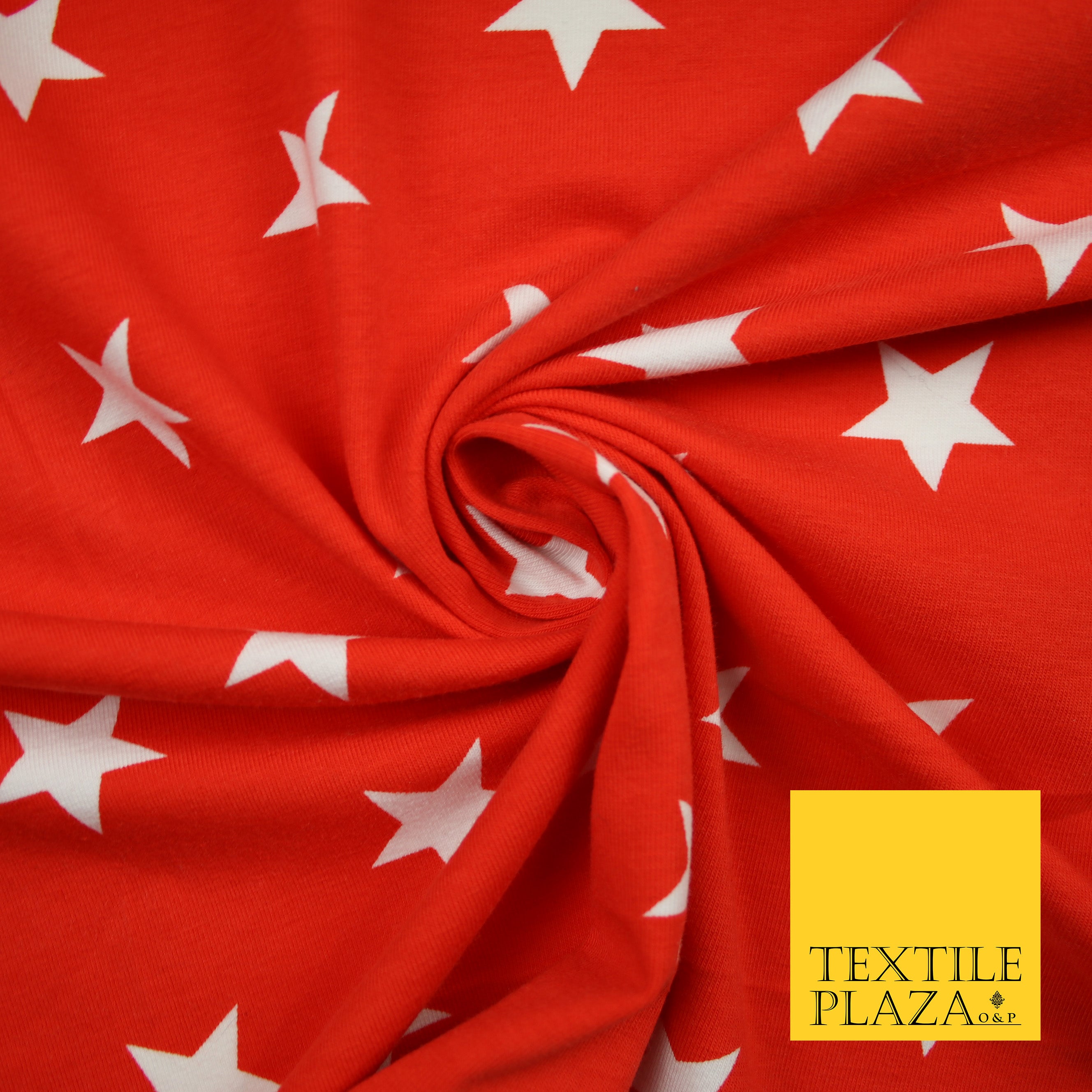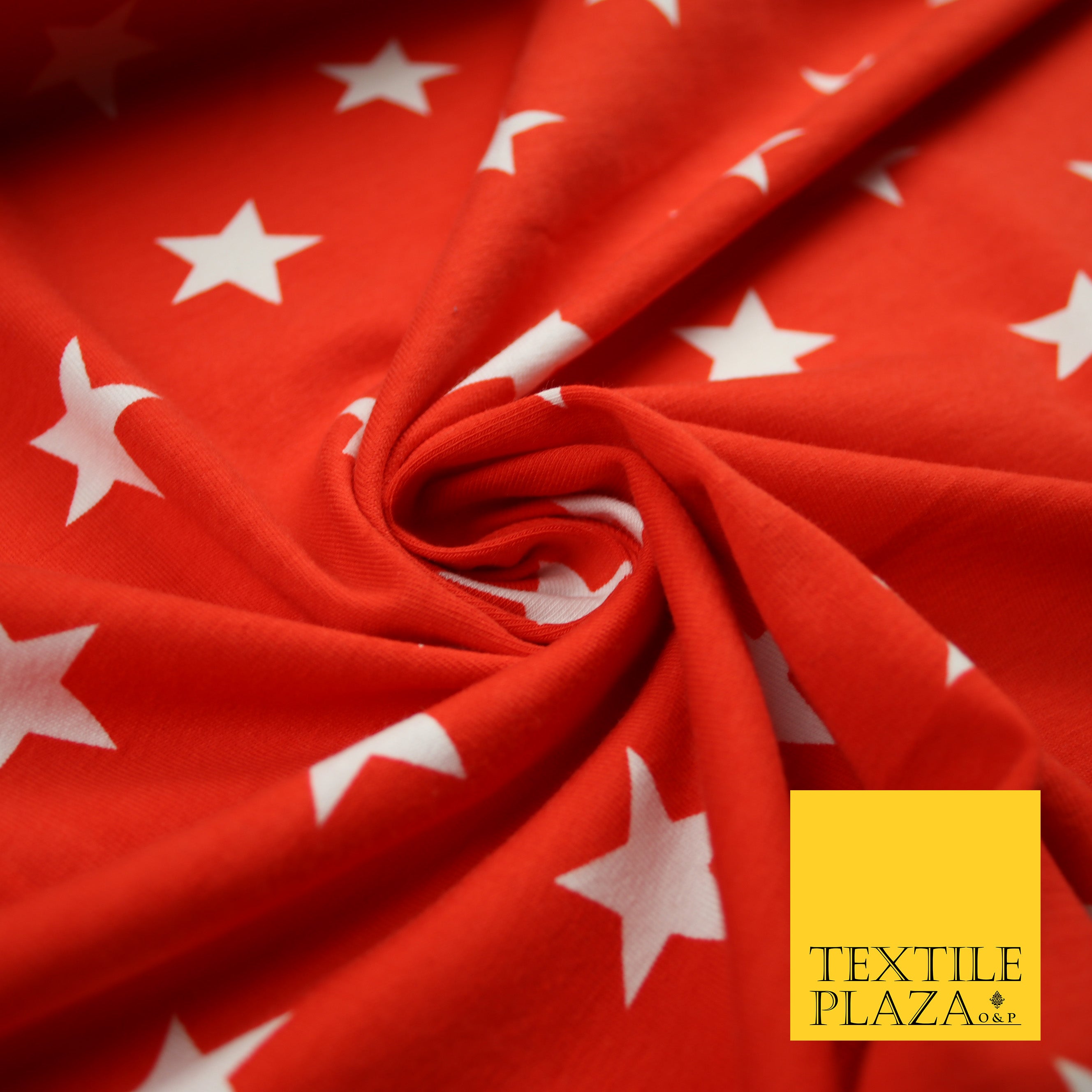 Red White Scattered 1" Stars Printed Soft Cotton Jersey Stretch Fabric 59" 4982