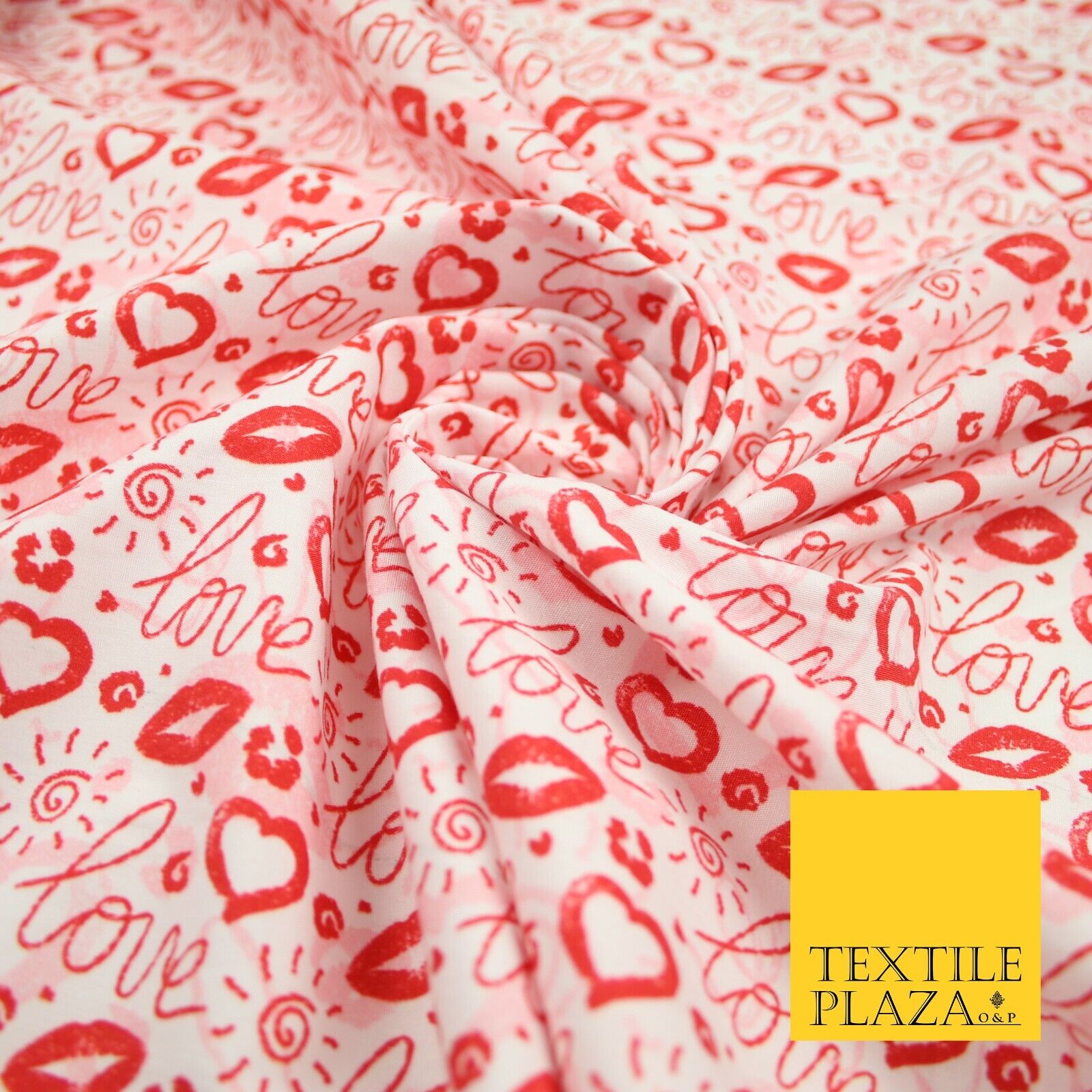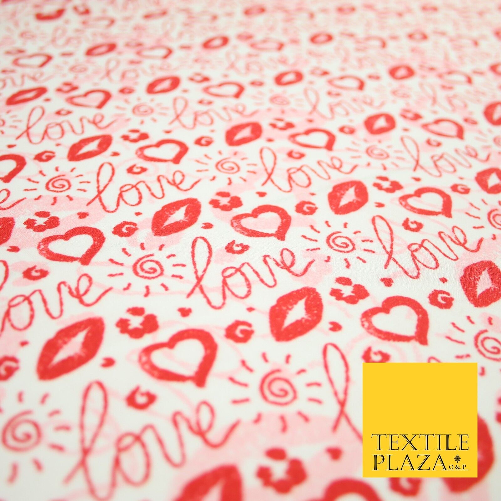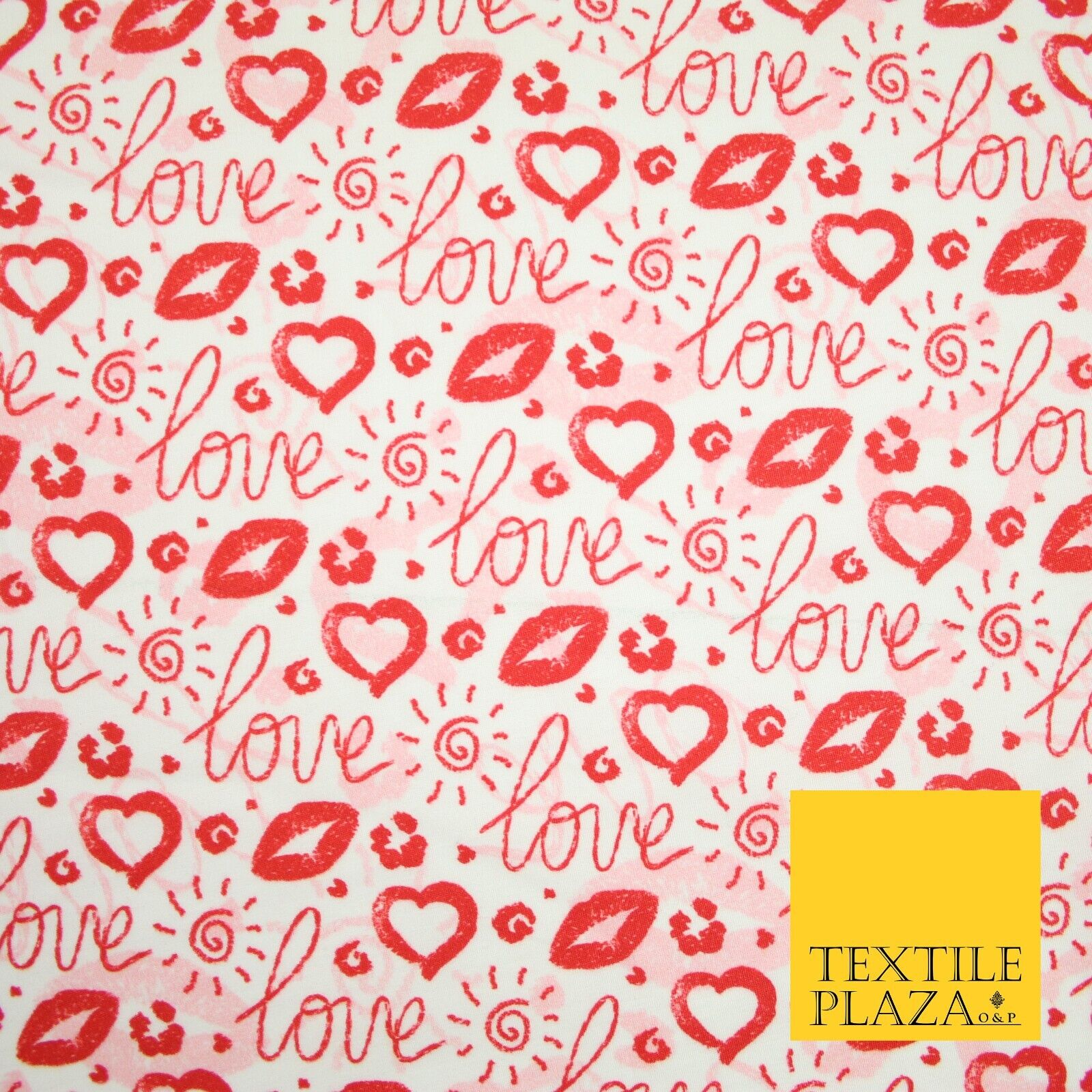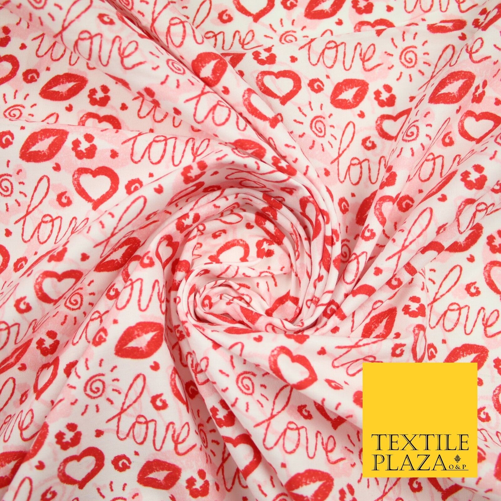 Red White Valentine Love Hearts Lipstick Kisses Printed 100% Cotton Fabric 7364