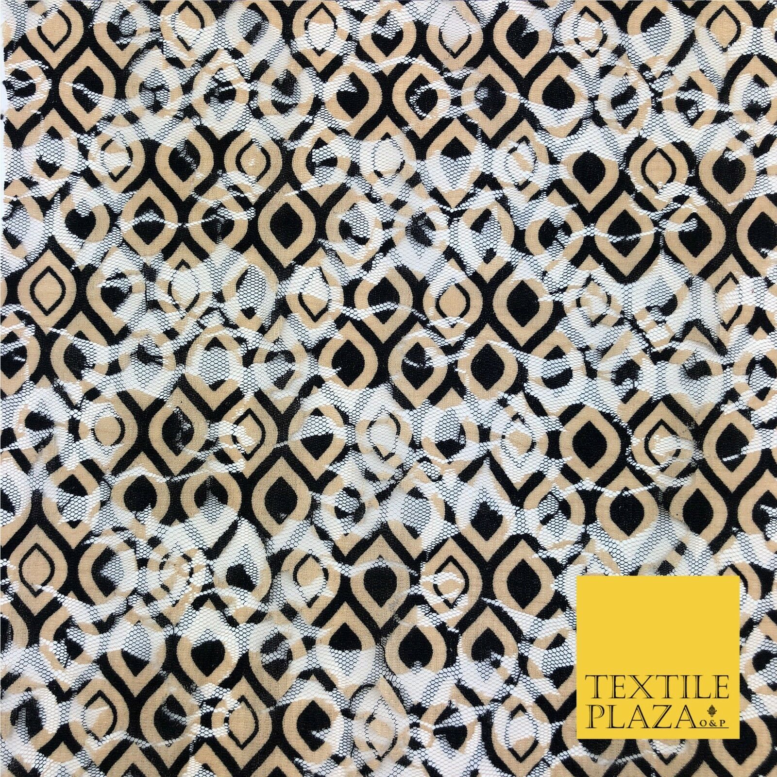 Retro Peardrop Geometric Black & Gold Net Lace Fabric Trendy Dress Fashion GE831
