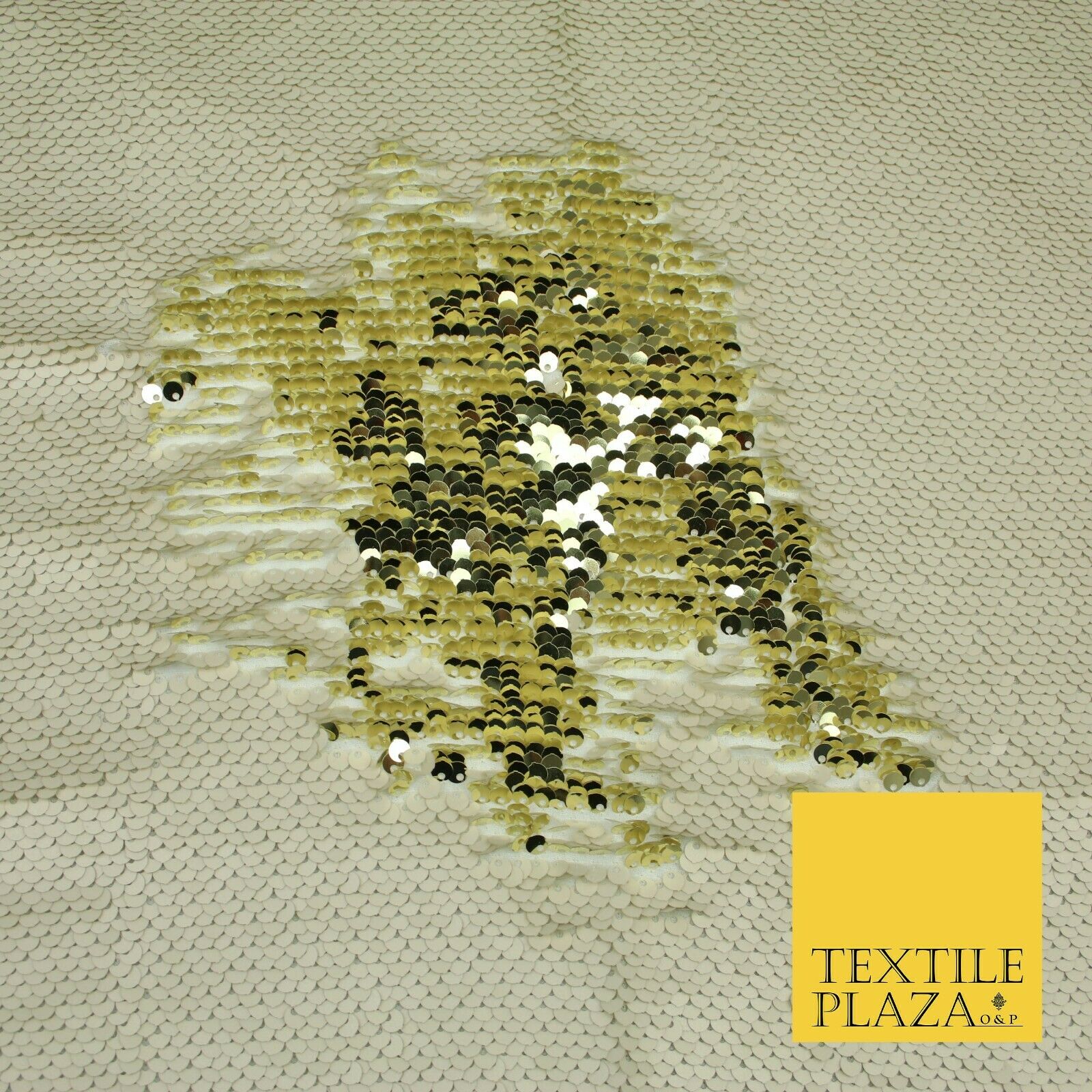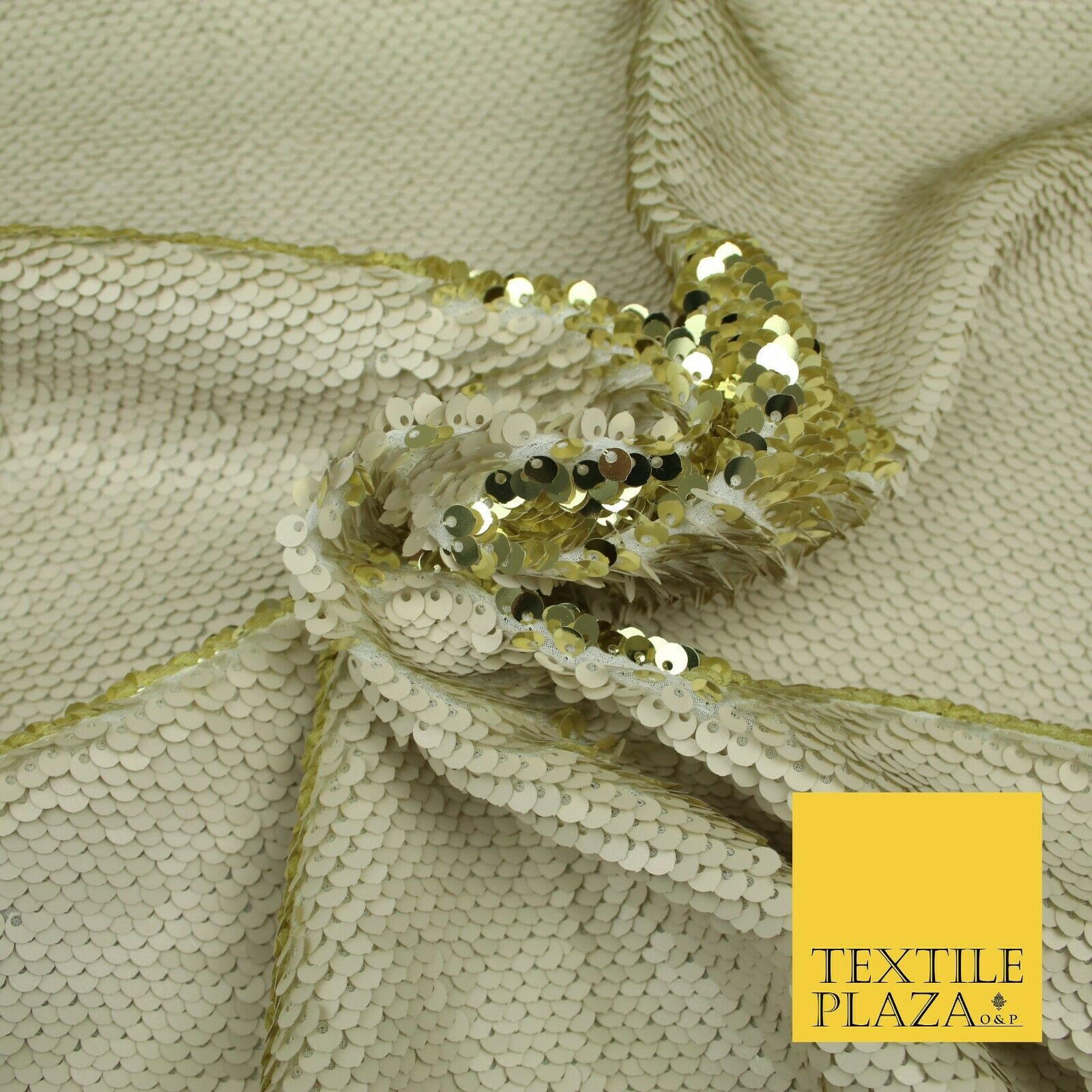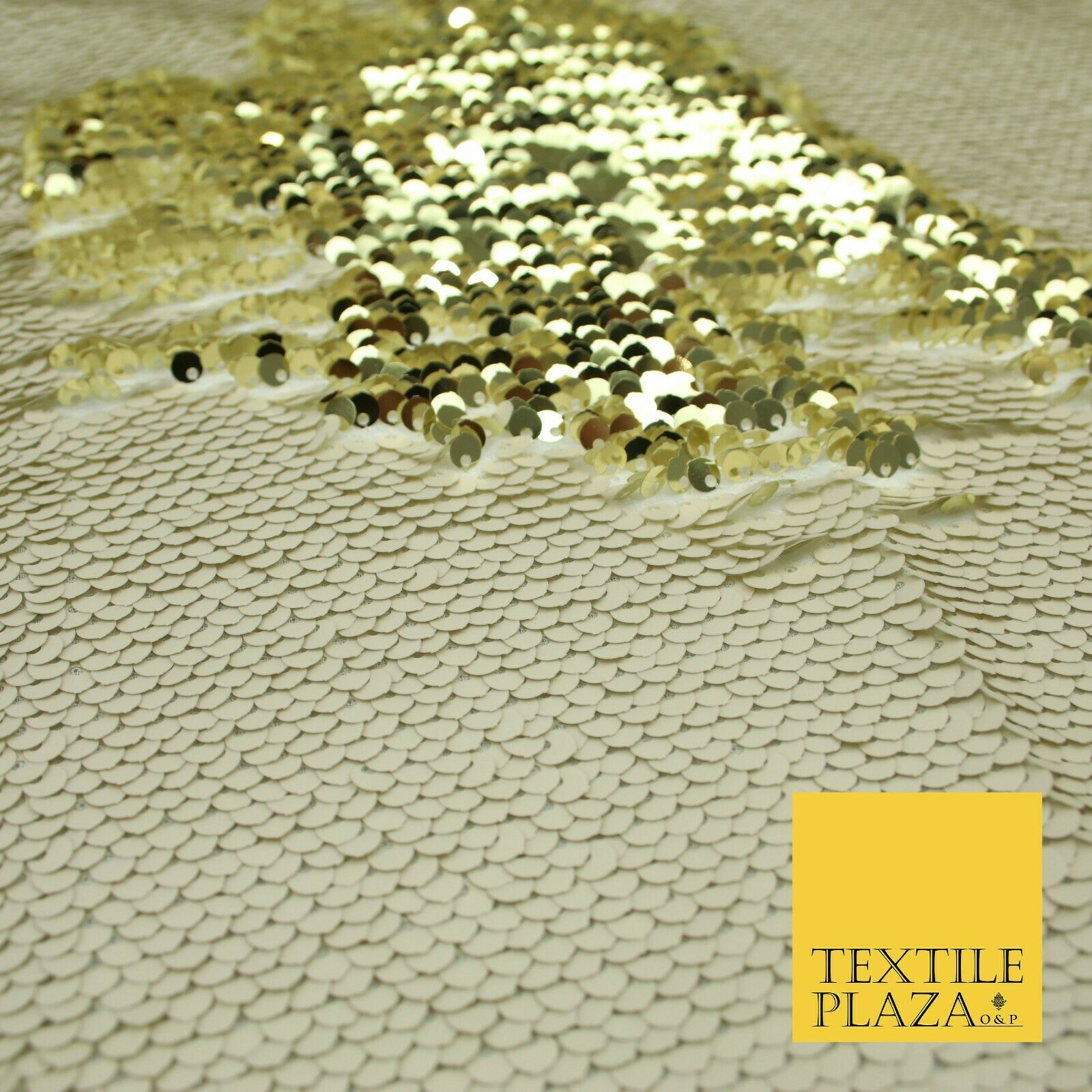 Reversible GOLD & CREAM MERMAID SEQUIN Fabric 2 Colour Way Changing Net 1815