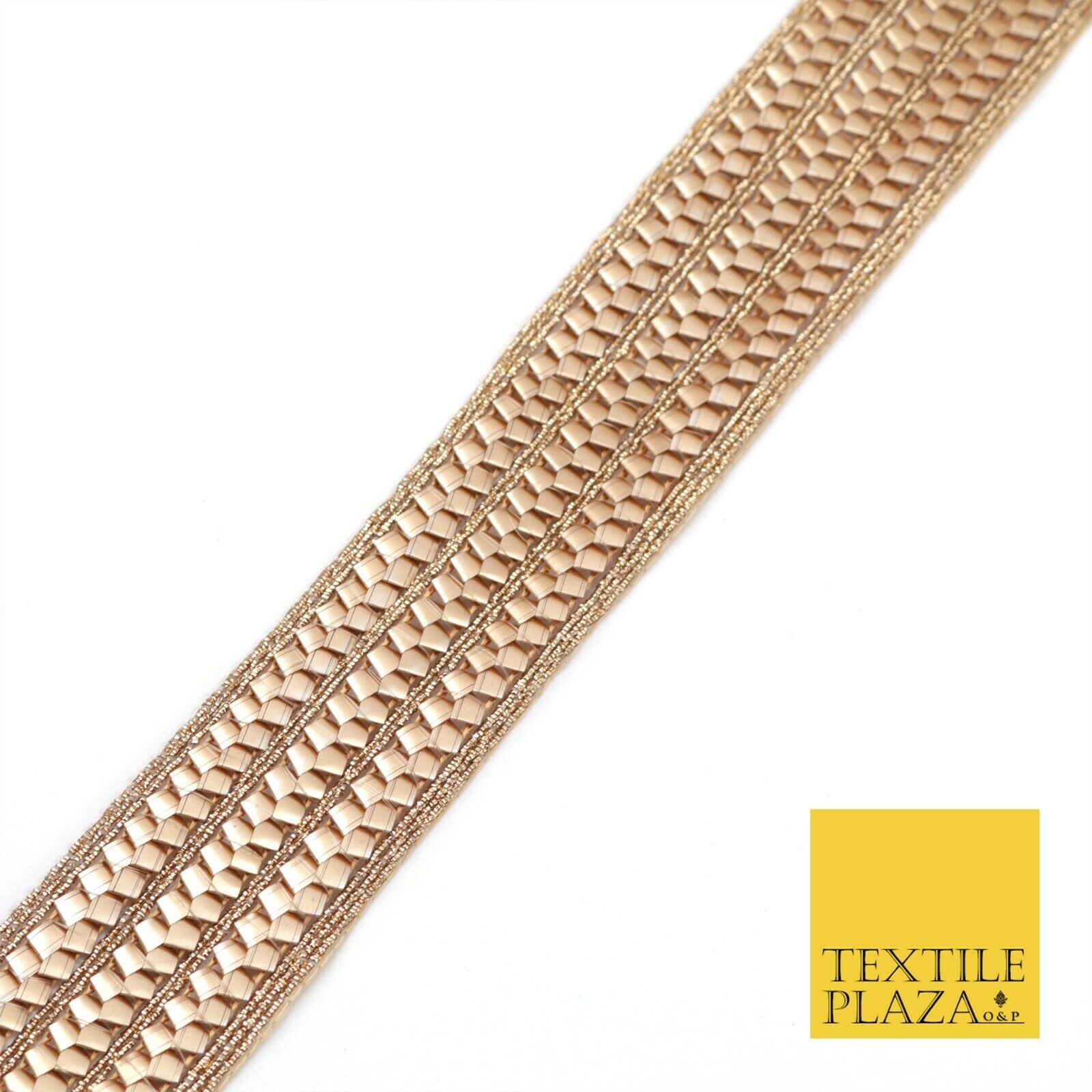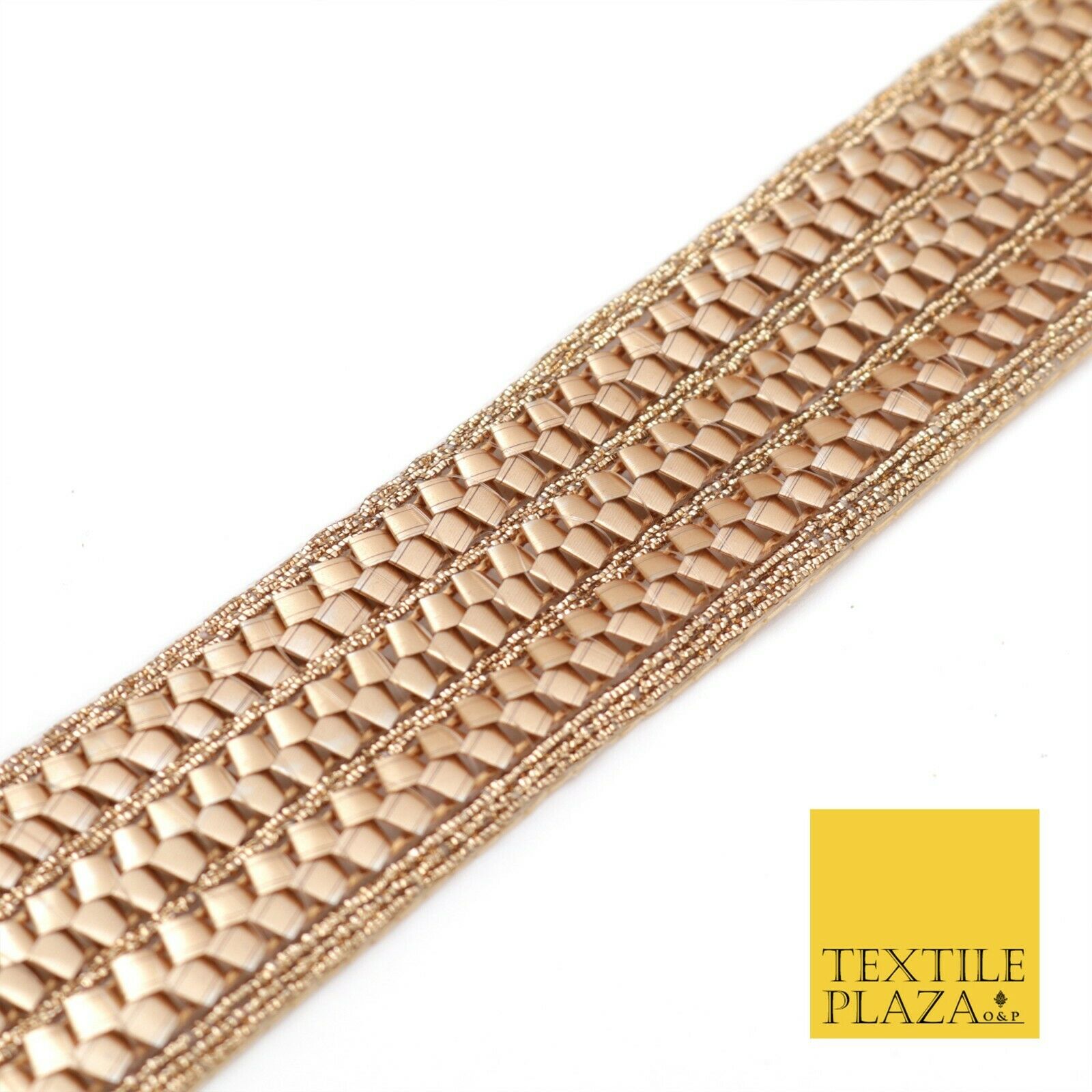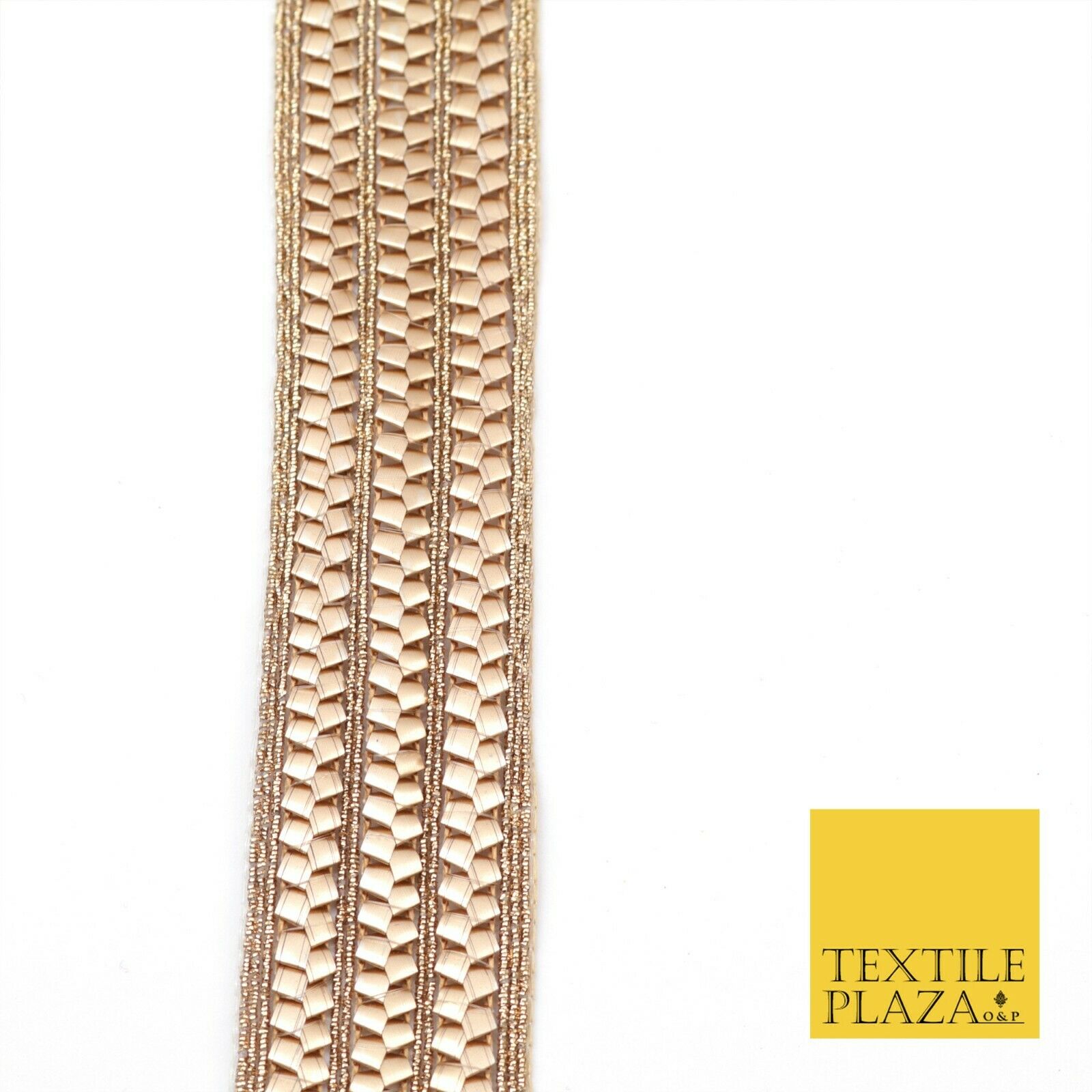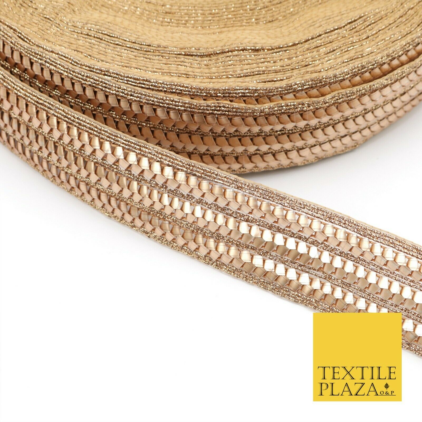 Rose Gold Triple Metal Crush Trimming Border Ribbon Indian Ethnic Trim X287