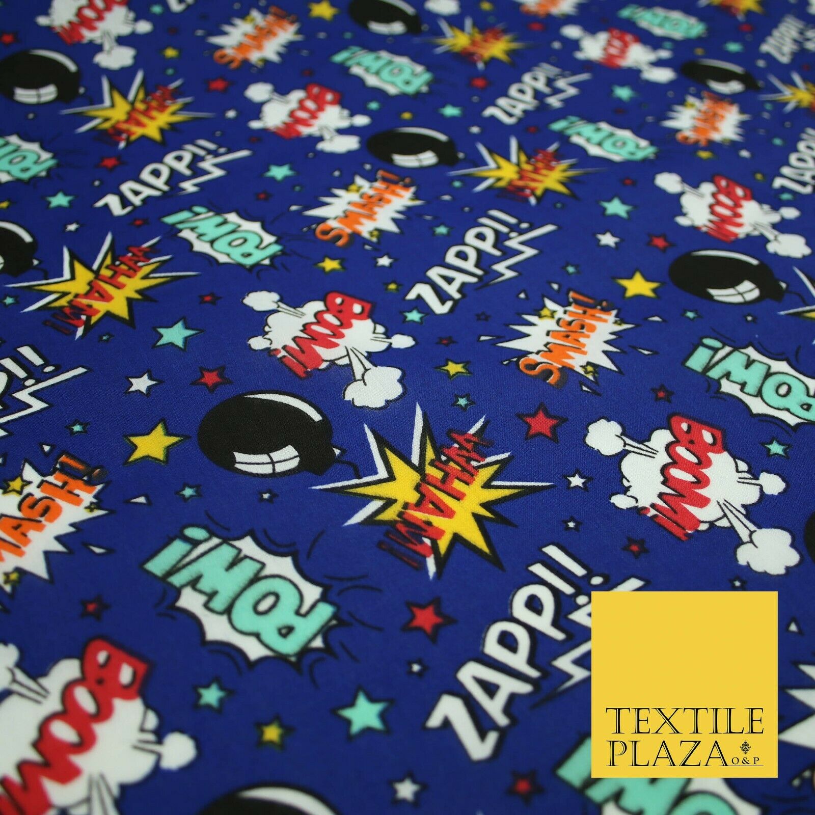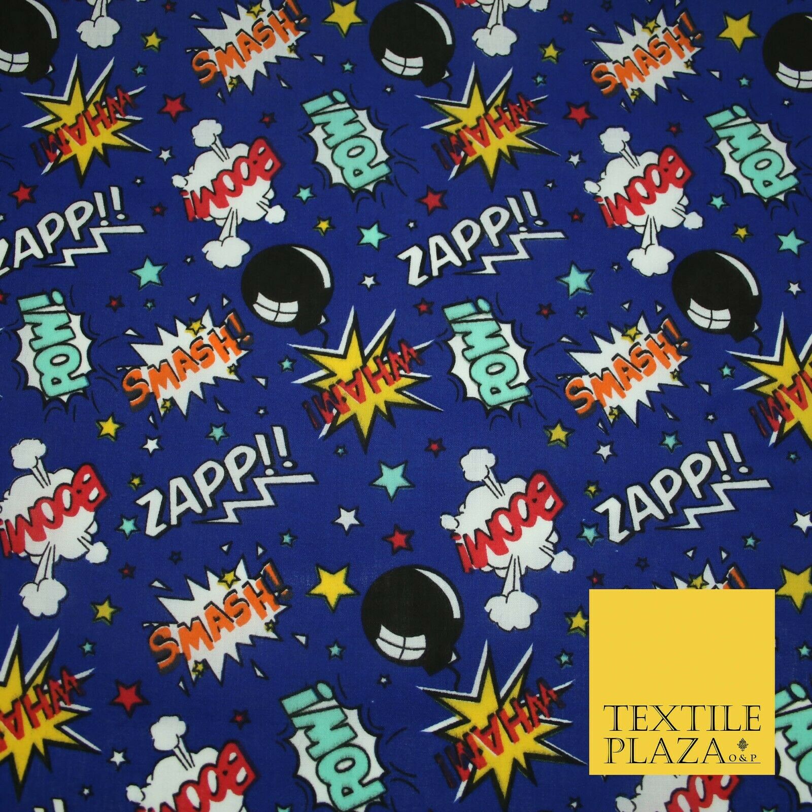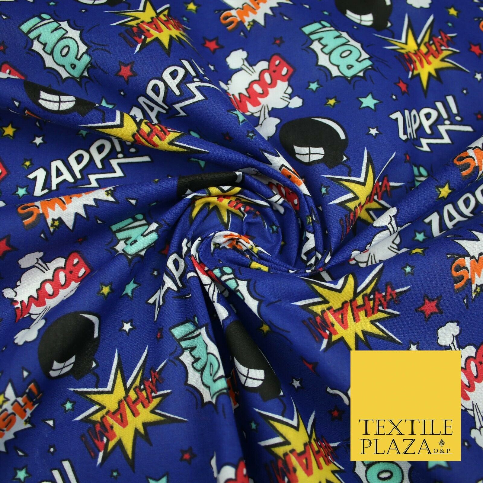 Royal Blue Comic ZAPP POW BOOM Printed Polycotton Dress Craft Fabric 44" 5231