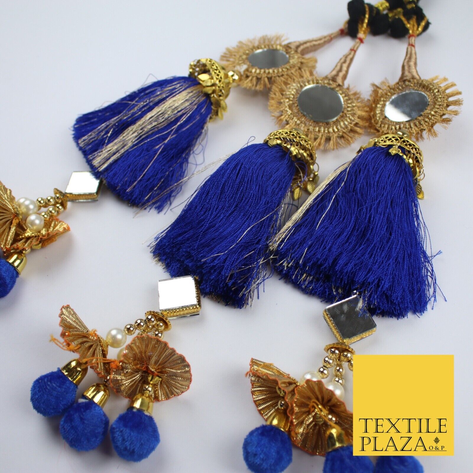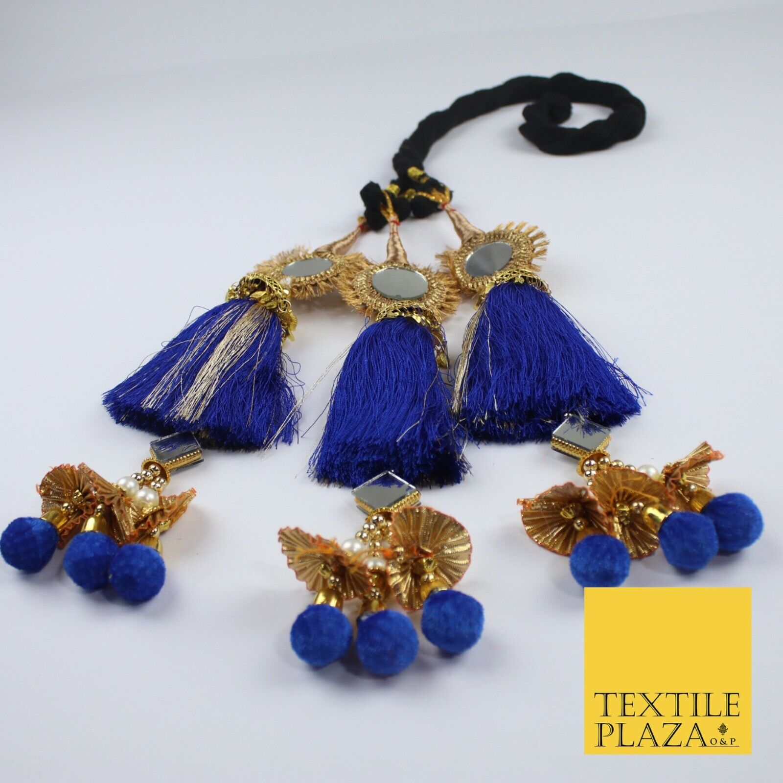 ROYAL BLUE MIRROR Parandi Paranda Indian Tassels Mehndi Jago Hair Braid PR603