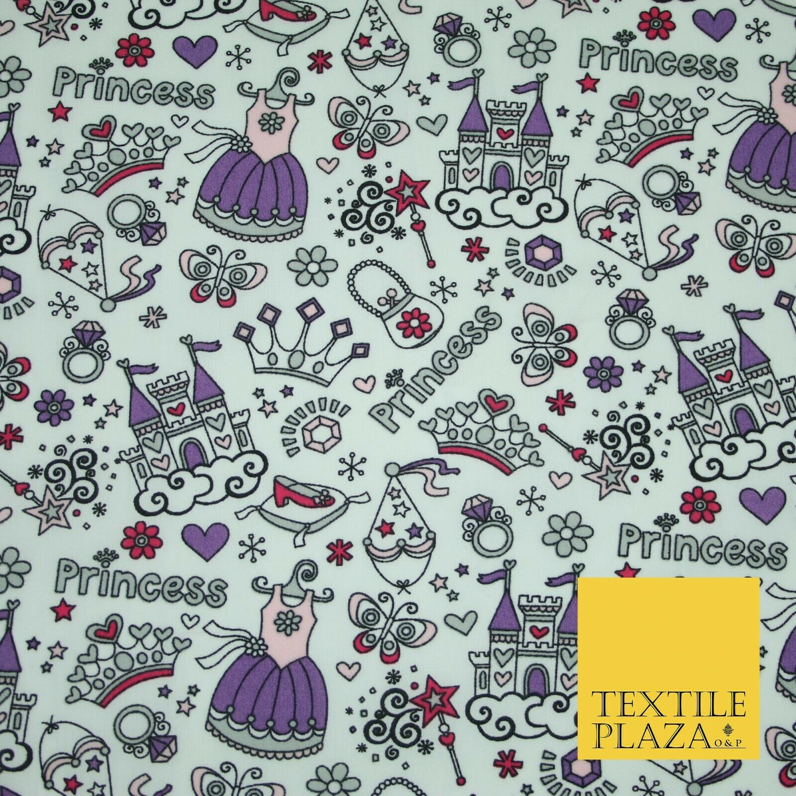 Royal Princess Girly Crown Jewels Printed Poly Cotton Fabric Polycotton Mask 44"