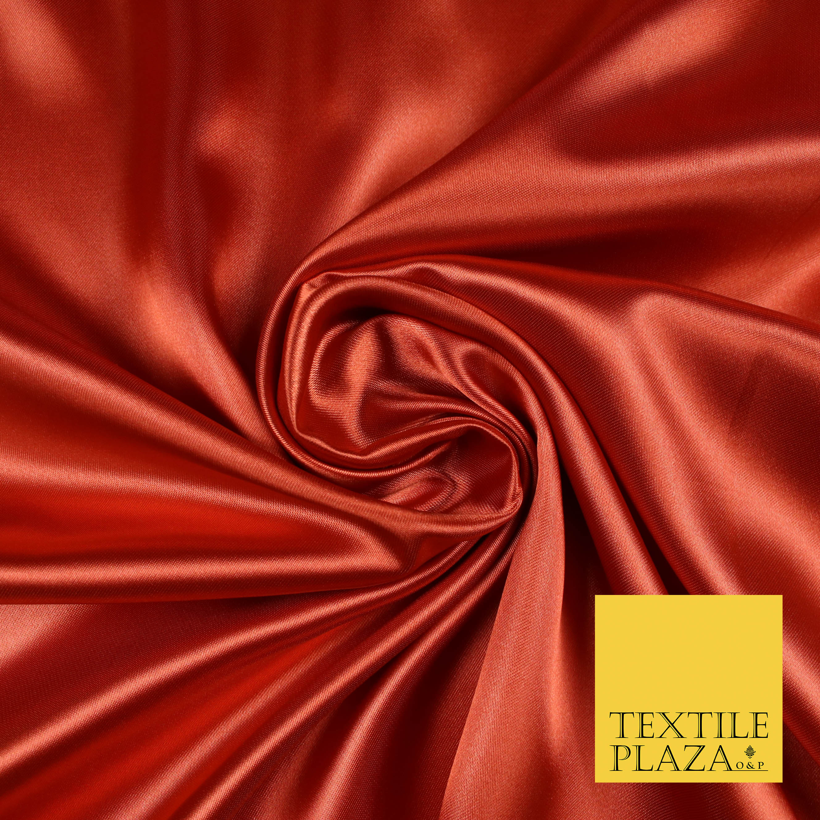 RUST TERRACOTTA Luxury Plain Smooth Shiny Lightweight Poly Satin Fabric Dress Lining Material 58" 5686