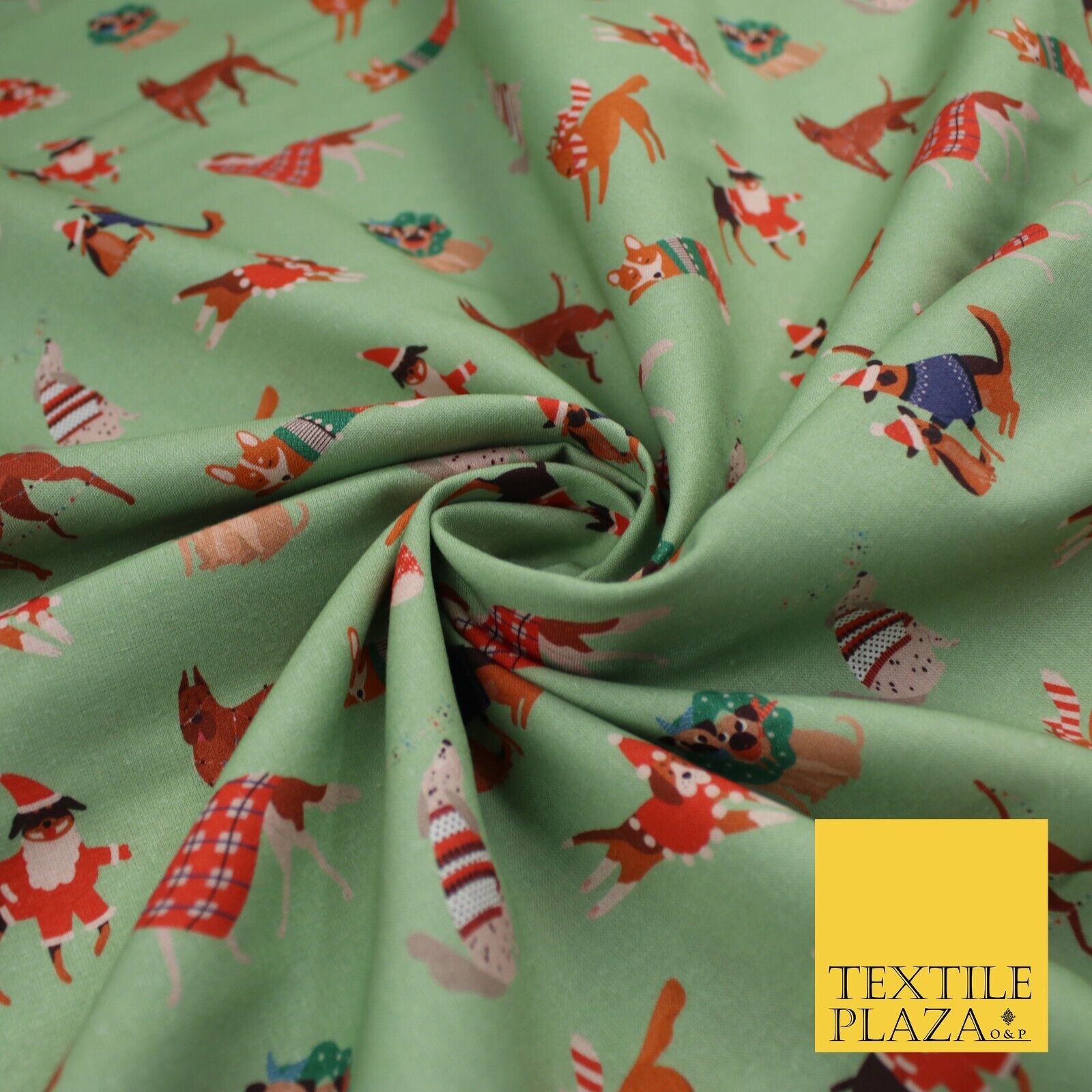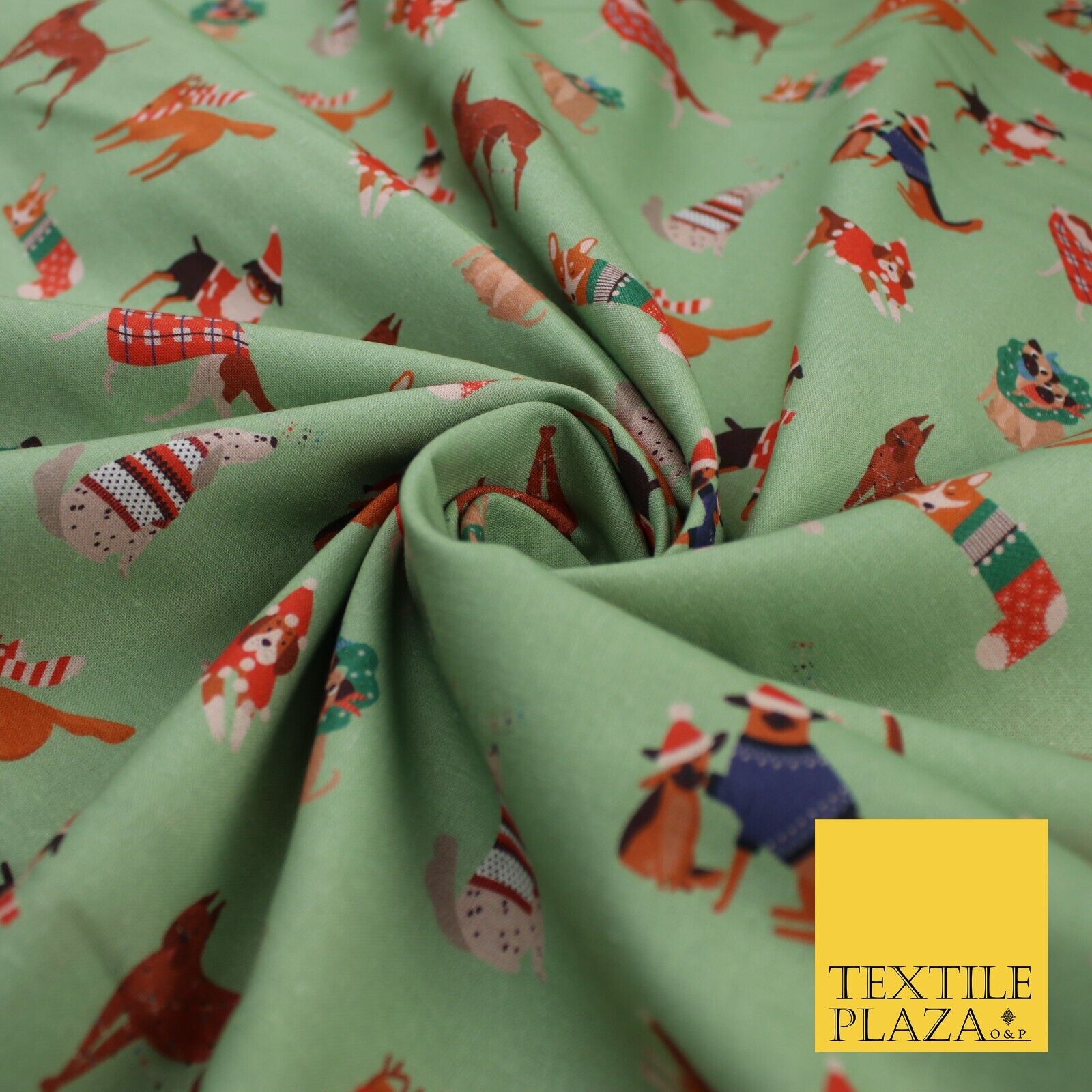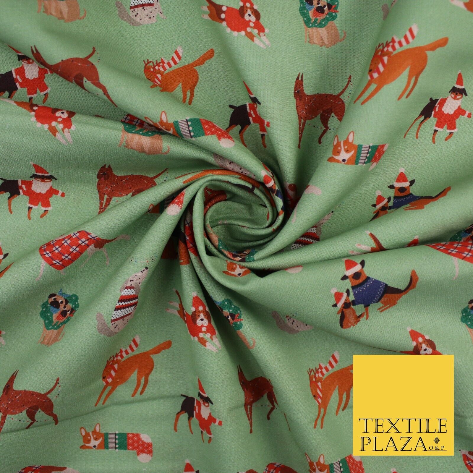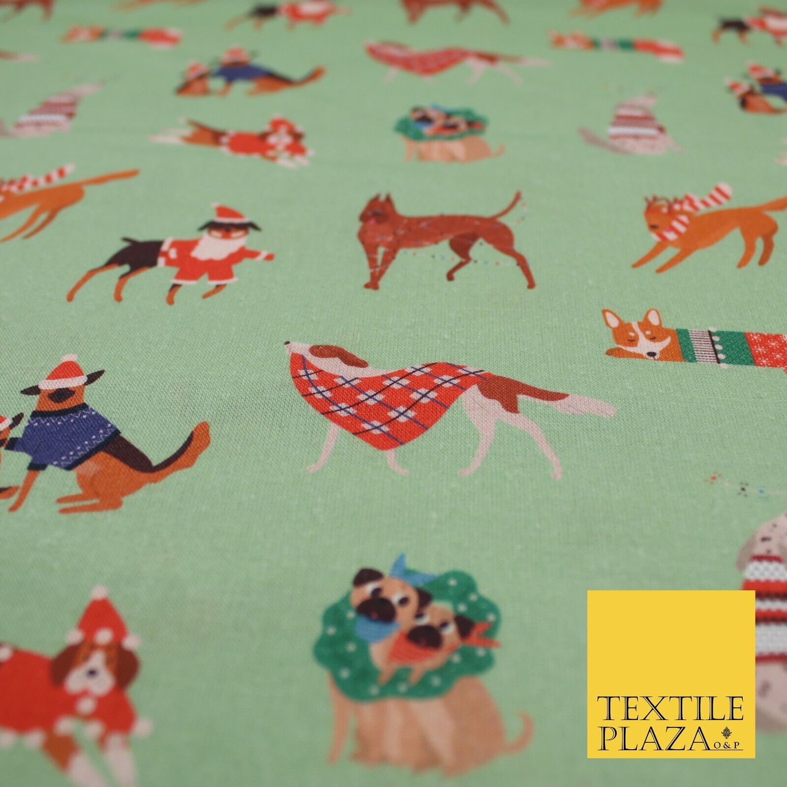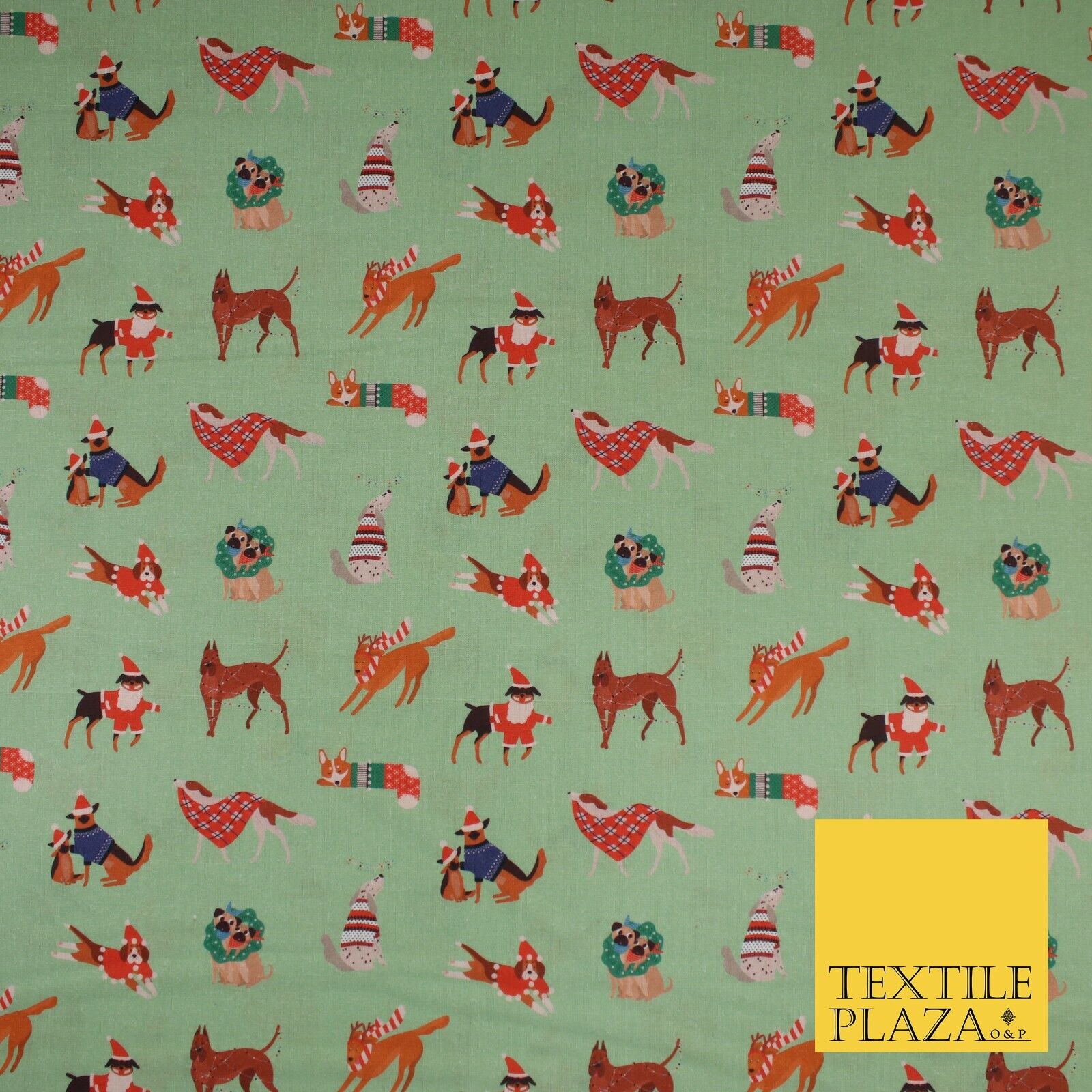 Sage Green Christmas Dogs Print 100% Cotton Printed Fabric 58" 10210