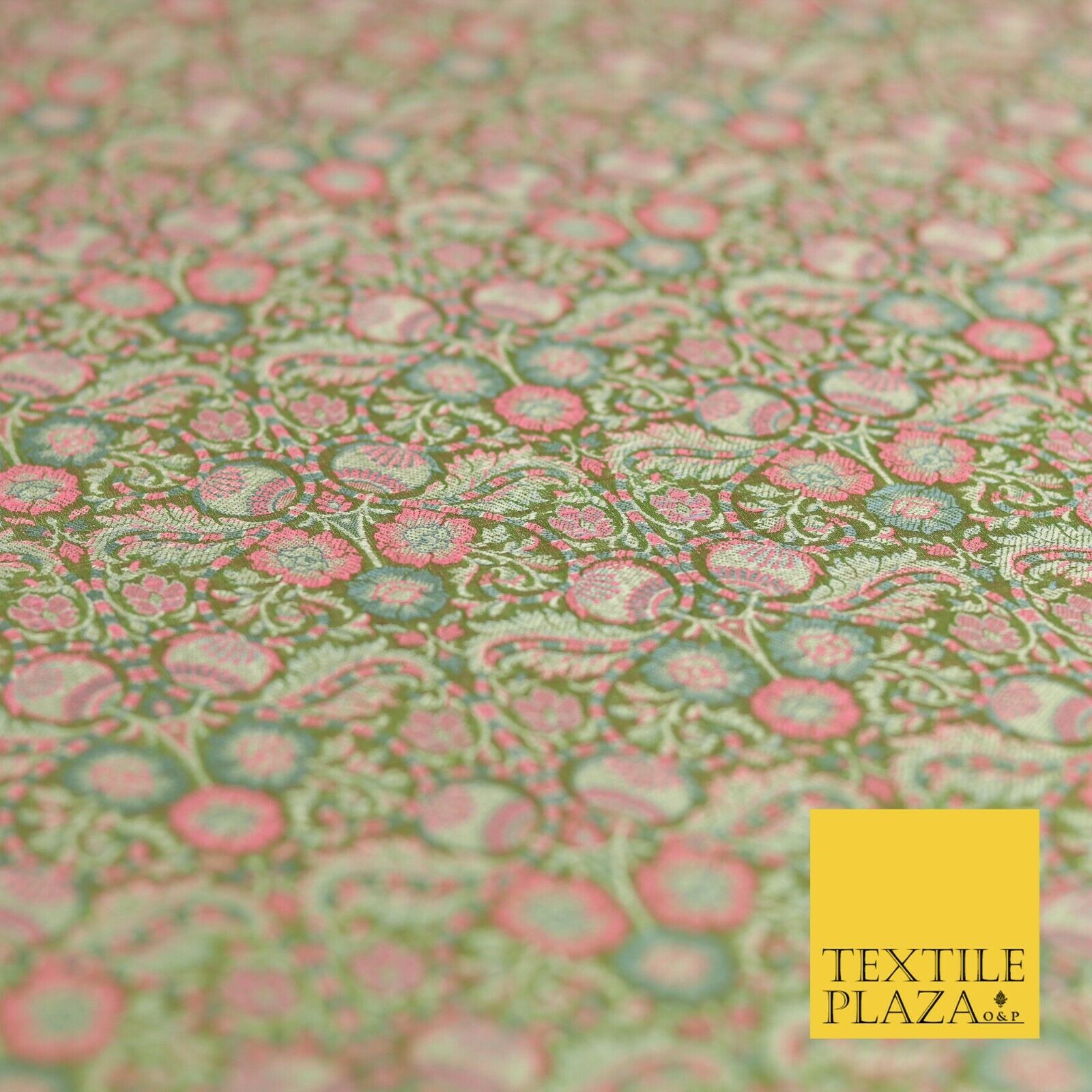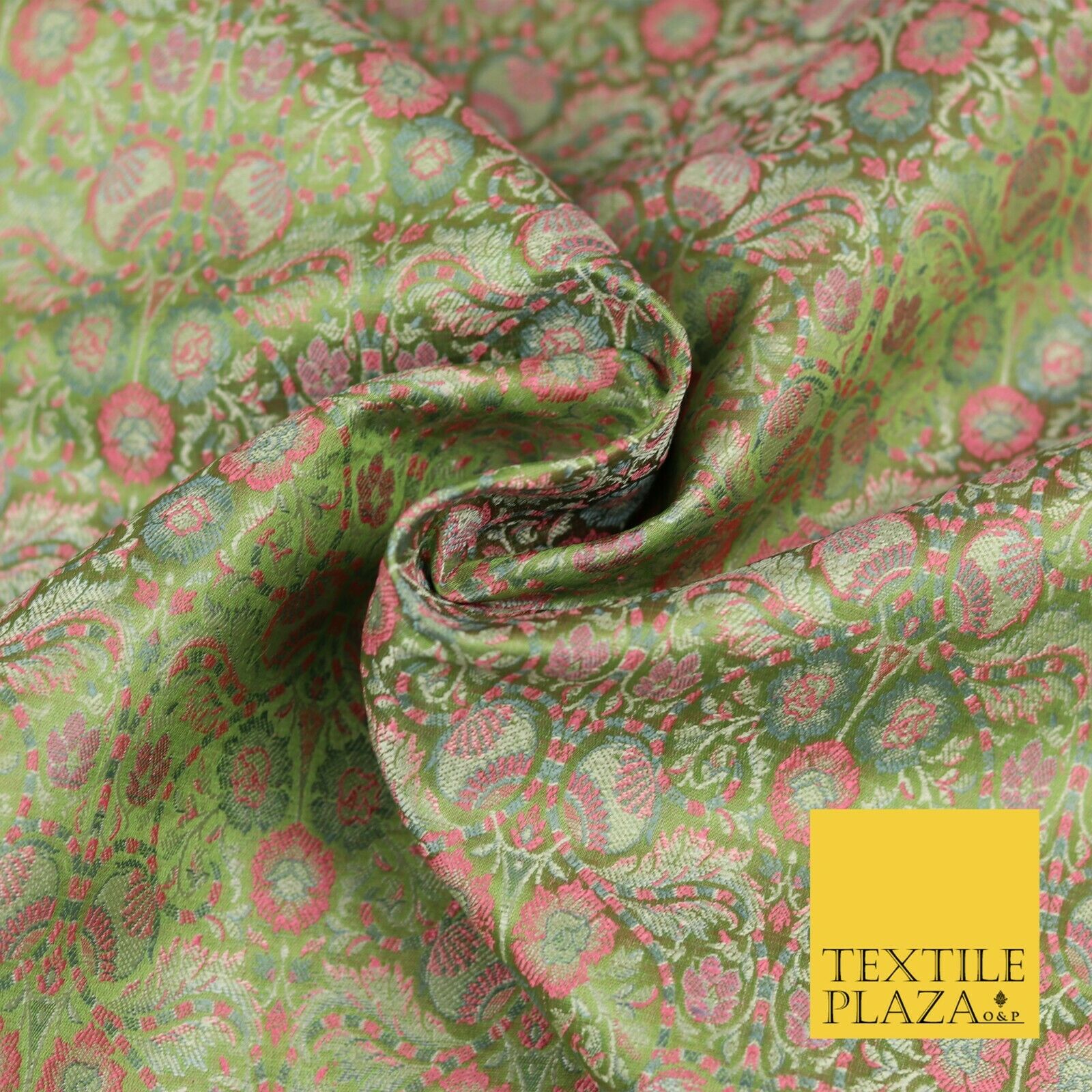 Sage Green Luxury Intricate Floral PURE Benarsi Brocade Woven Dress Fabric 1752