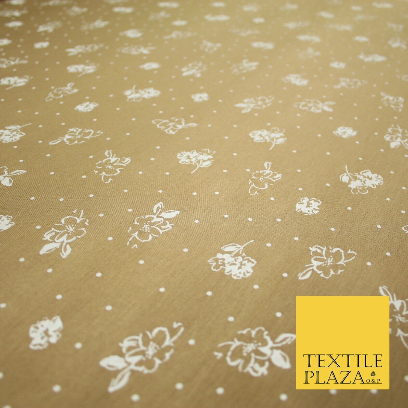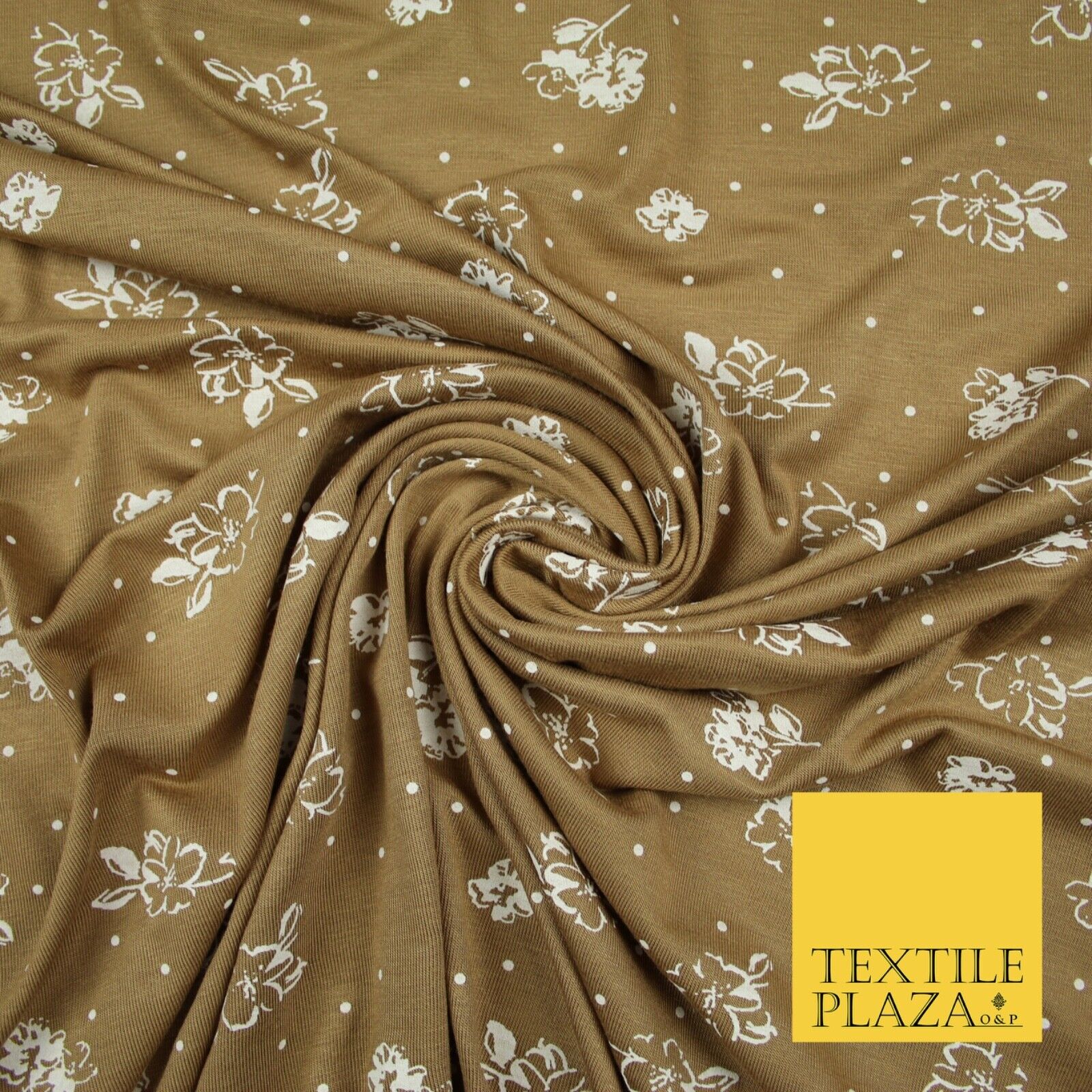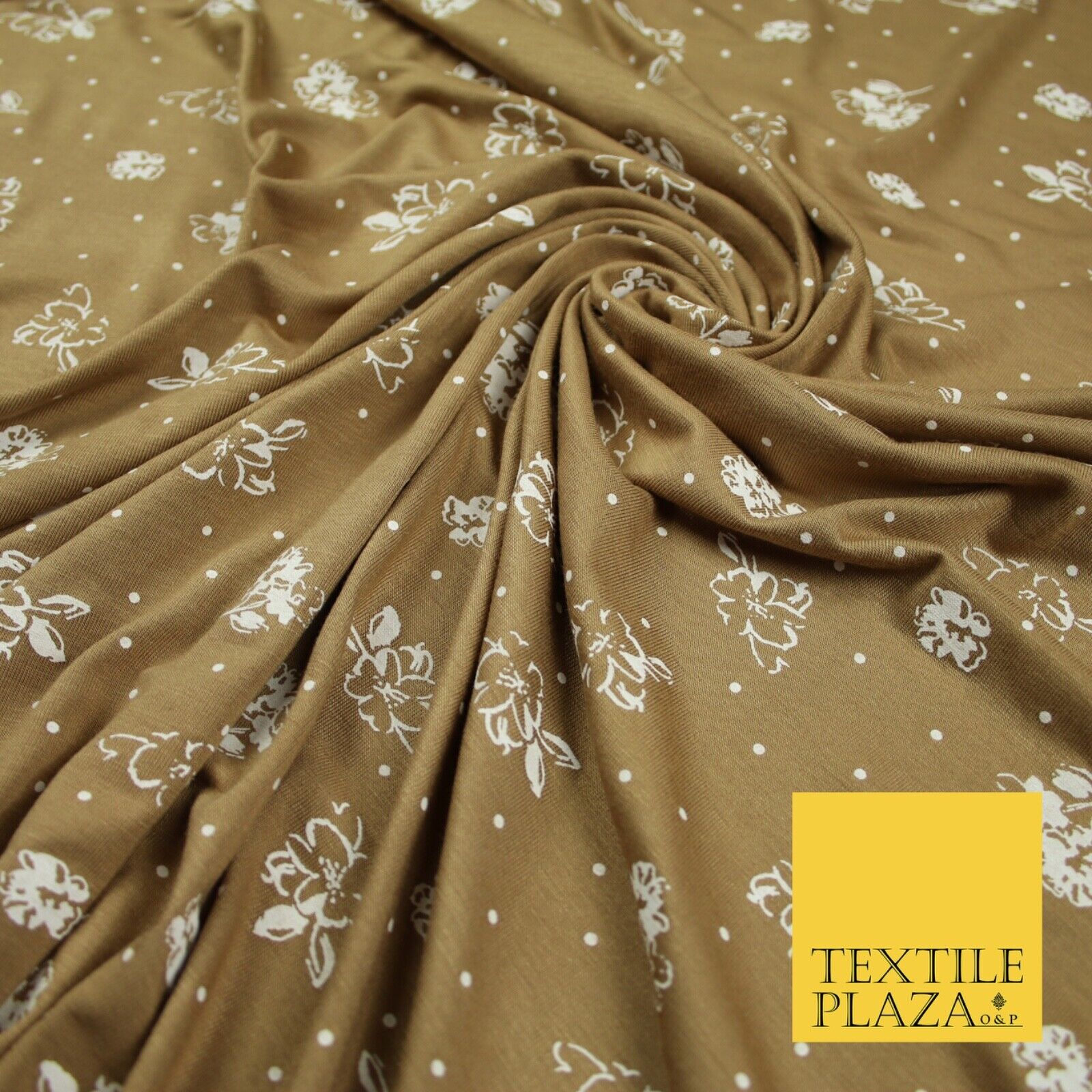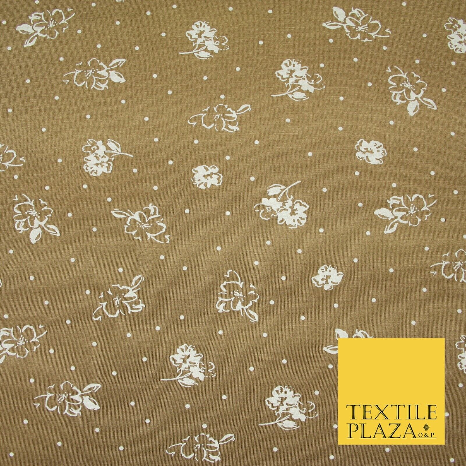 Sand Gold Ditsy Floral Polka Print Soft Touch Stretch Jersey Fabric 56" 6738