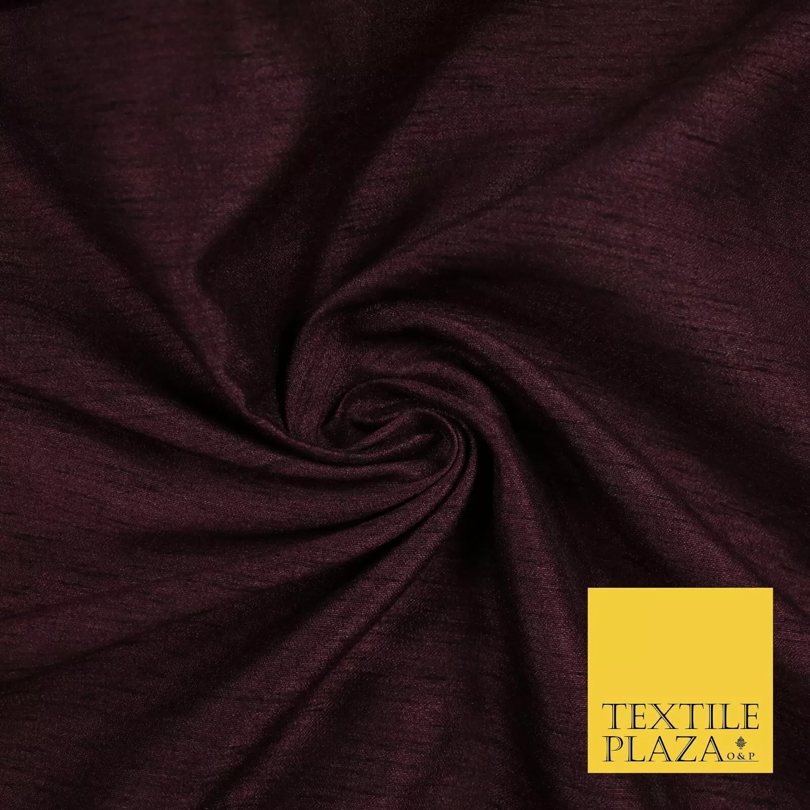 SANGRIA PLUM Plain Dyed Faux Dupion Raw Silk 100% Polyester Dress Fabric 44" 6294