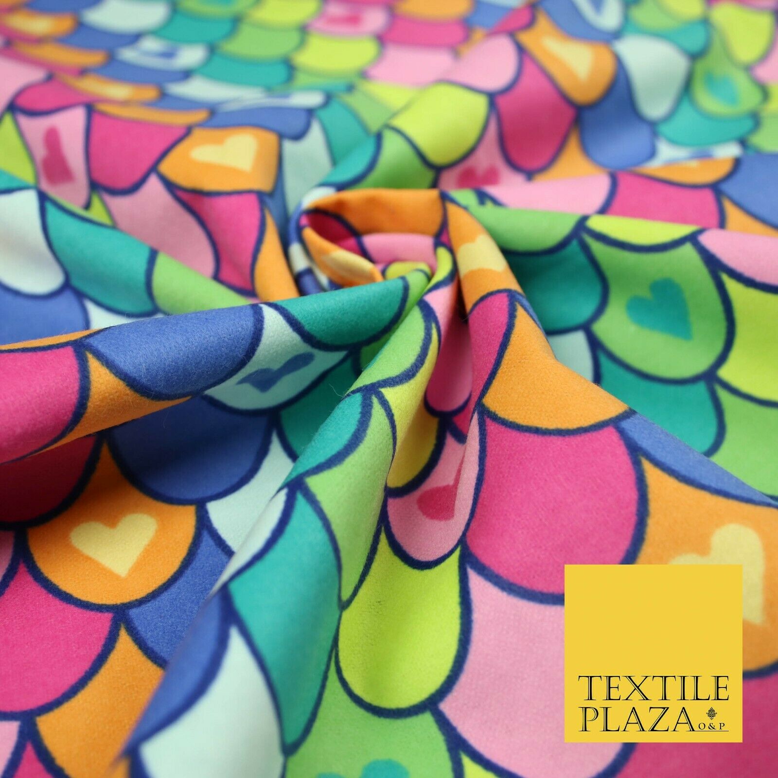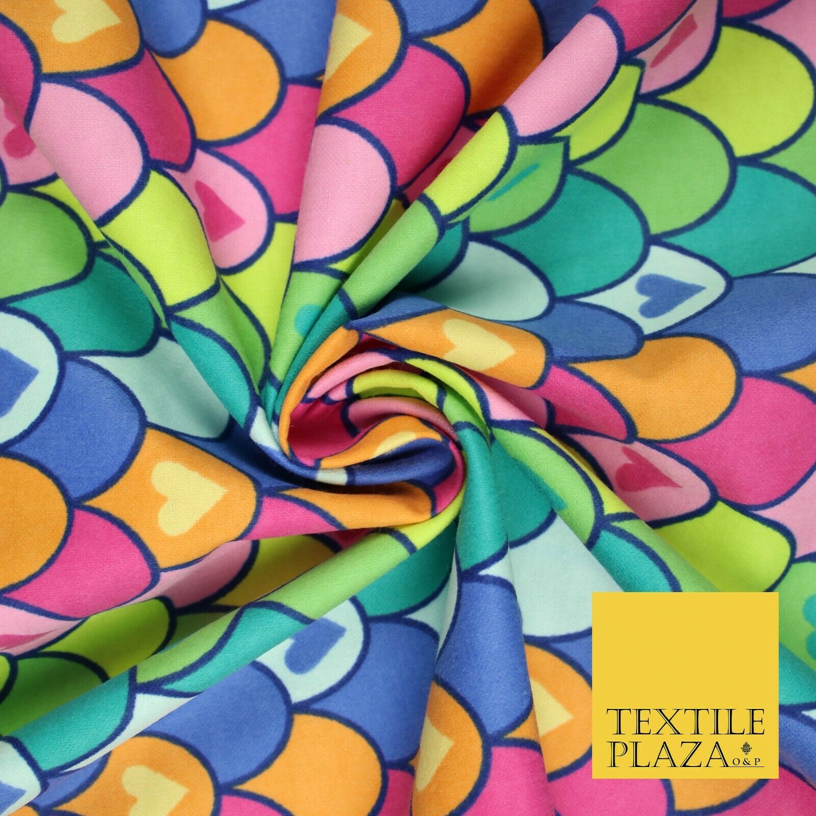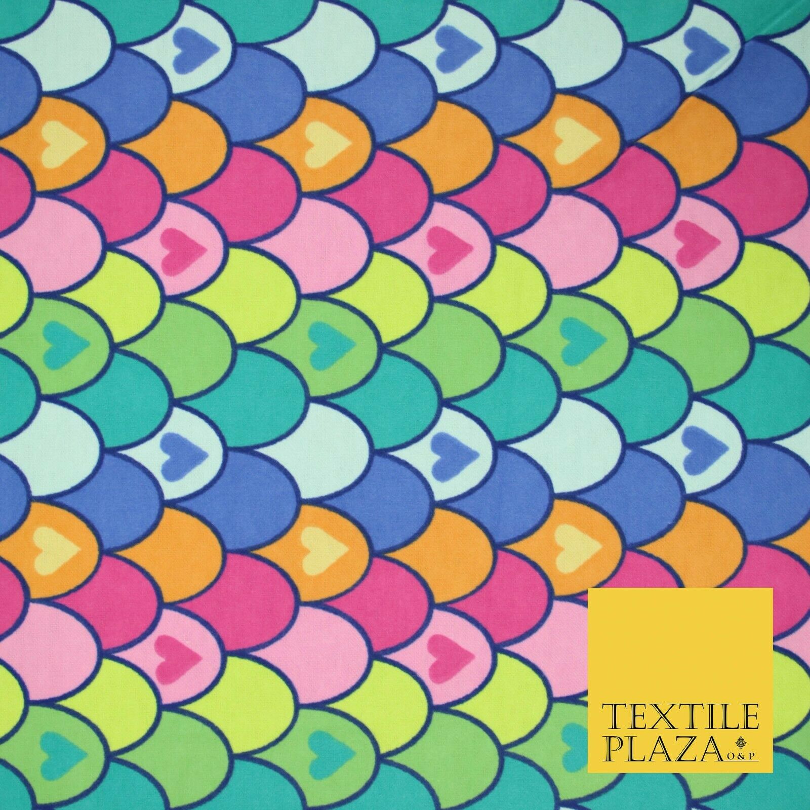 Scallop Multicolour Rainbow Hearts Brushed Cotton Winceyette Fabric Flannel 5519