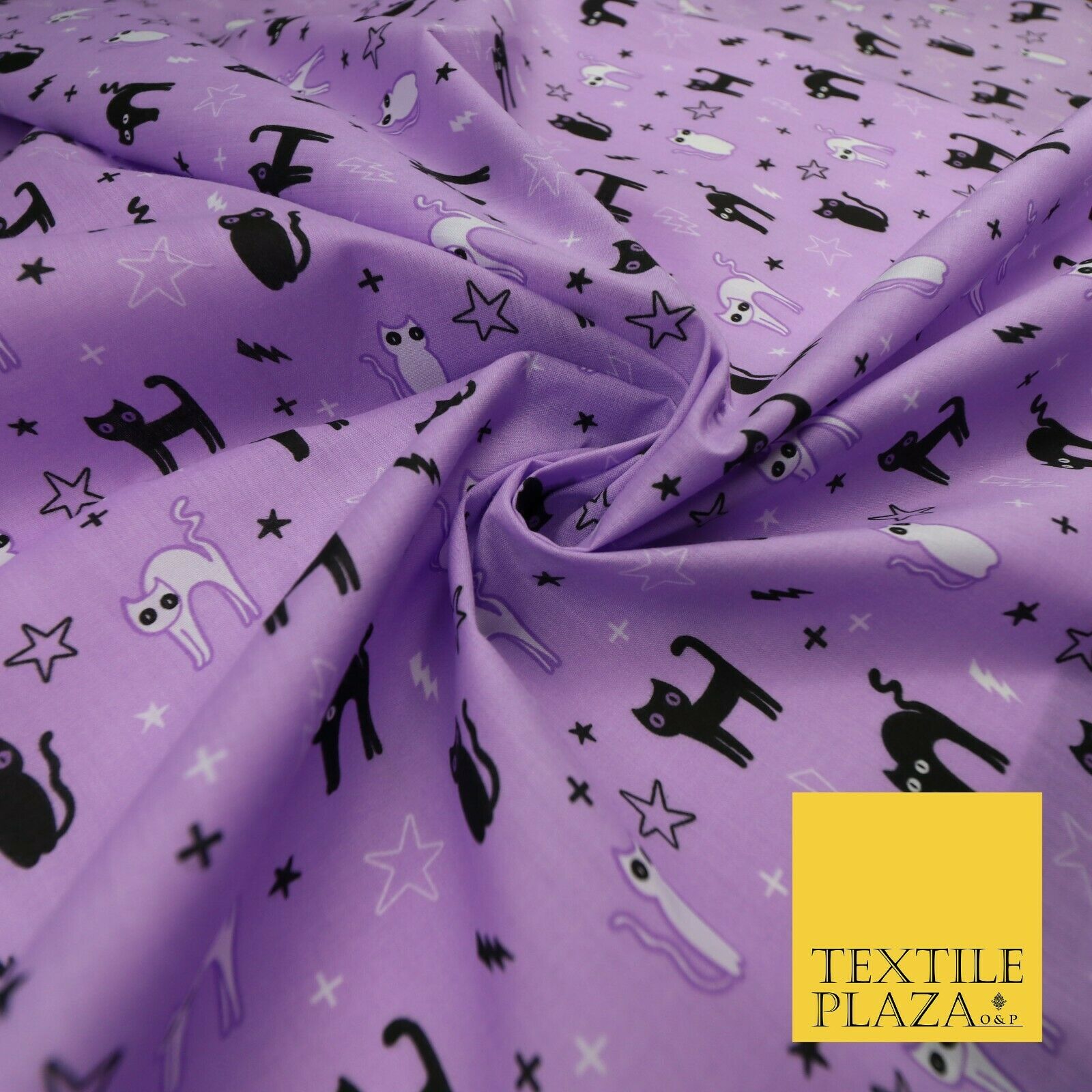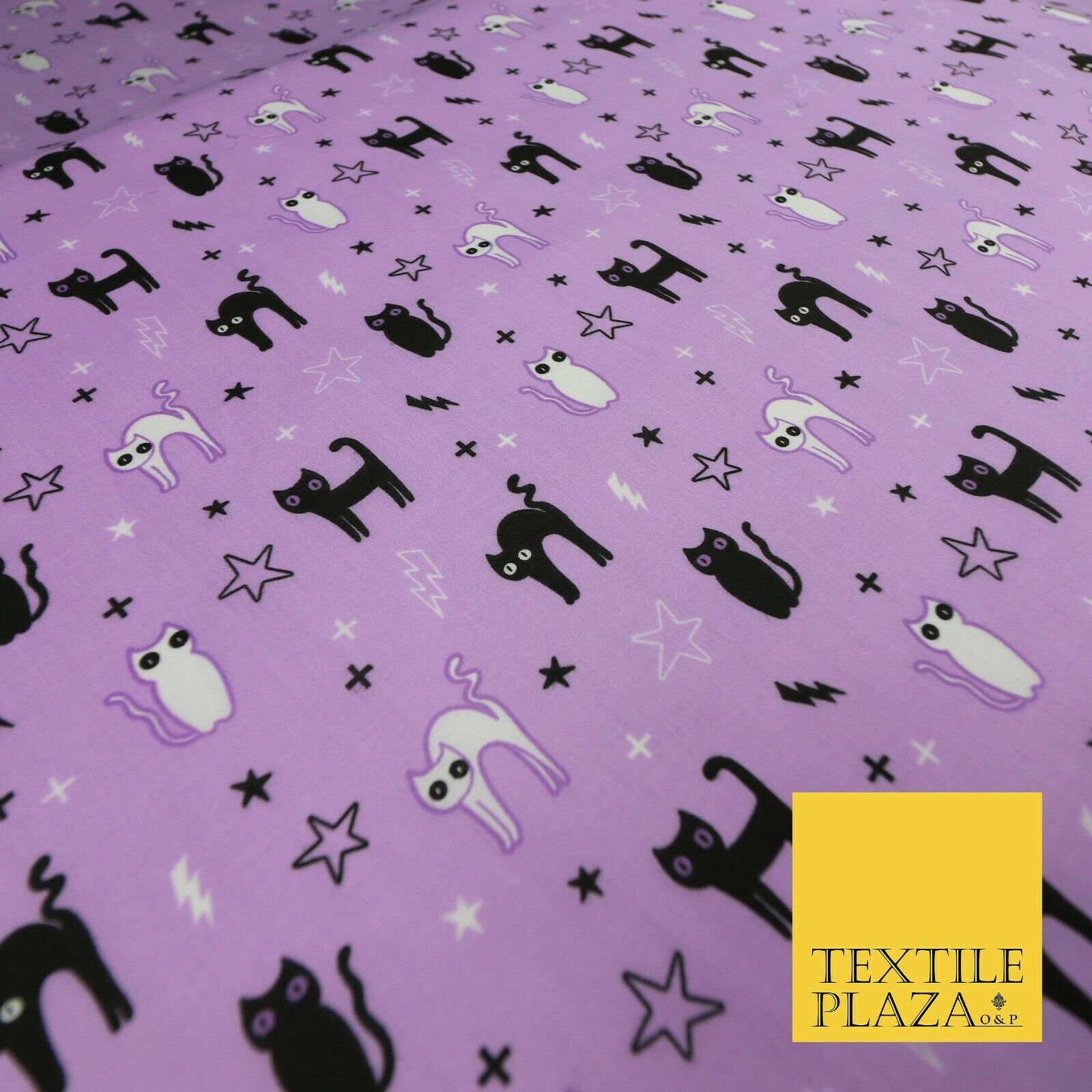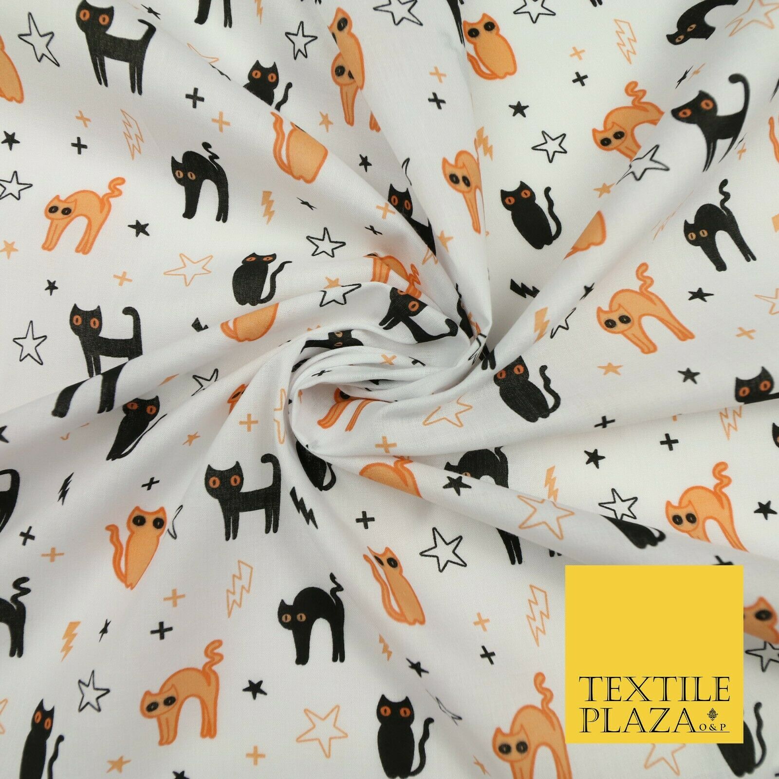 Scary Cats Stars Lightning HALLOWEEN Printed Polycotton Fabric 45" Wide