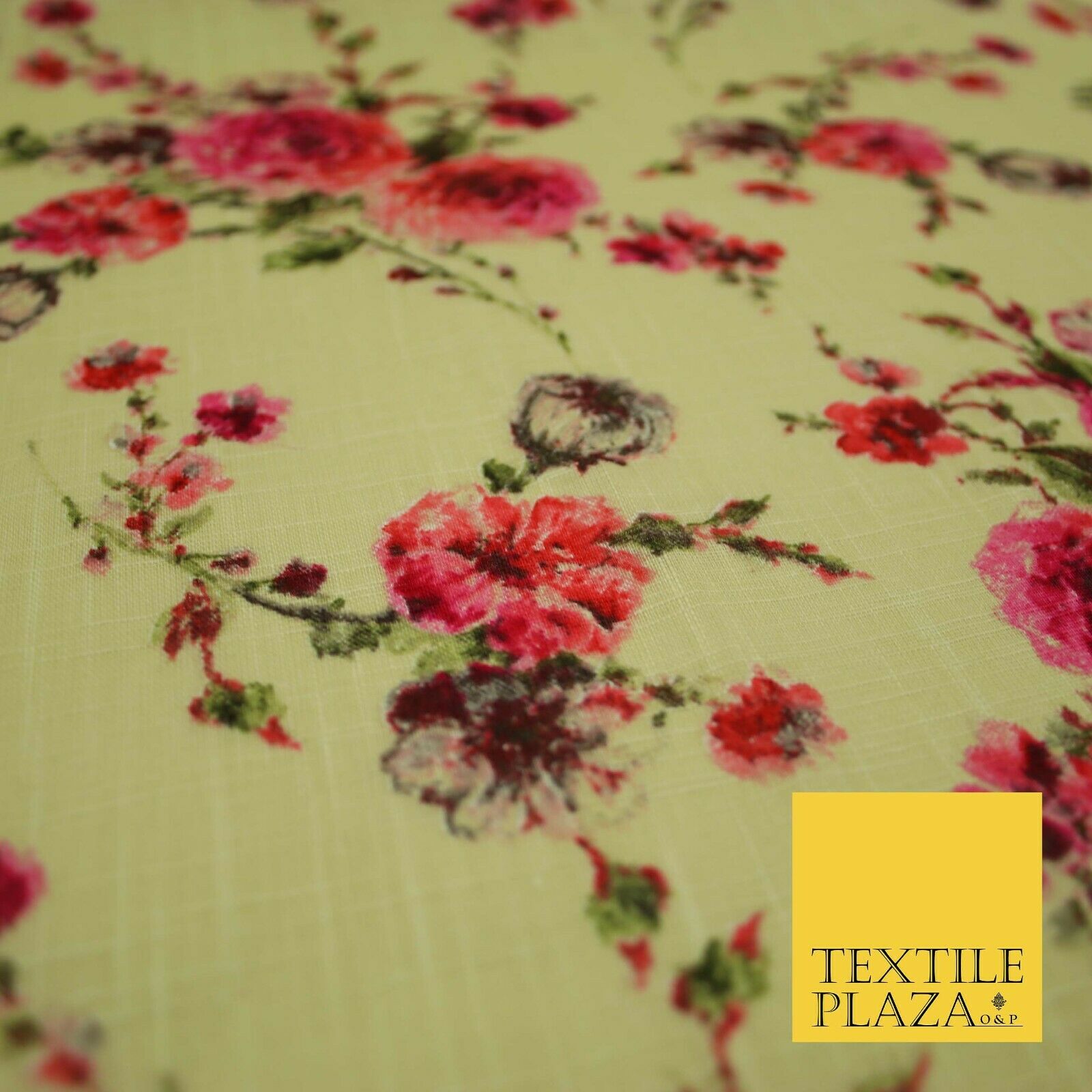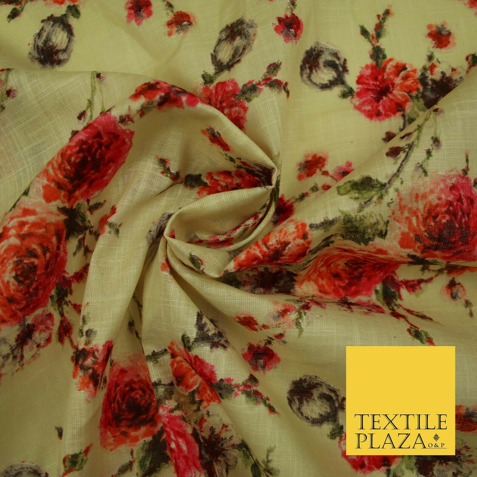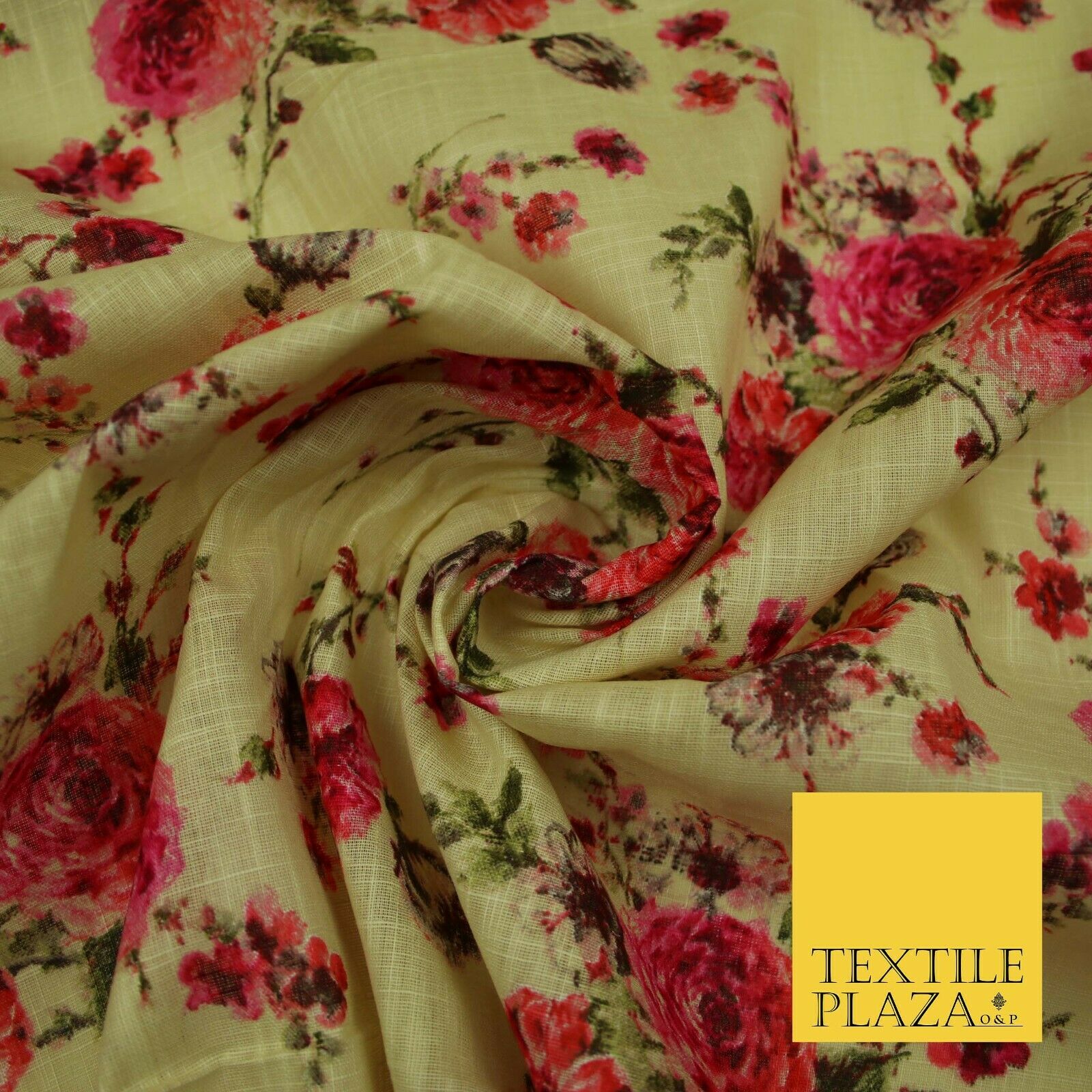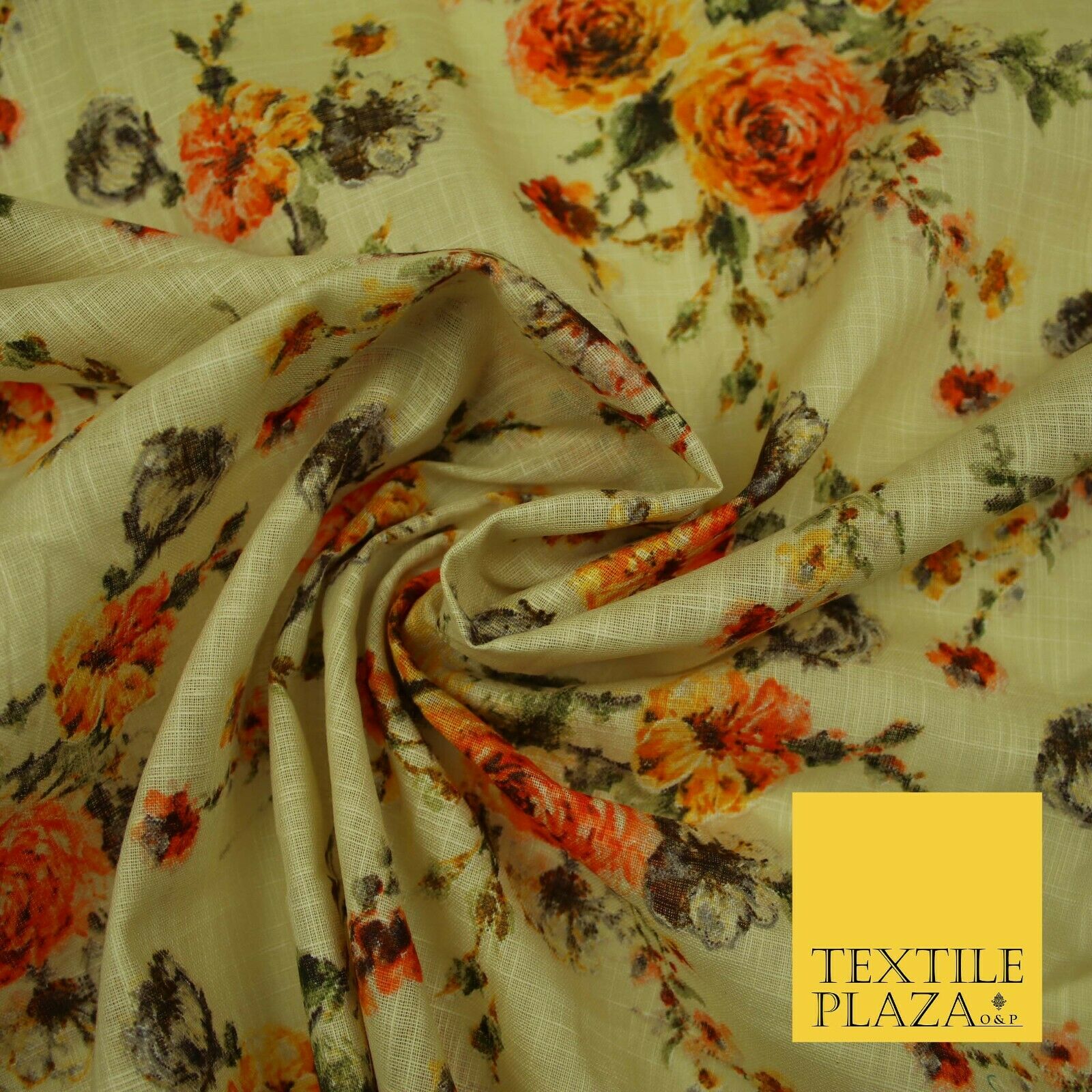 Scattered Carnations Summer Luxury 100% Pure Printed Floral Cotton Linen Fabric