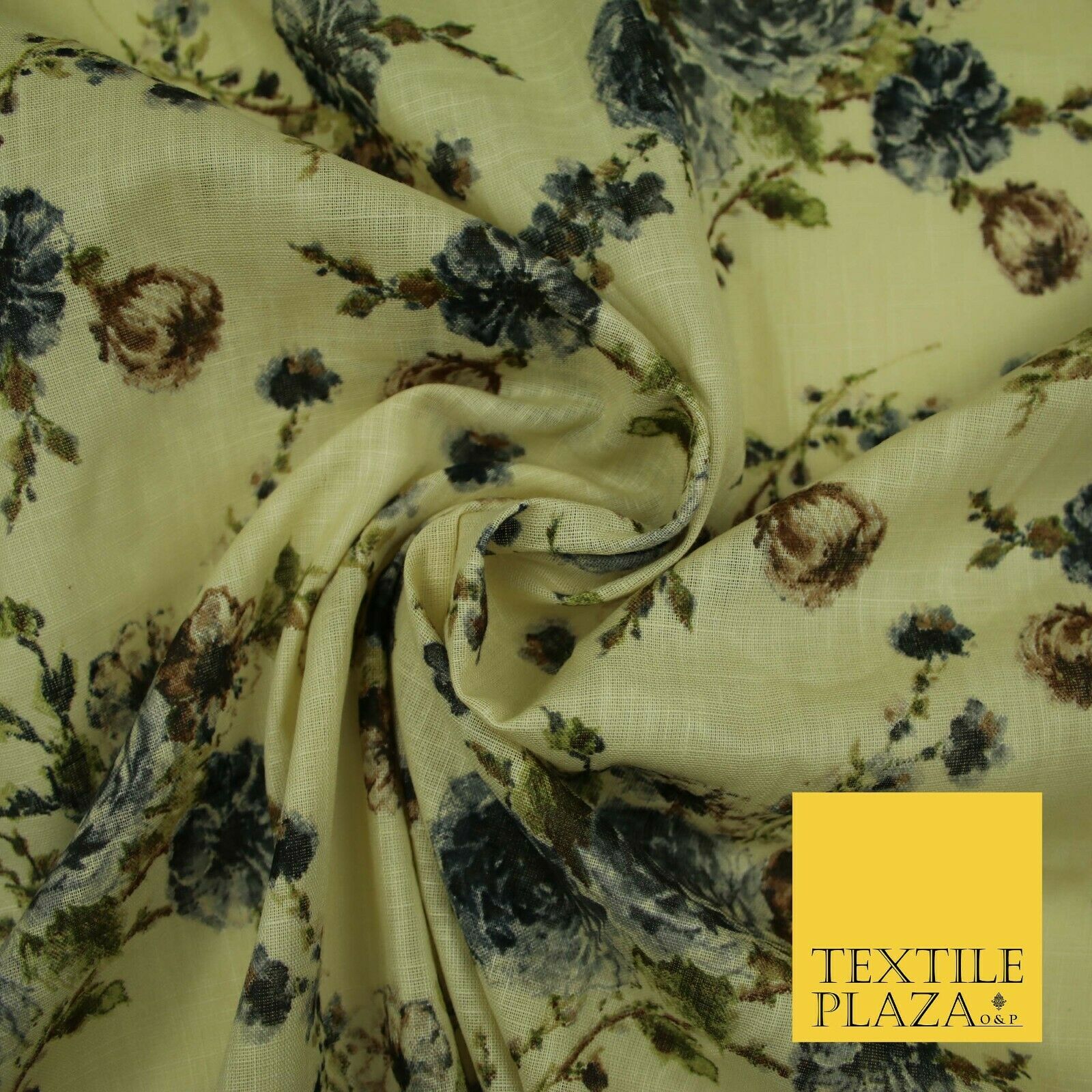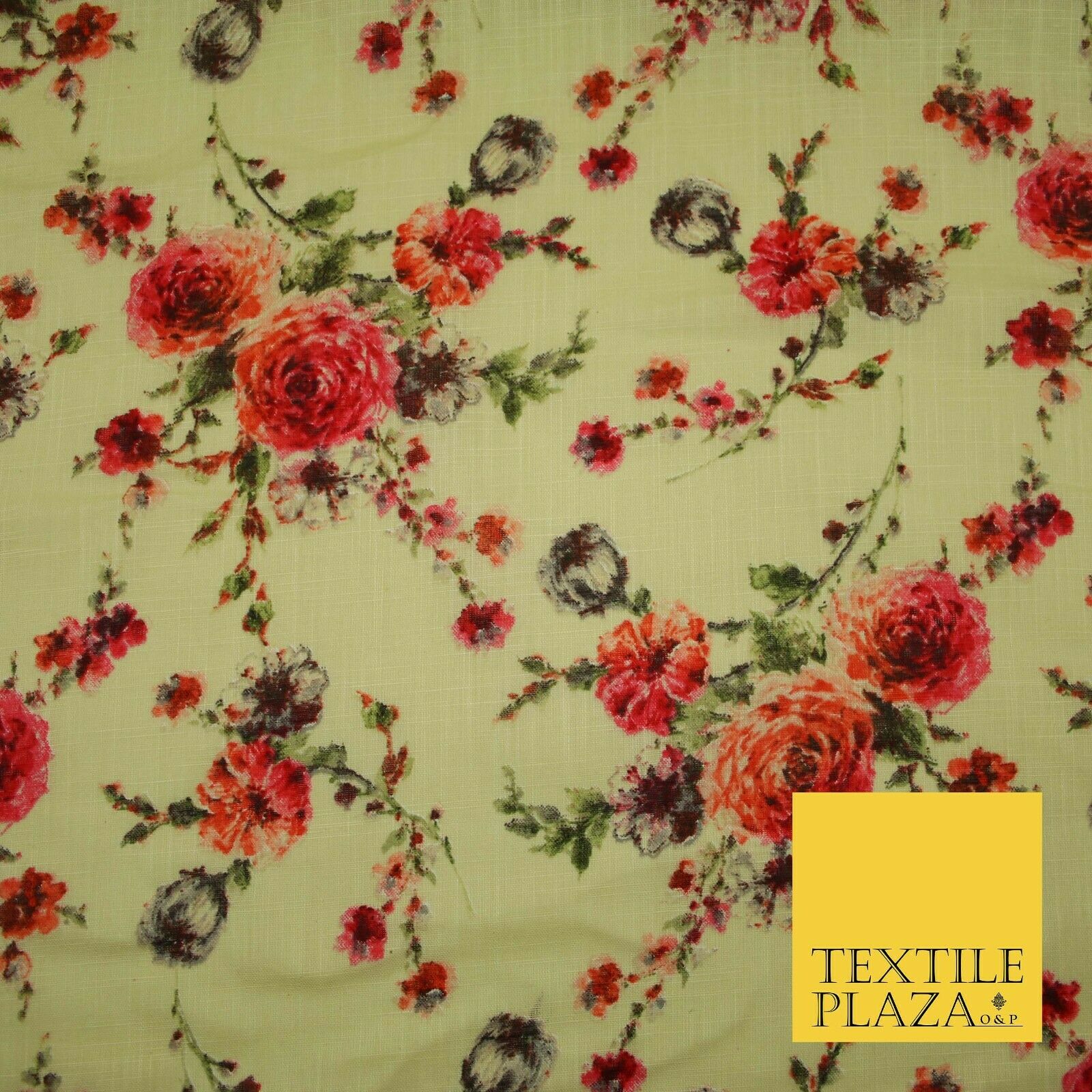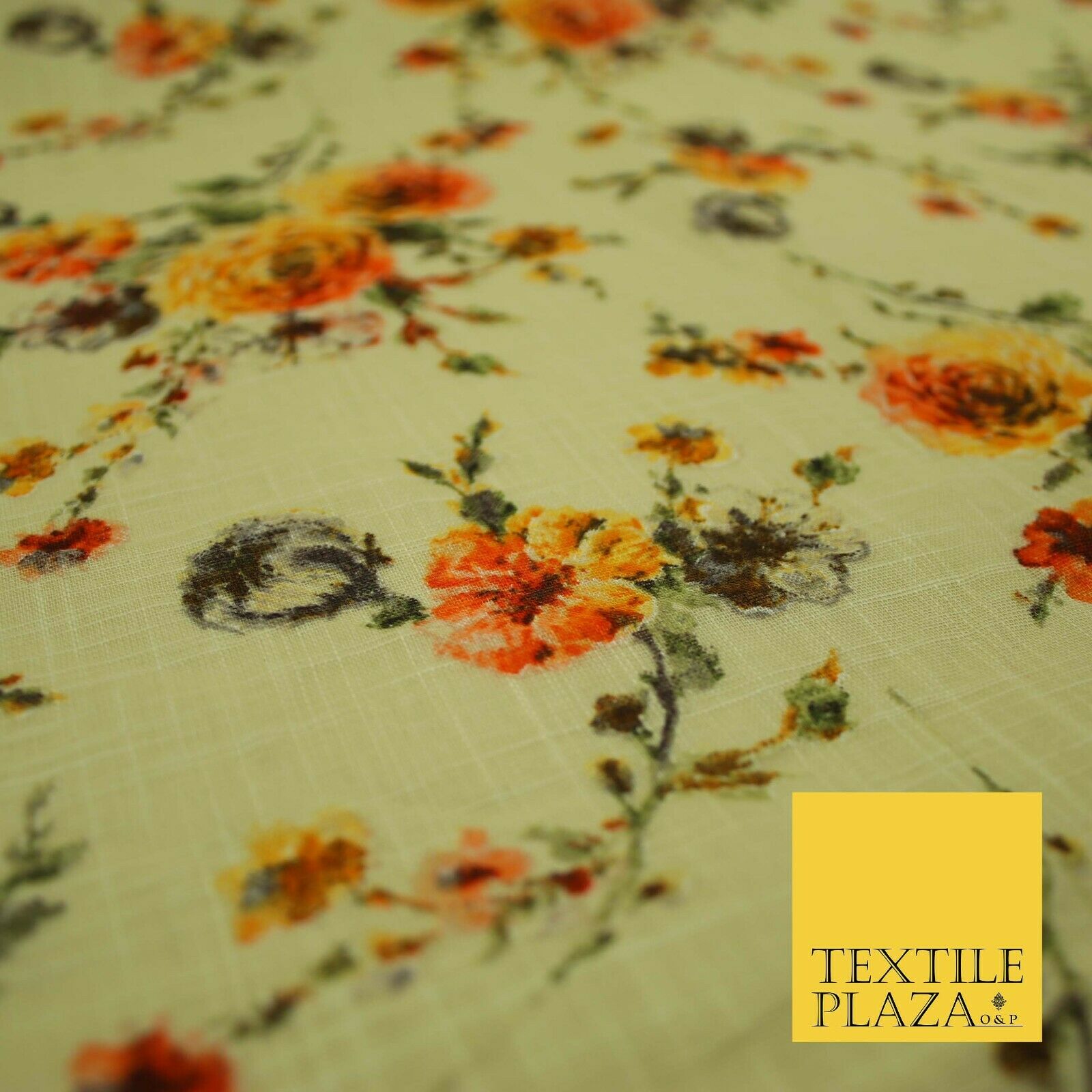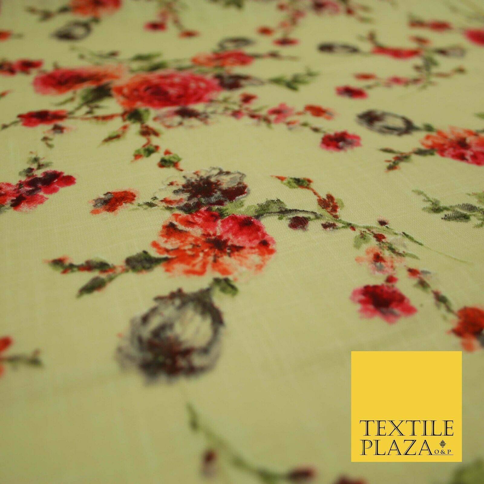 Scattered Carnations Summer Luxury 100% Pure Printed Floral Cotton Linen Fabric