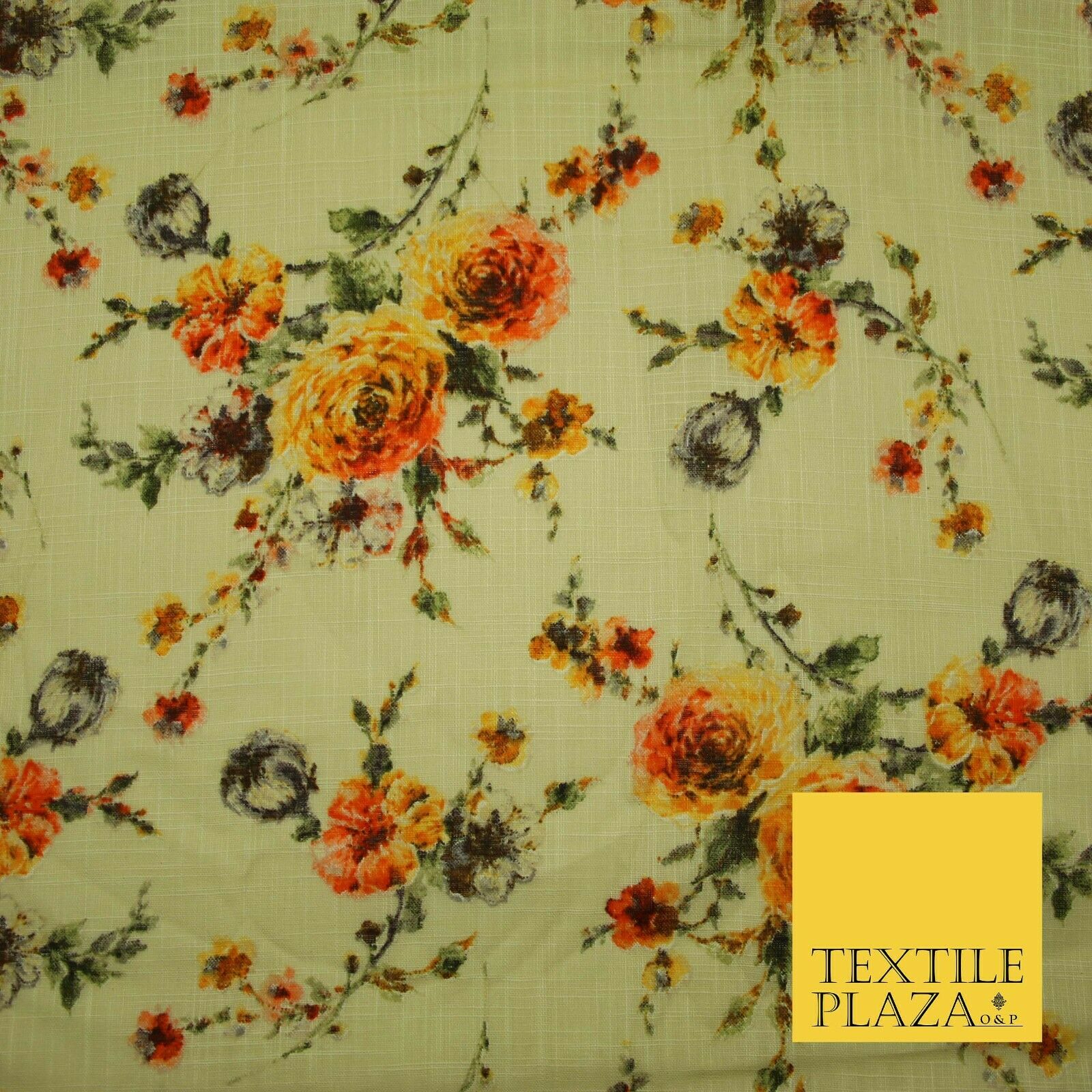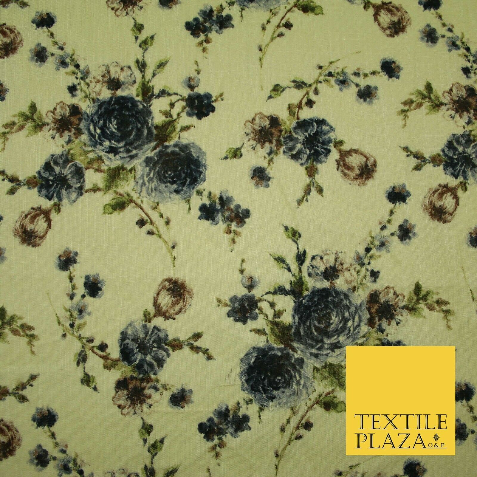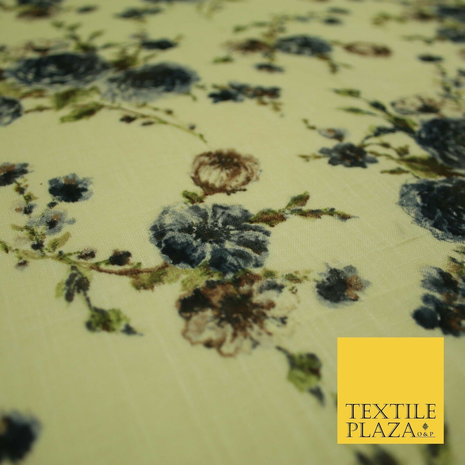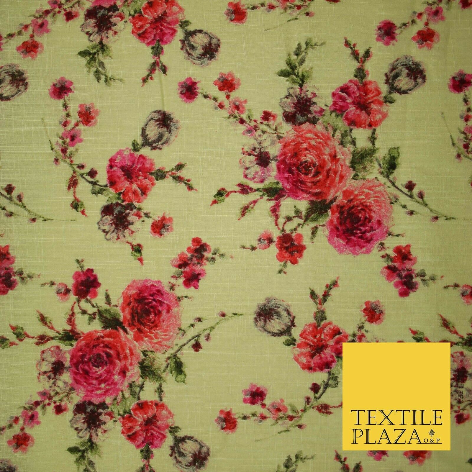 Scattered Carnations Summer Luxury 100% Pure Printed Floral Cotton Linen Fabric