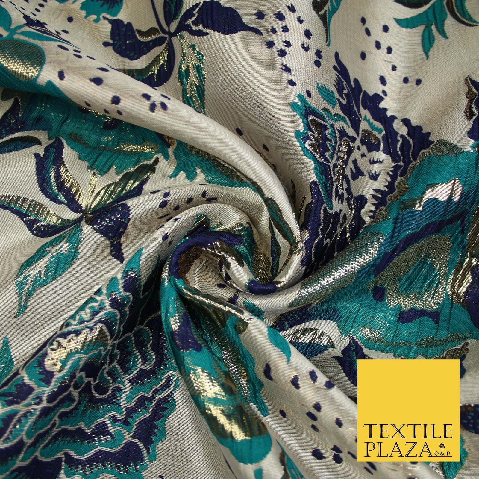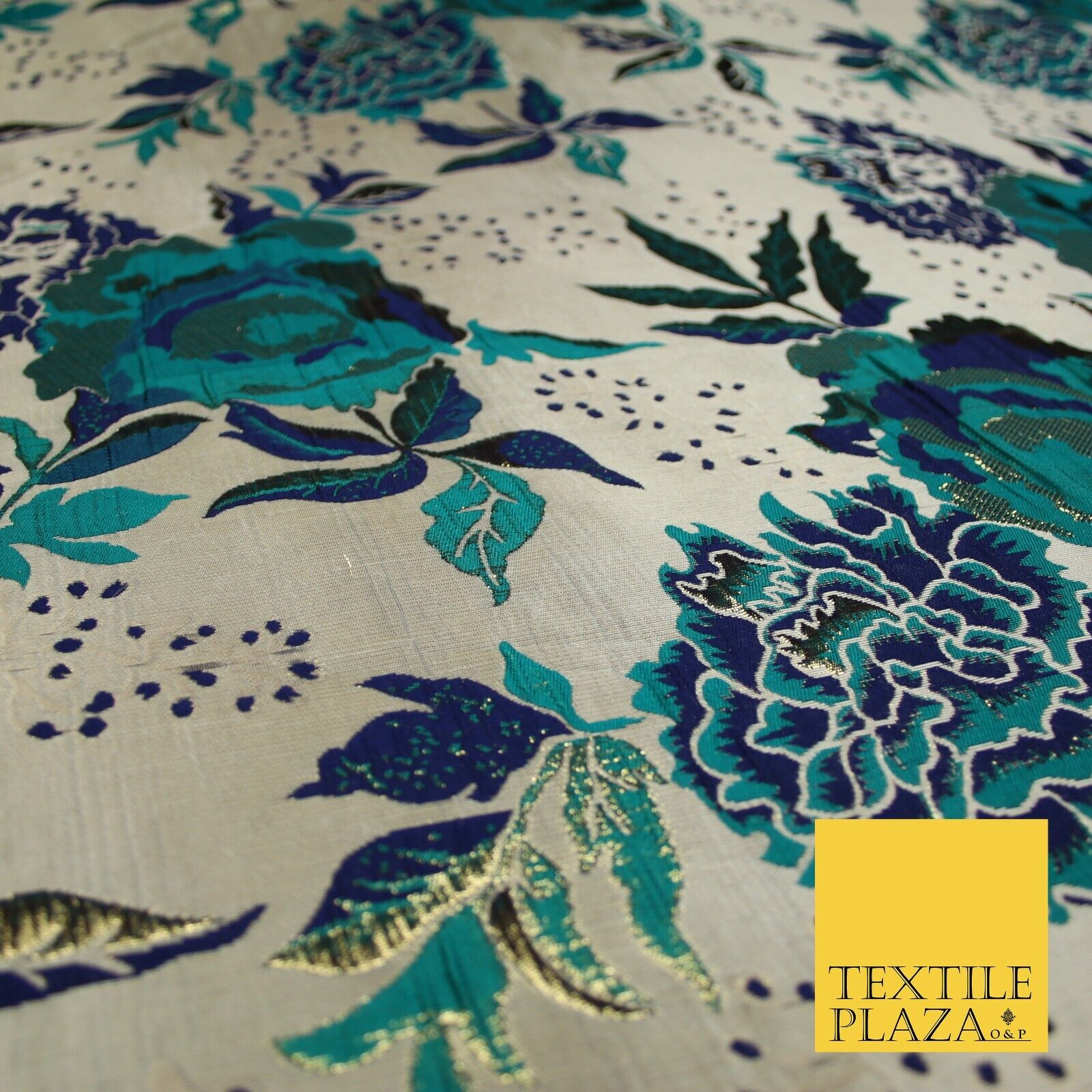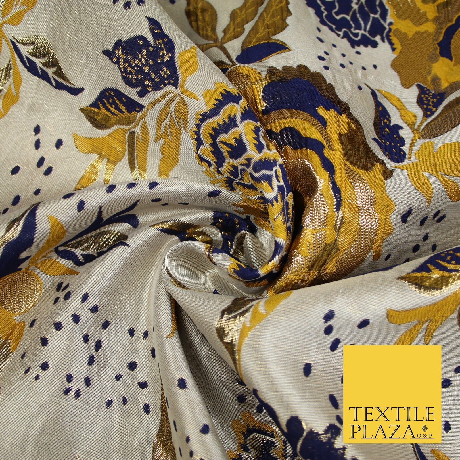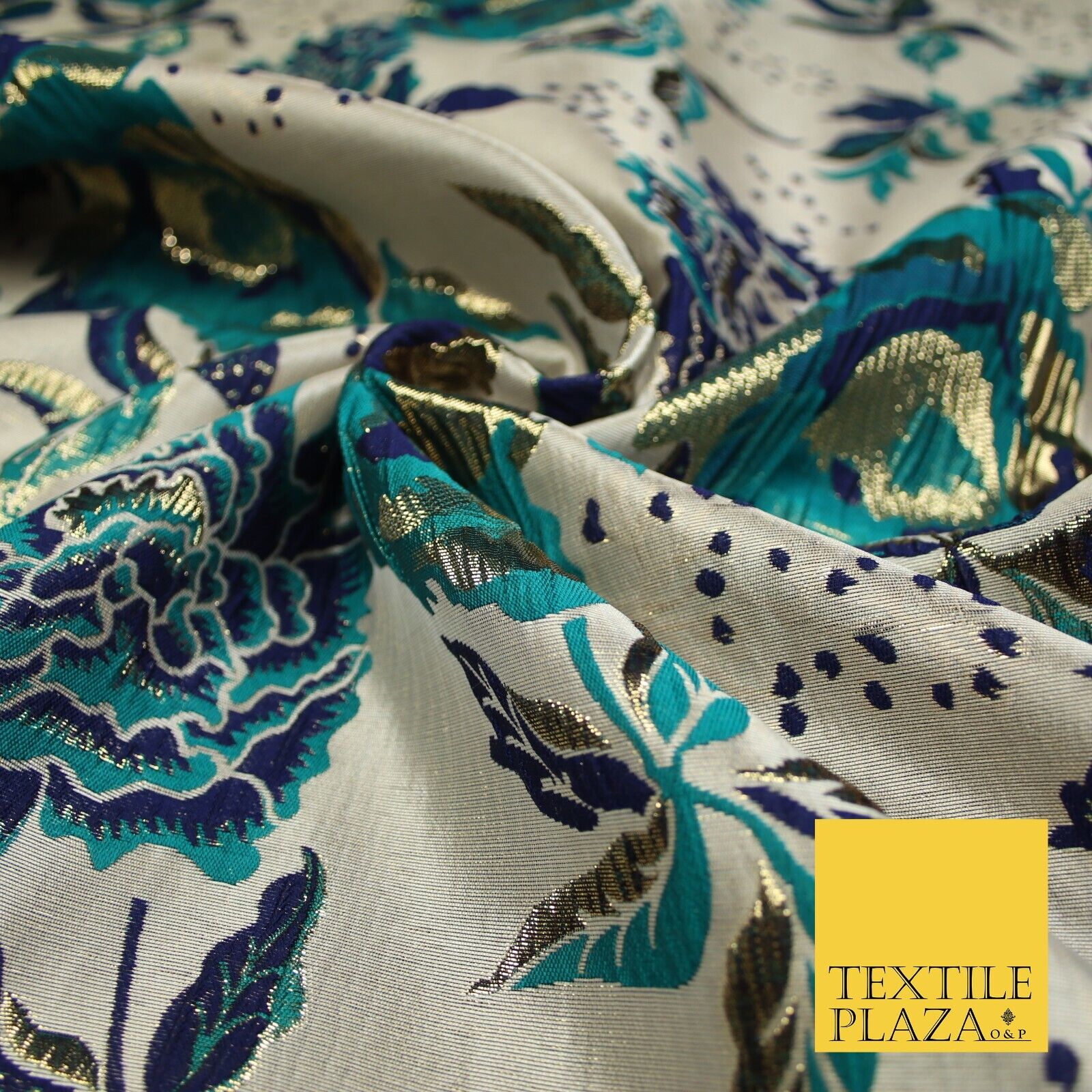 Scattered Floral Bloom Metallic Ornate Brocade Jacquard Dress Fabric 59" Wide