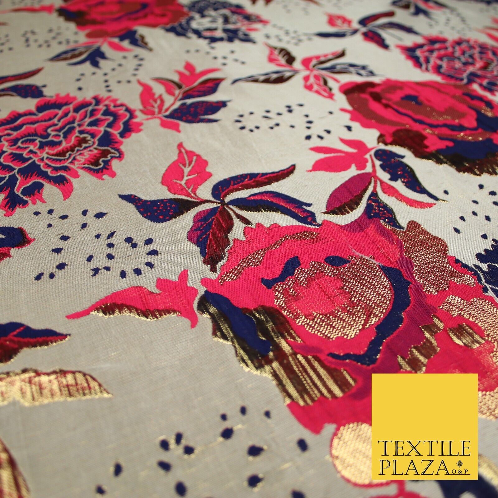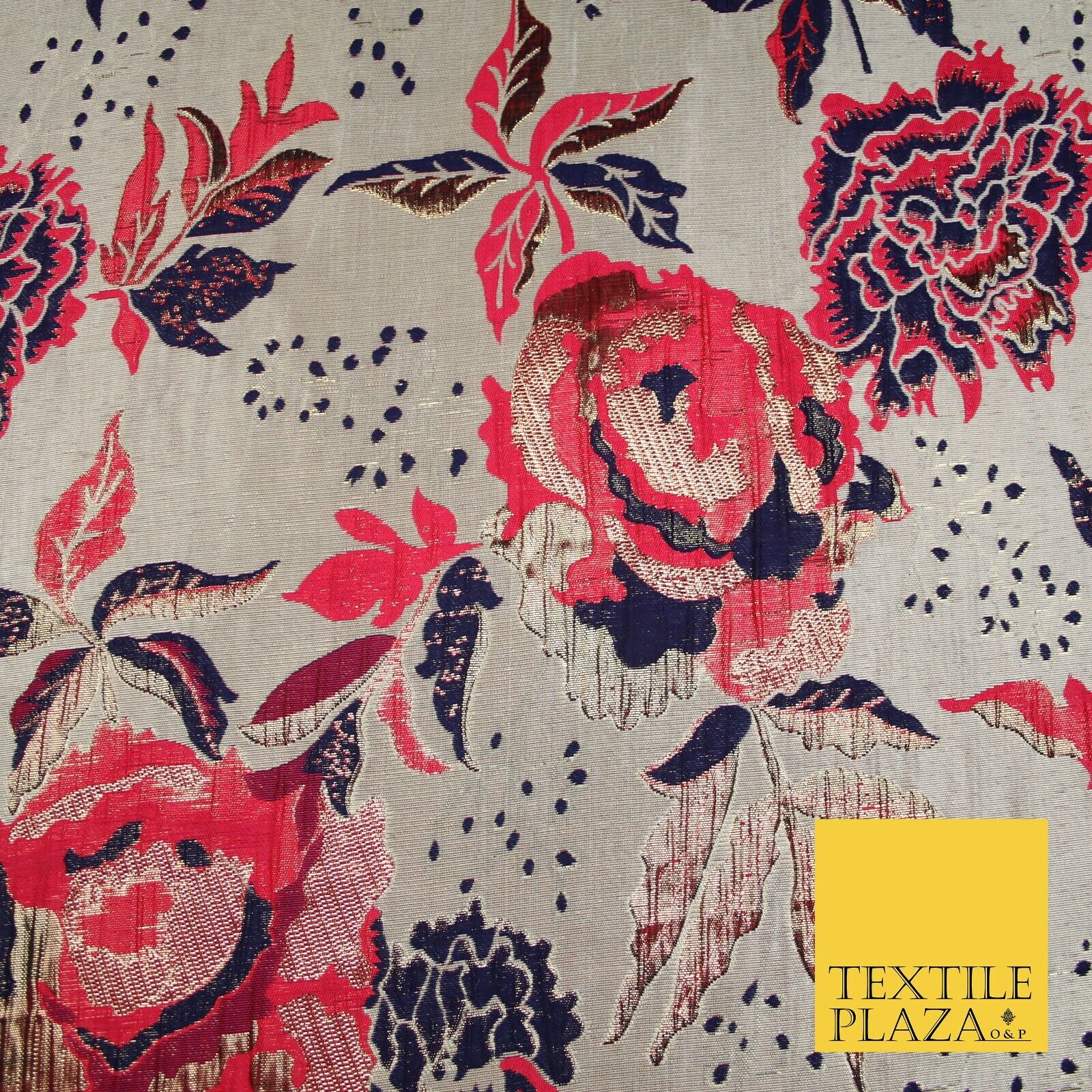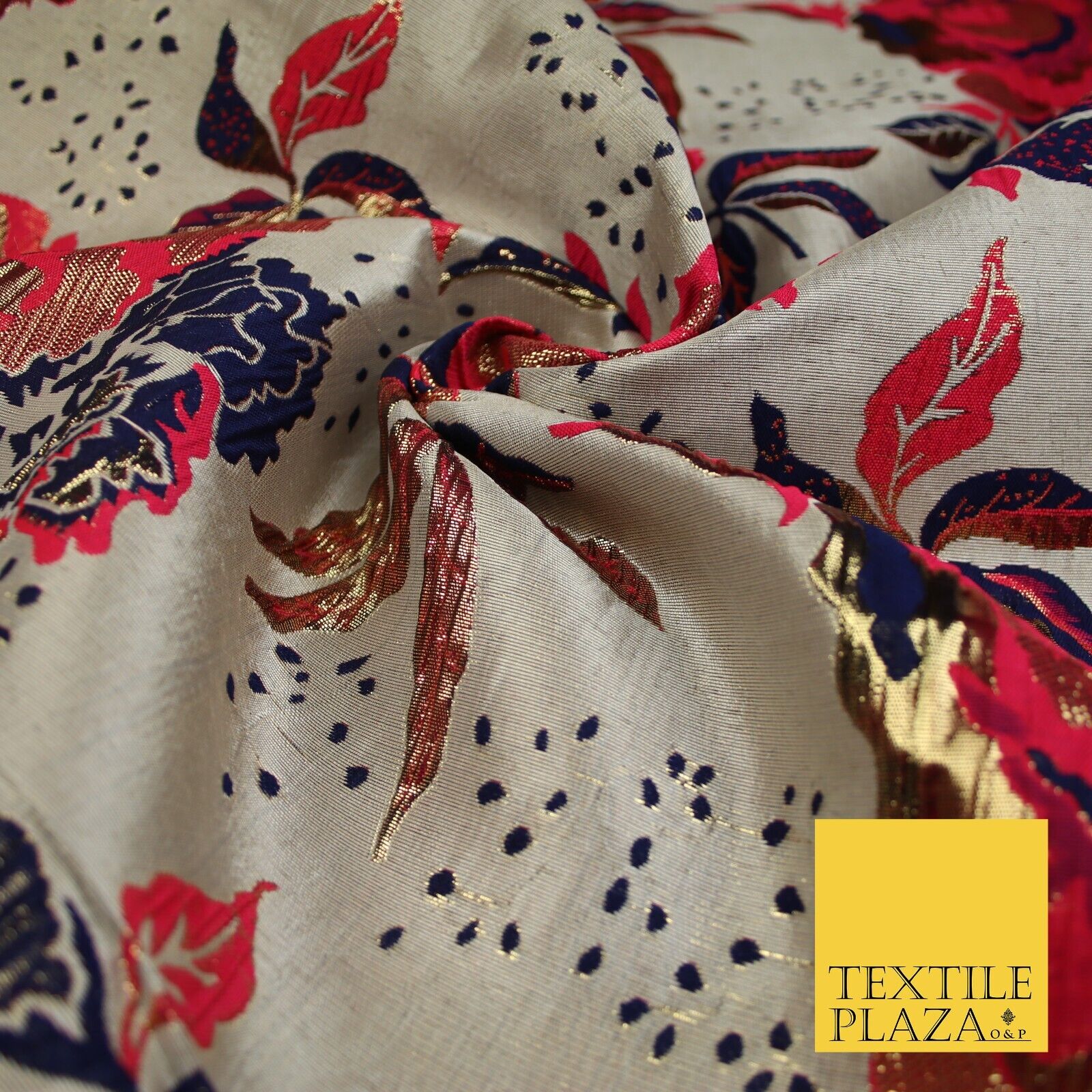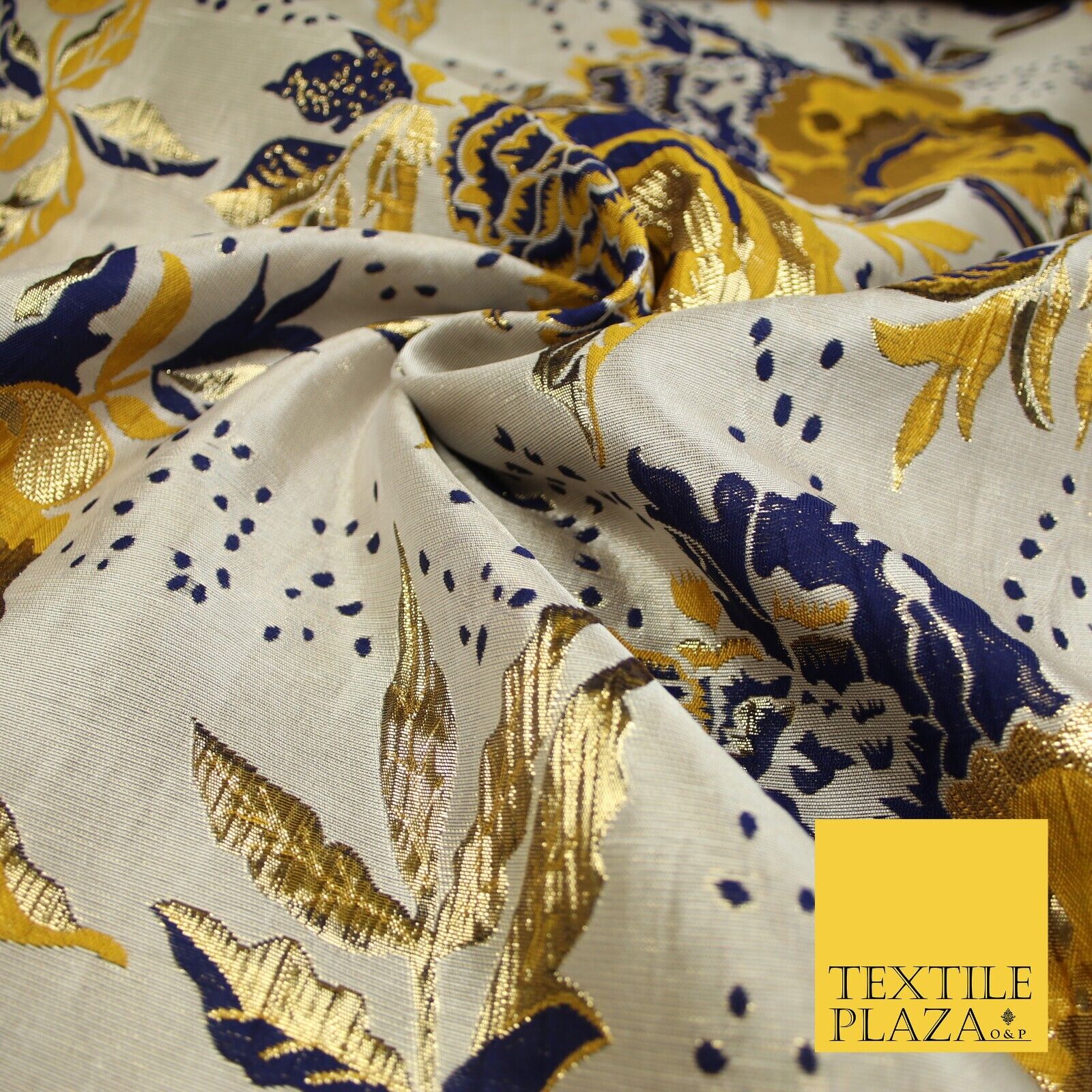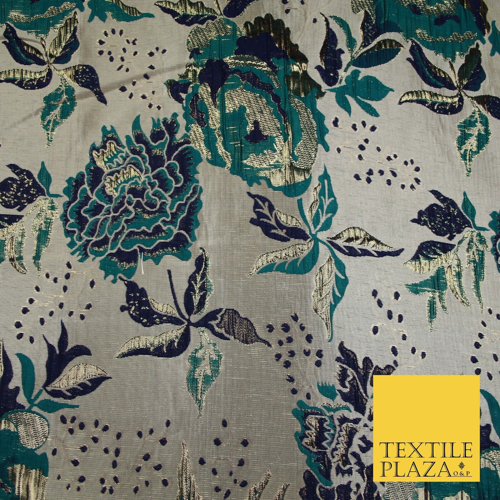 Scattered Floral Bloom Metallic Ornate Brocade Jacquard Dress Fabric 59" Wide