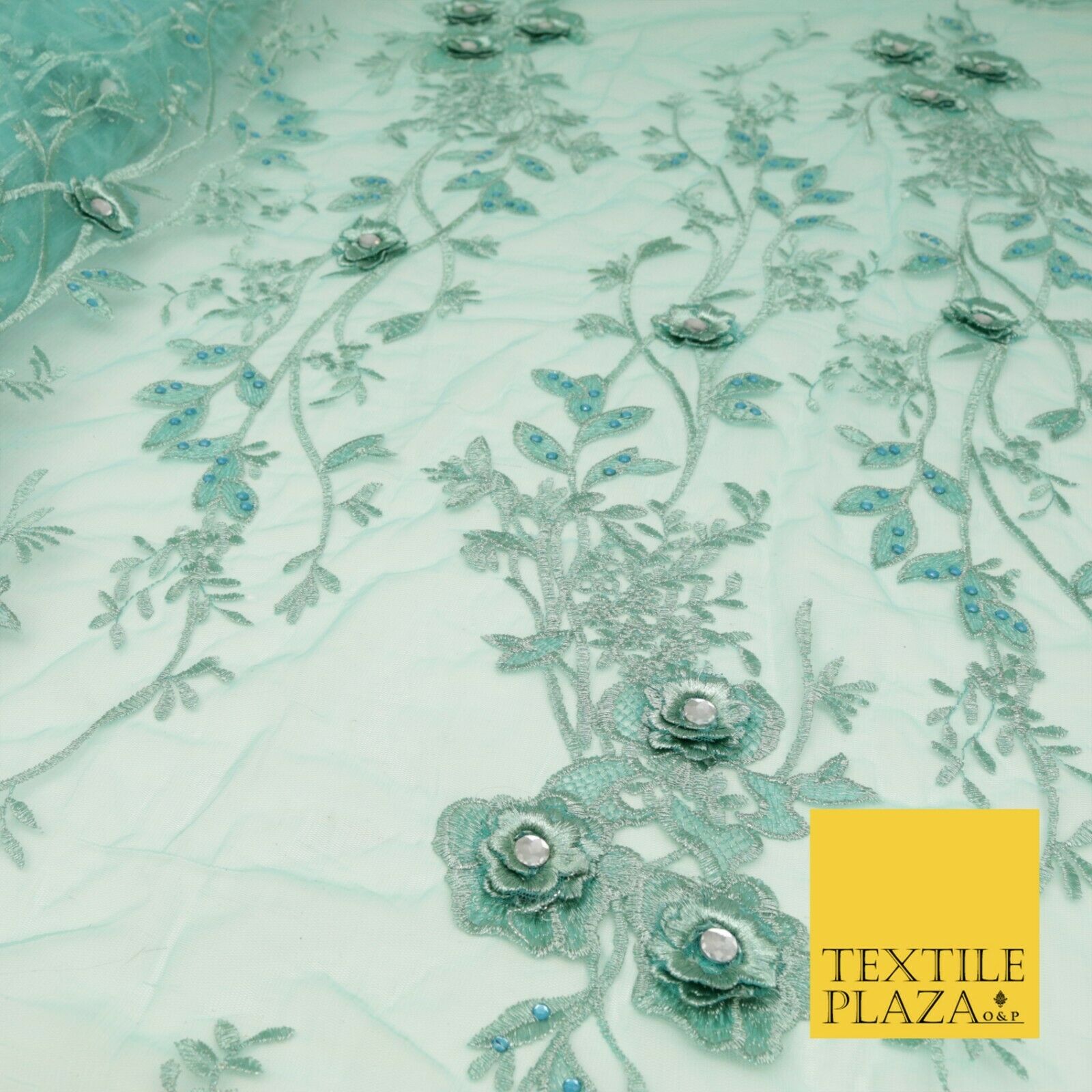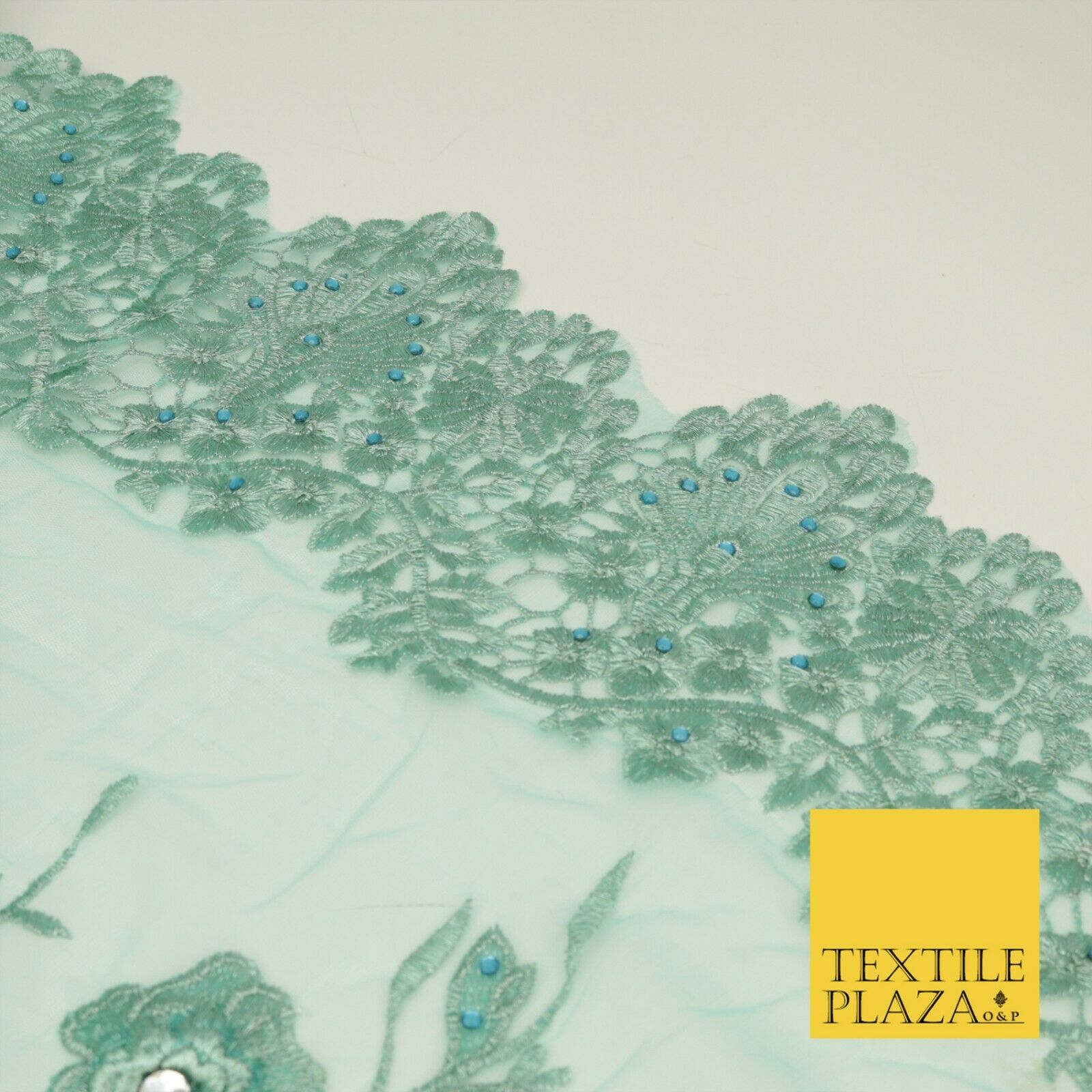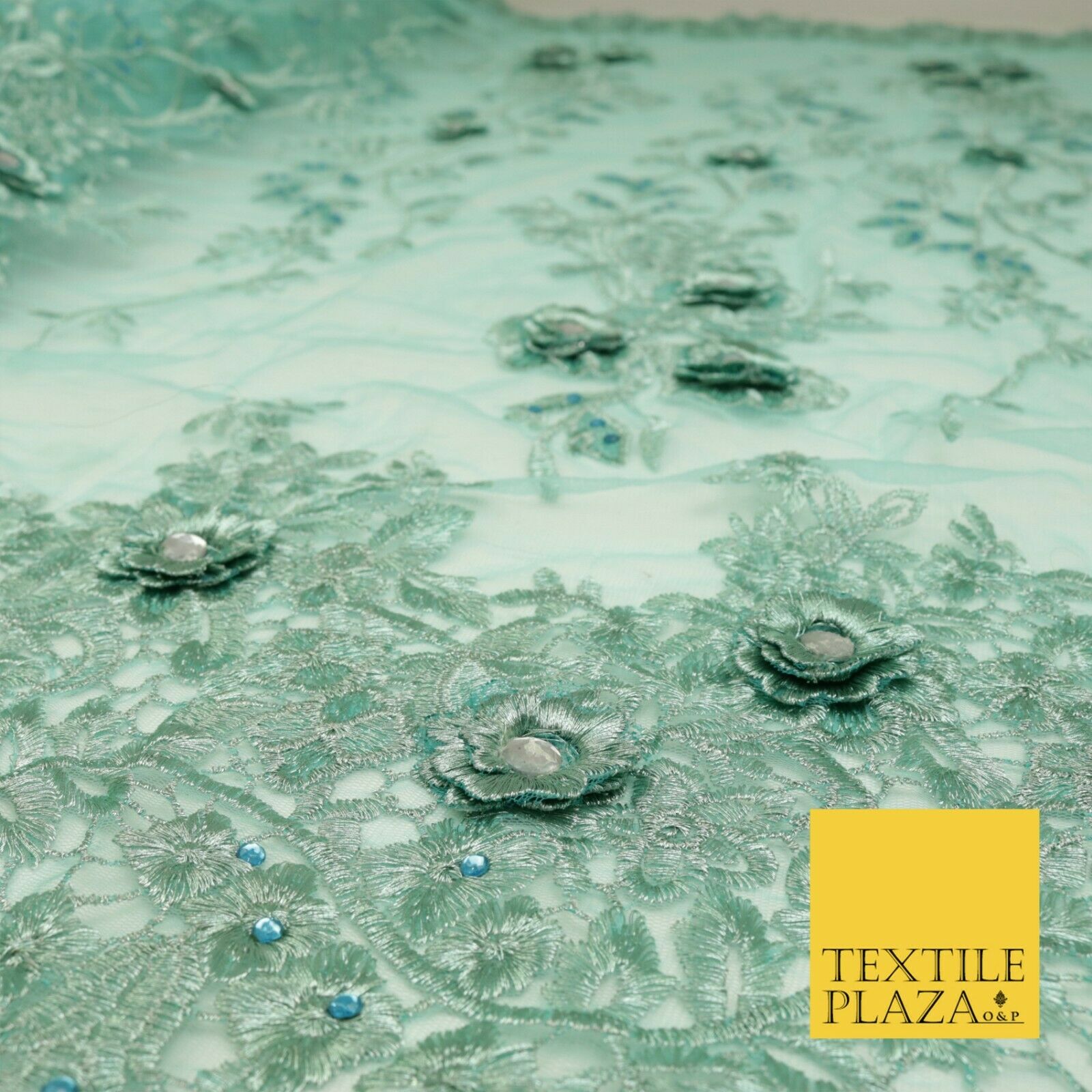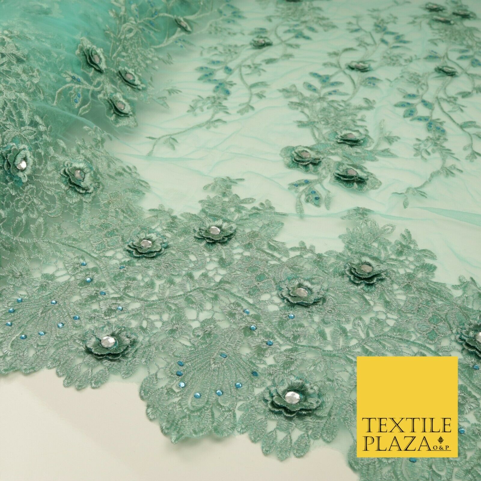 SEA GREEN 3D Flower Trio Scalloped Embroidered Net Lace Dress Fancy Bridal 1586