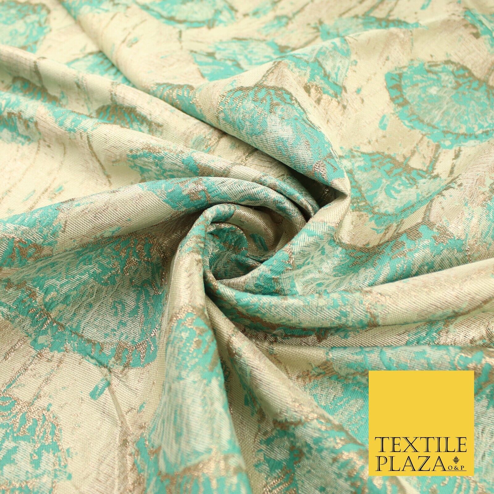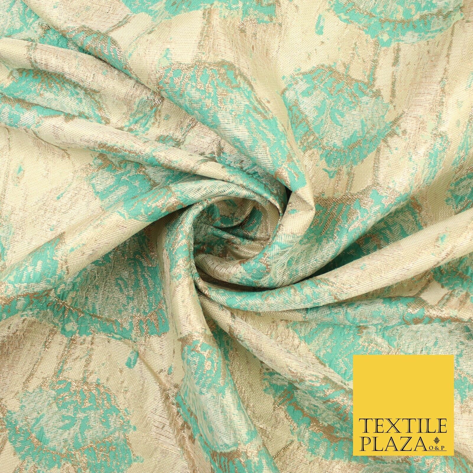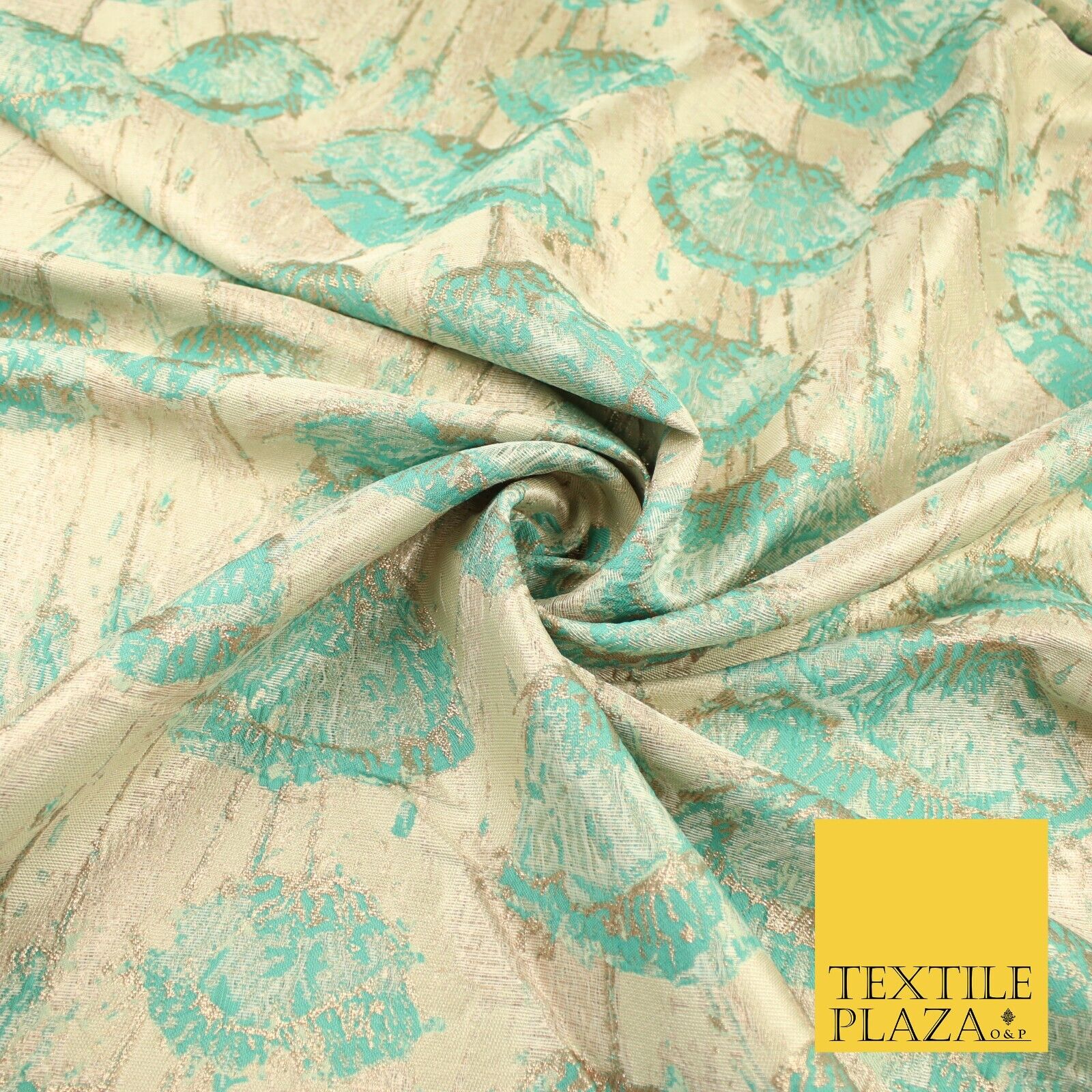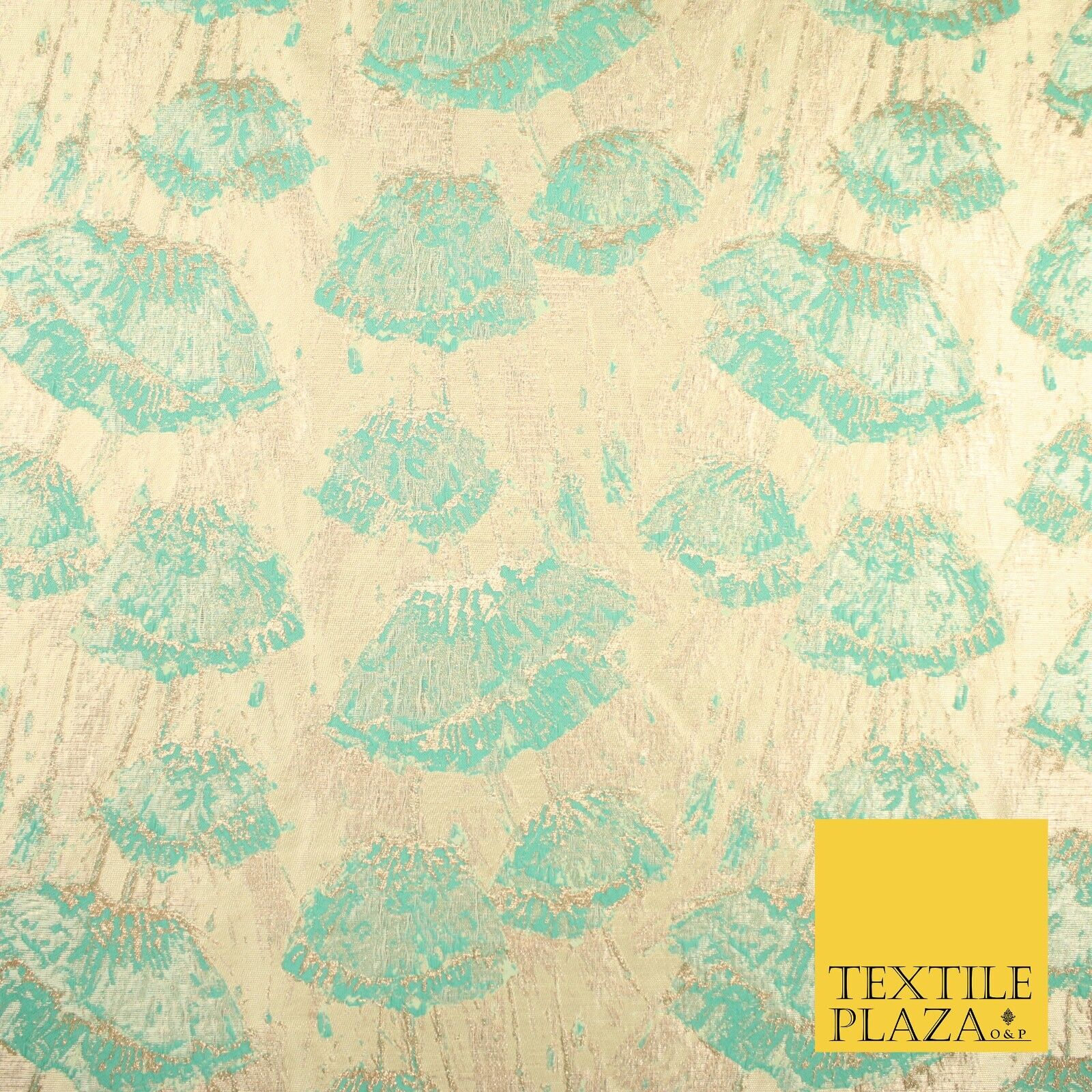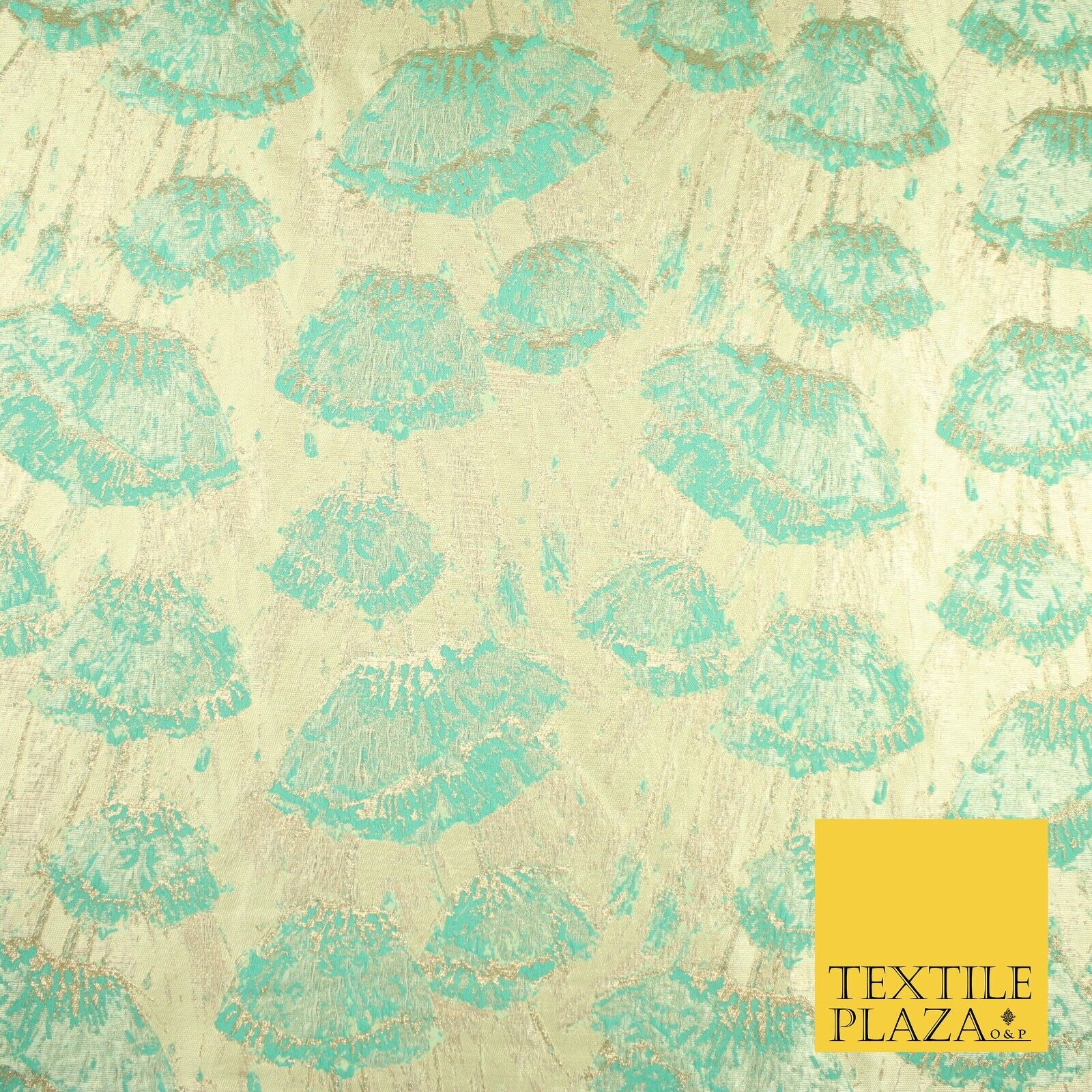 Sea Green Falling Poppies Floral Textured Brocade Jacquard Fabric 8524