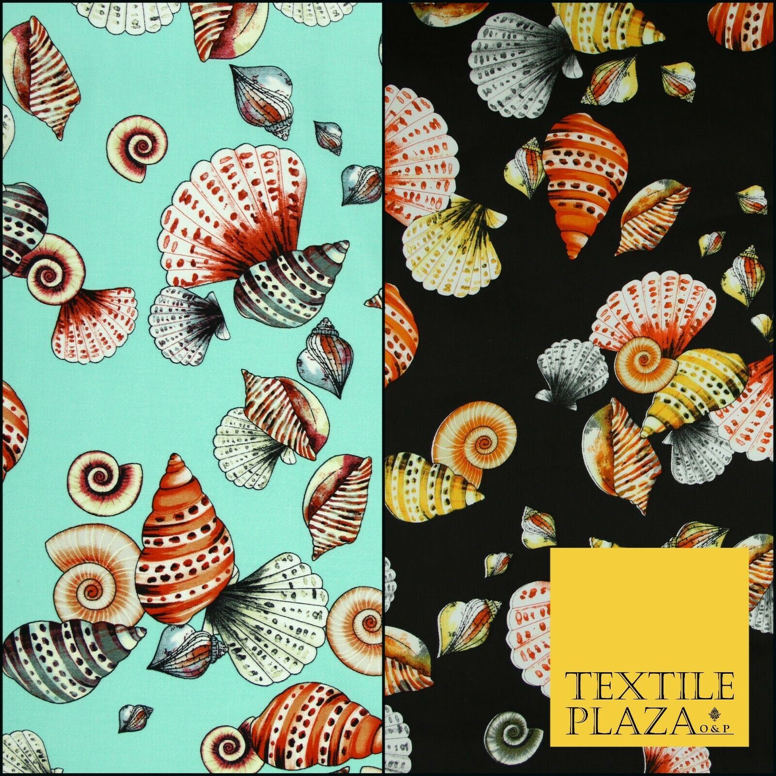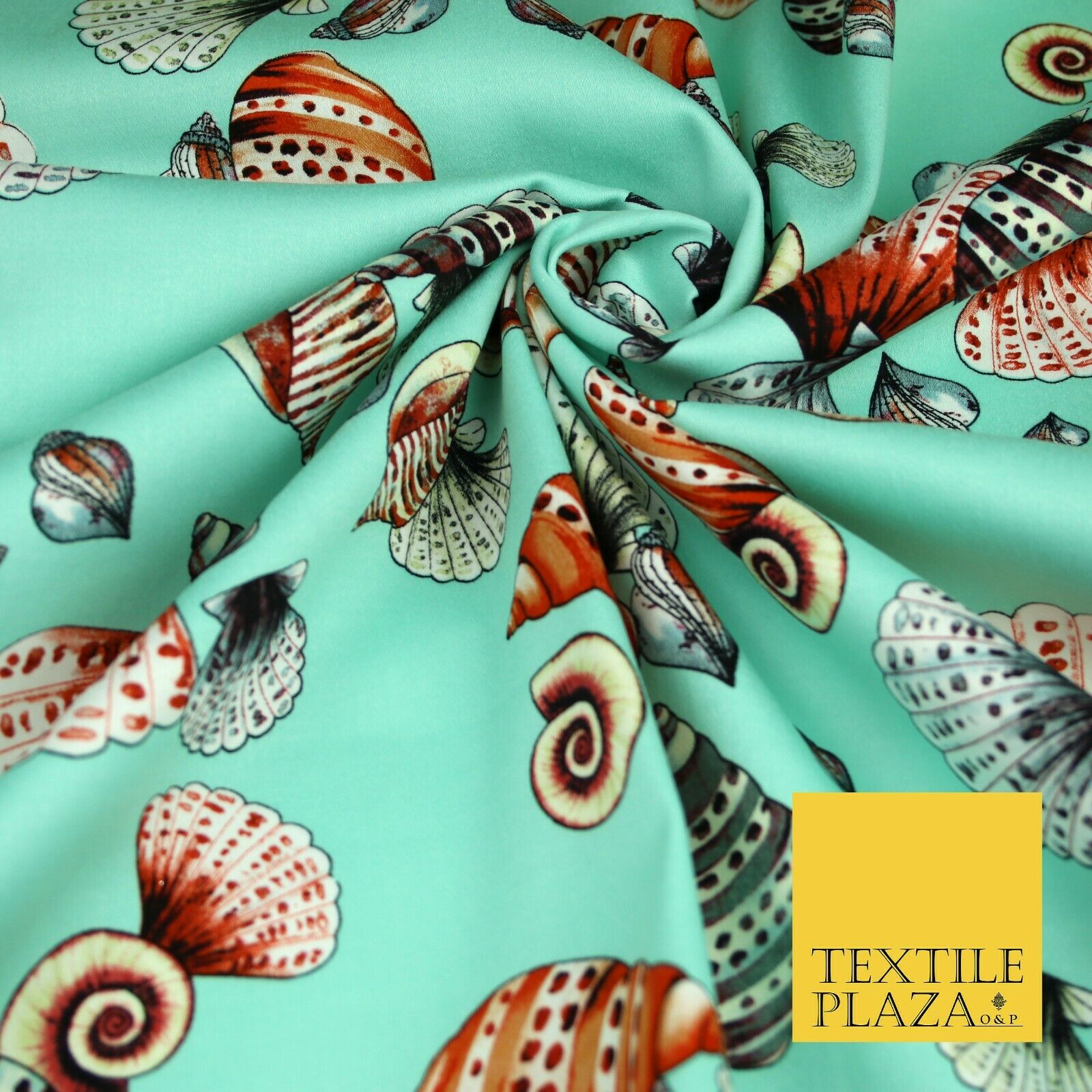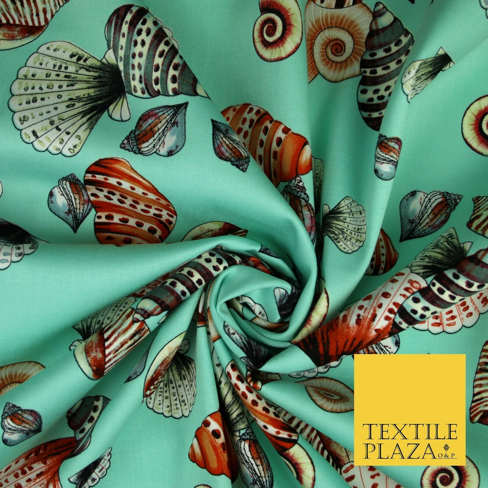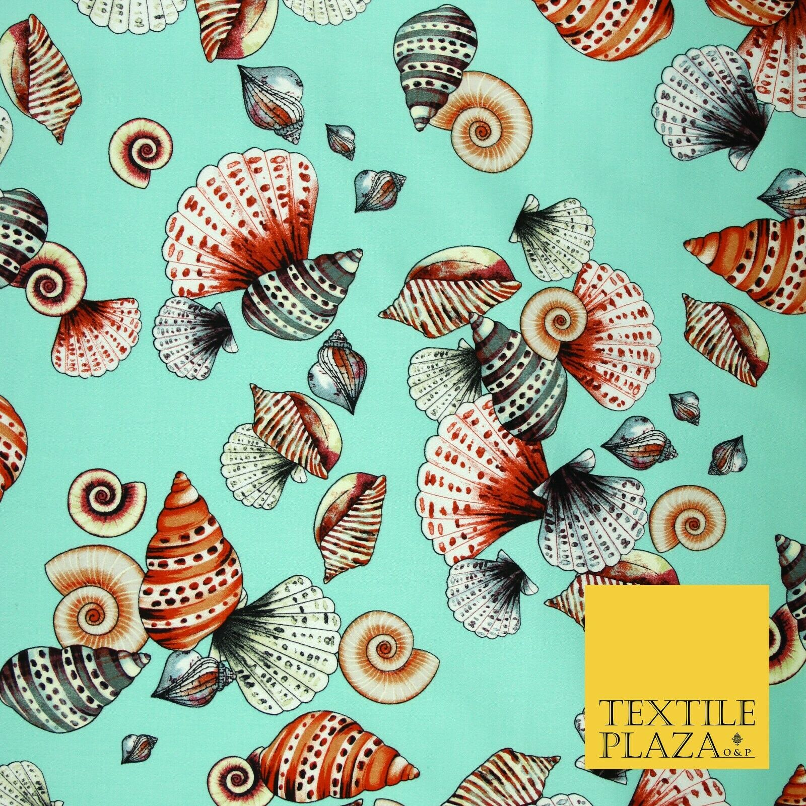 Sea Shells Oyster Clams Beach Printed Premium COTTON Sateen Fabric 58" Wide