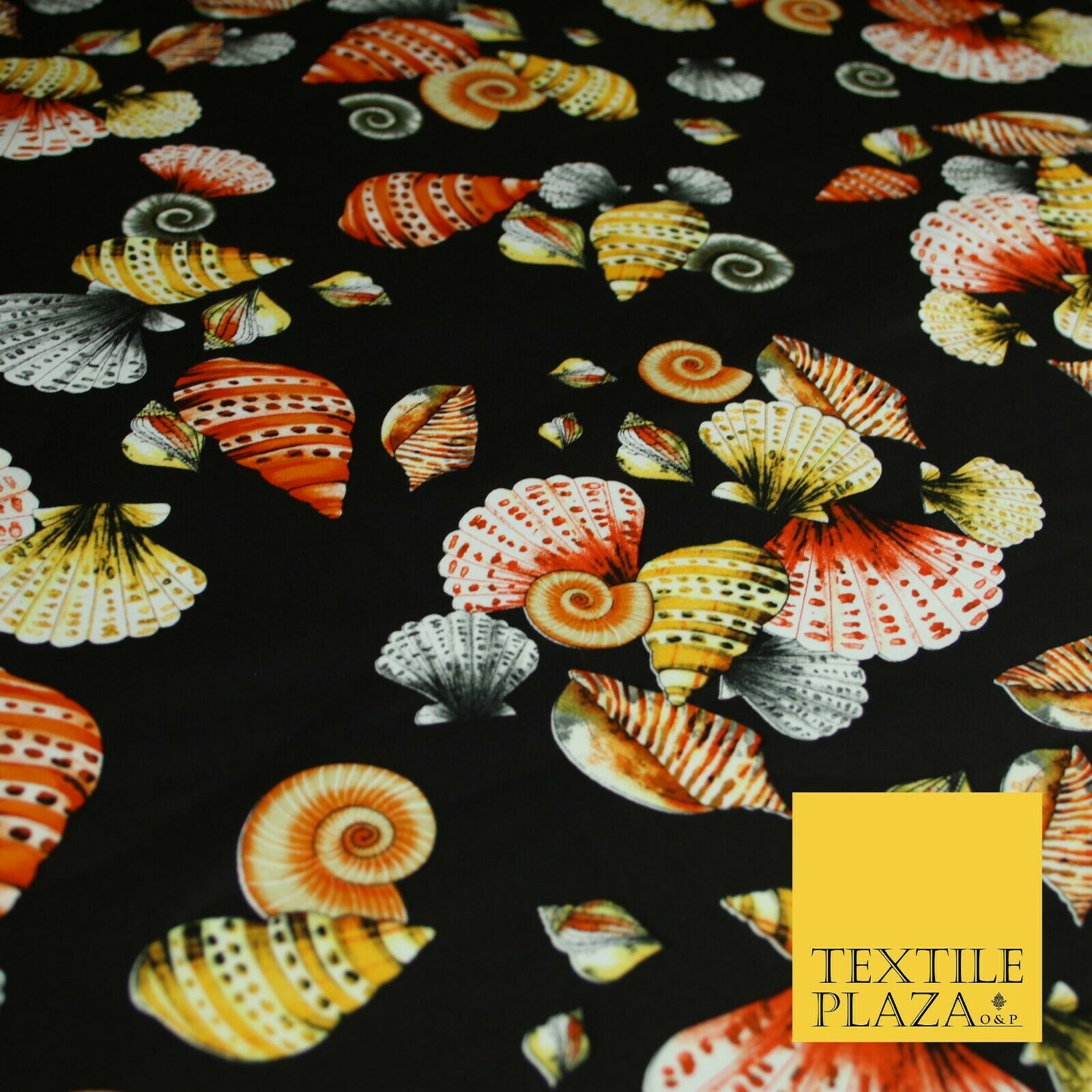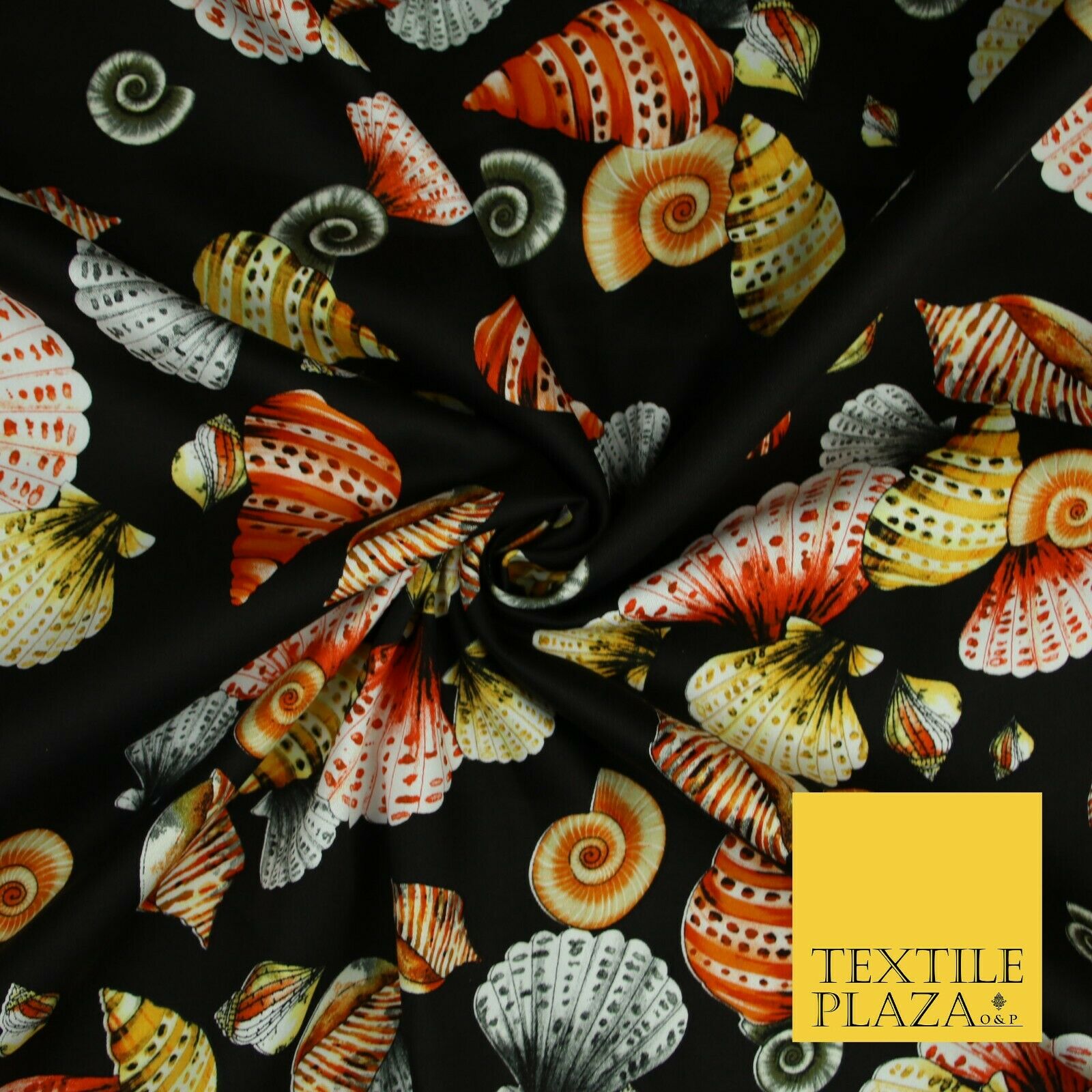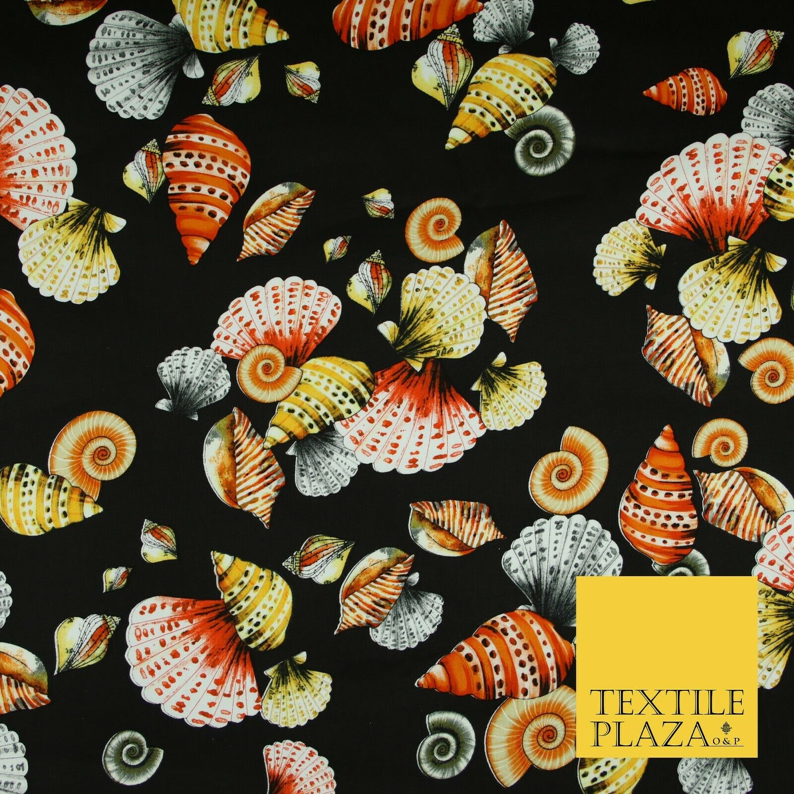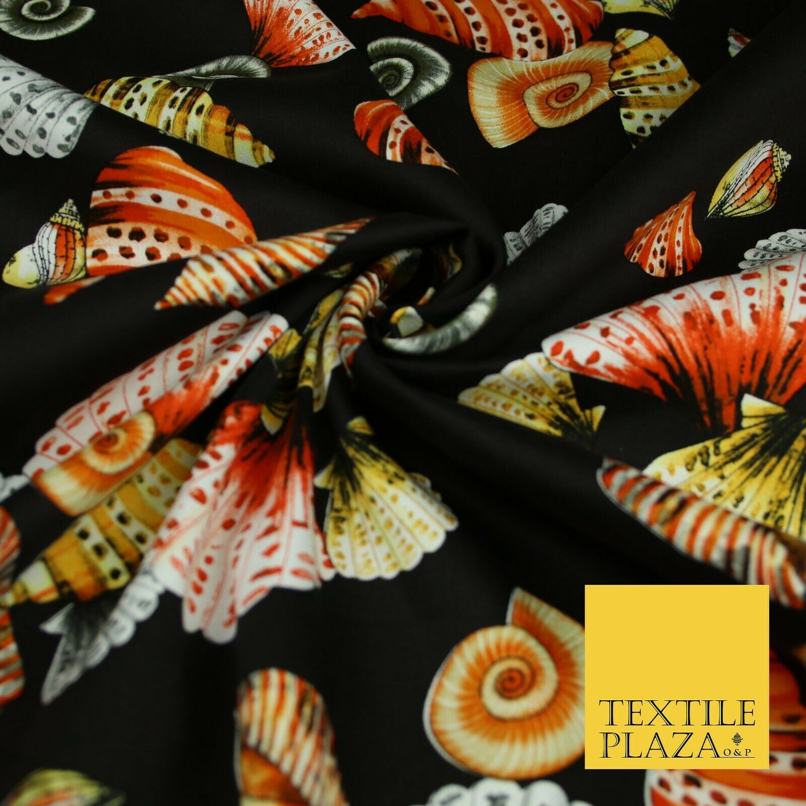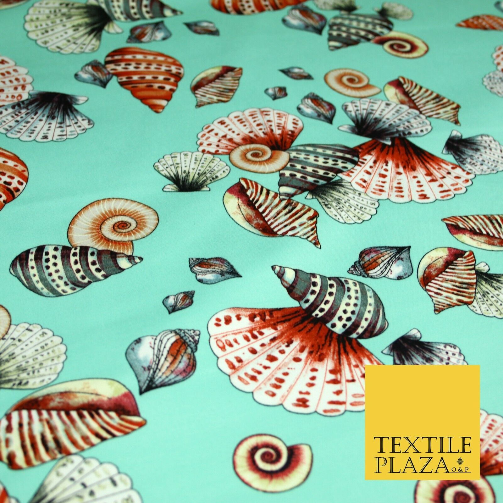 Sea Shells Oyster Clams Beach Printed Premium COTTON Sateen Fabric 58" Wide