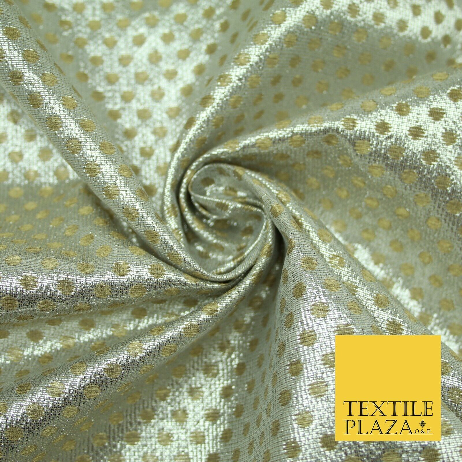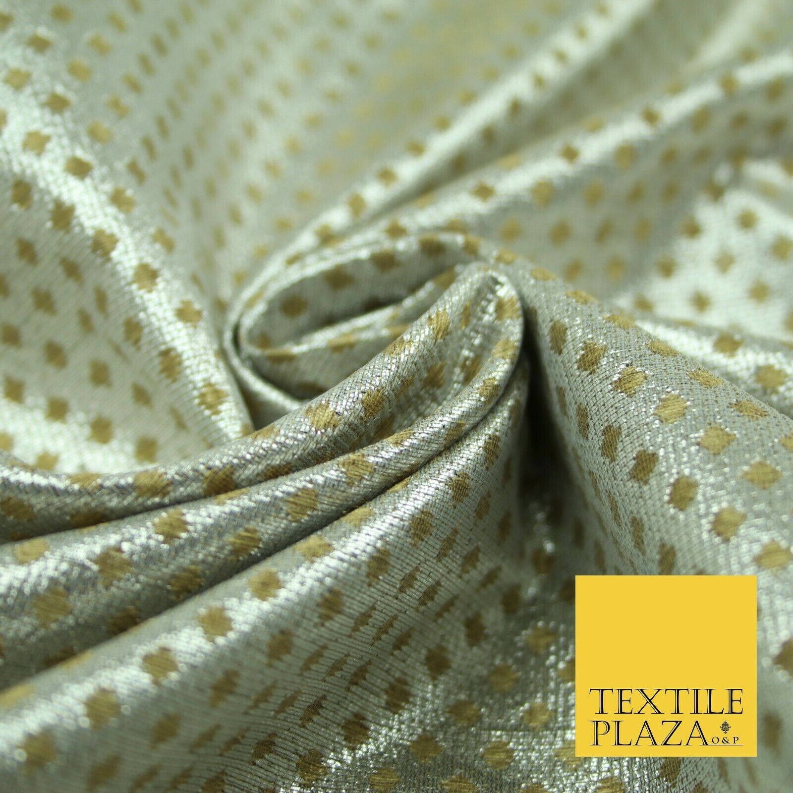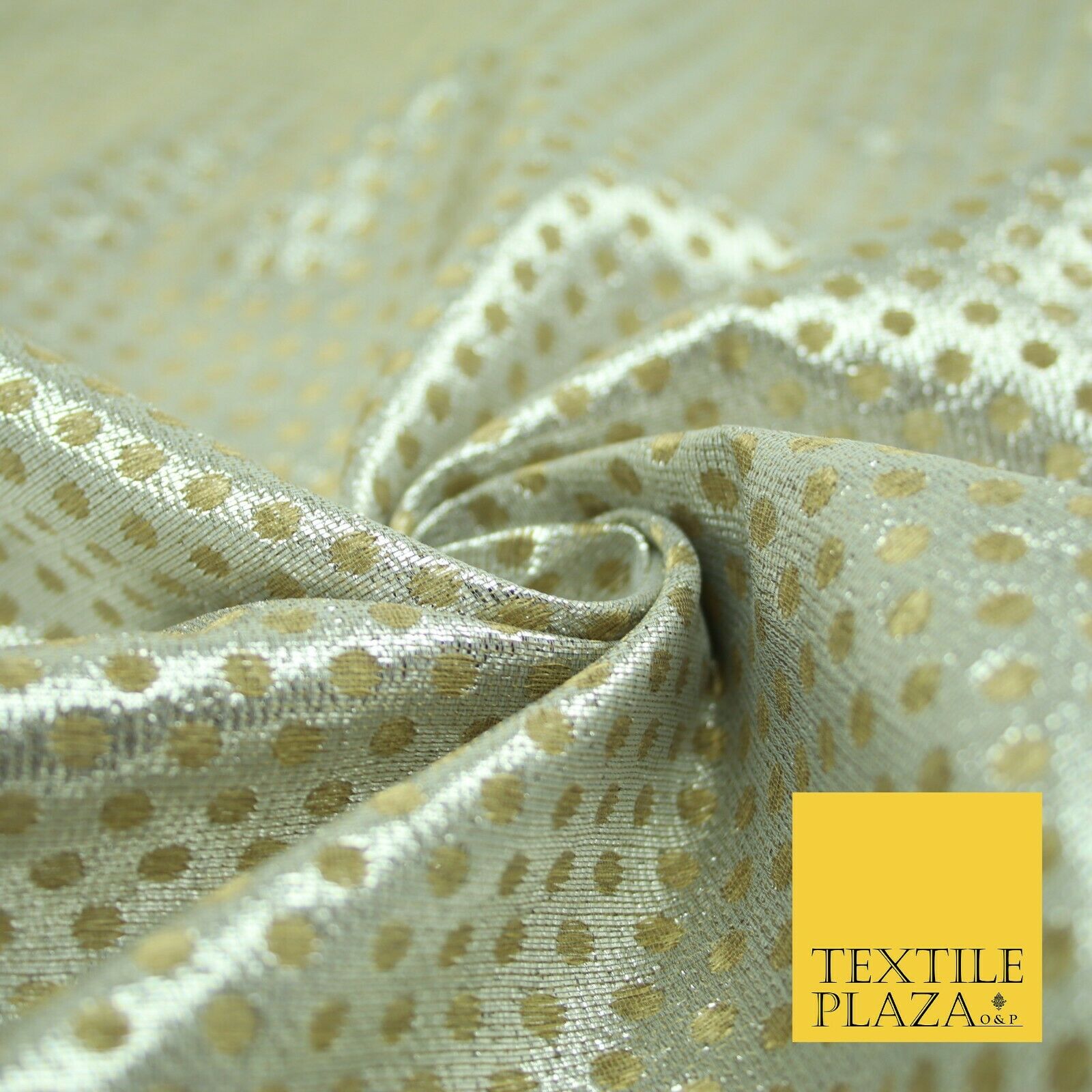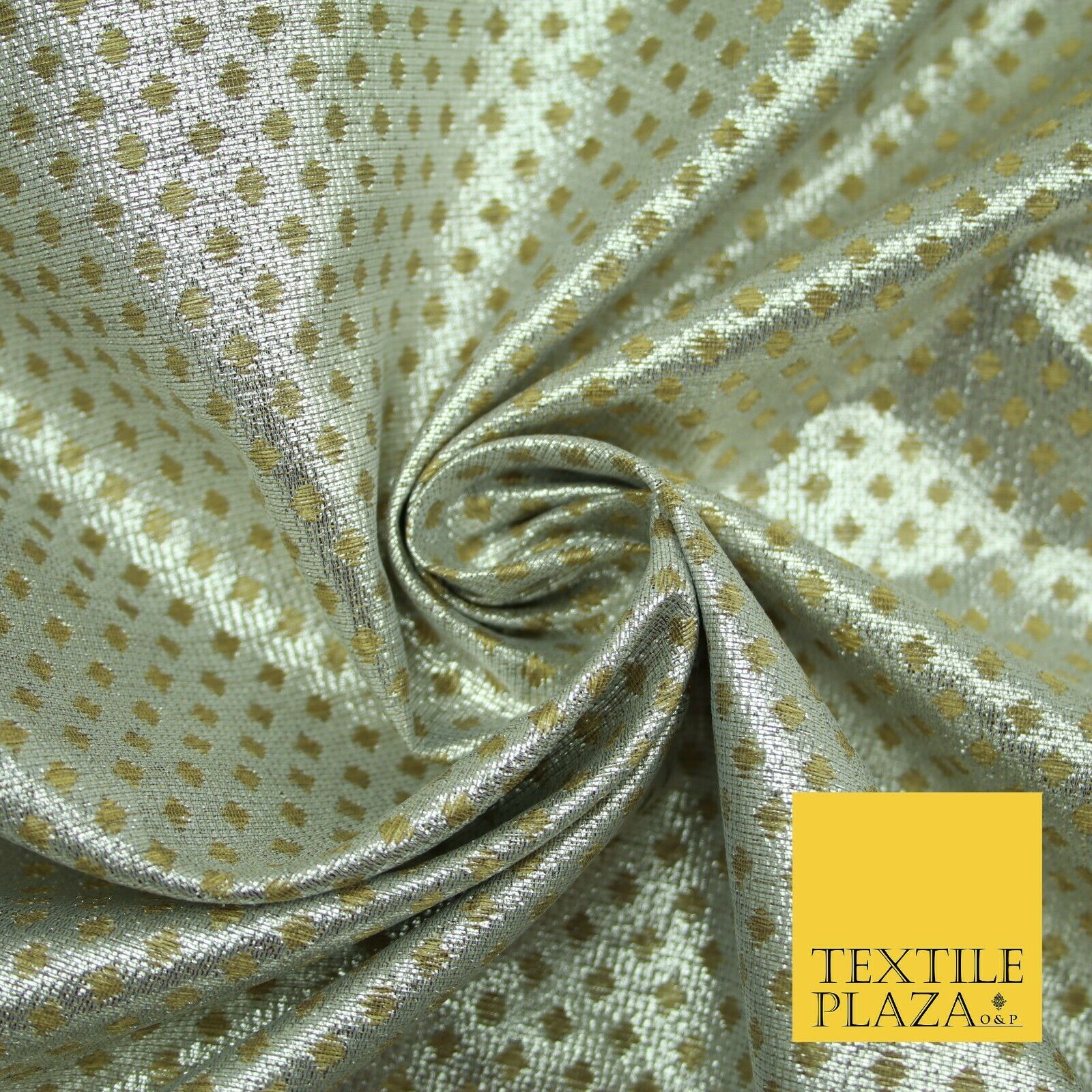 Silver Gold Circle Diamond Shimmer Metallic Foil Shiny LAME Banarsi Dress Fabric