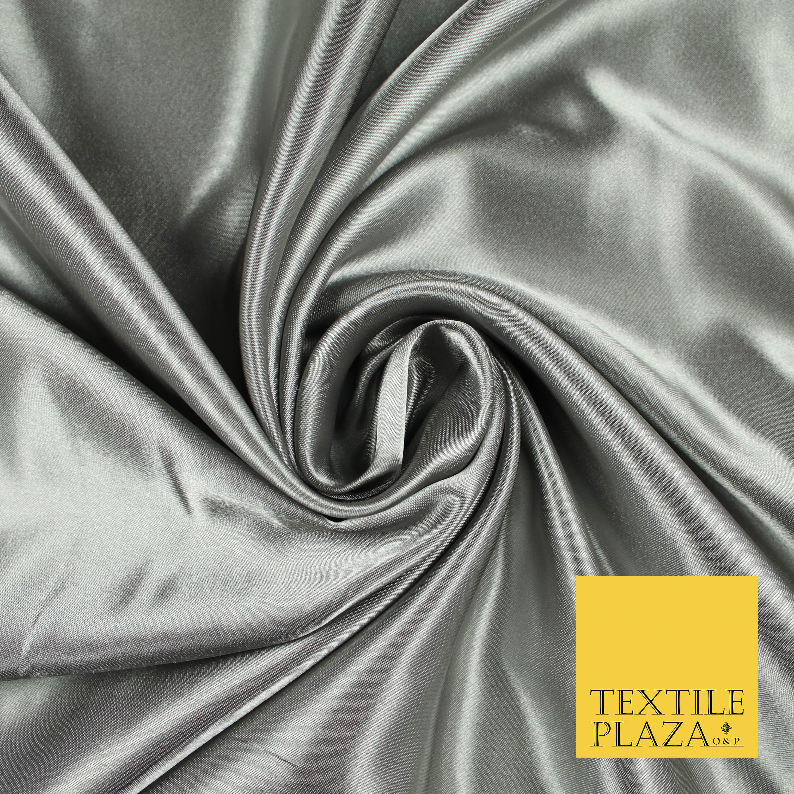 SILVER GREY Luxury Plain Smooth Shiny Lightweight Poly Satin Fabric Dress Lining Material 58" 5647