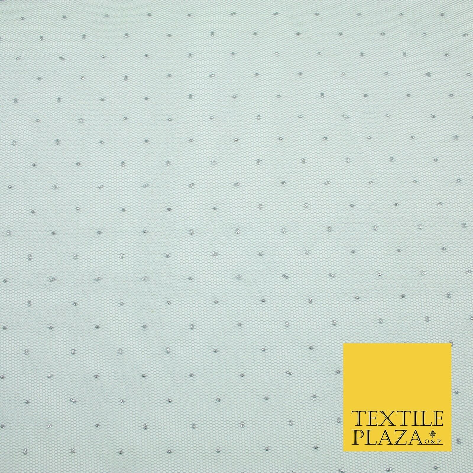 Silver Grey Reversible Metallic Glitter Dotted Net Fabric Dress Sparkle 1933