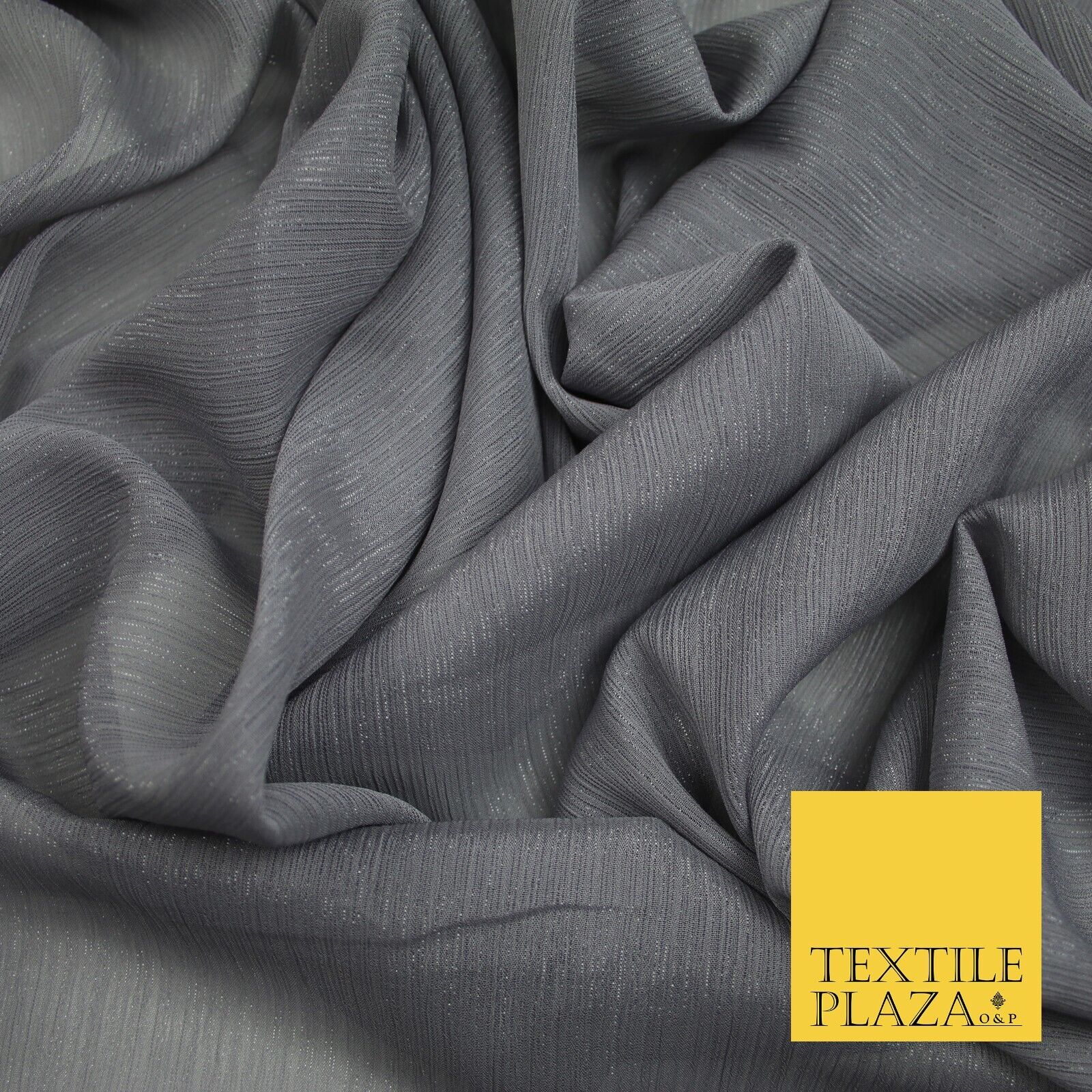 Silver Metallic Yoryu Chiffon Georgette Crinkle Dress Fabric 58″ OVER 20 COLOURS