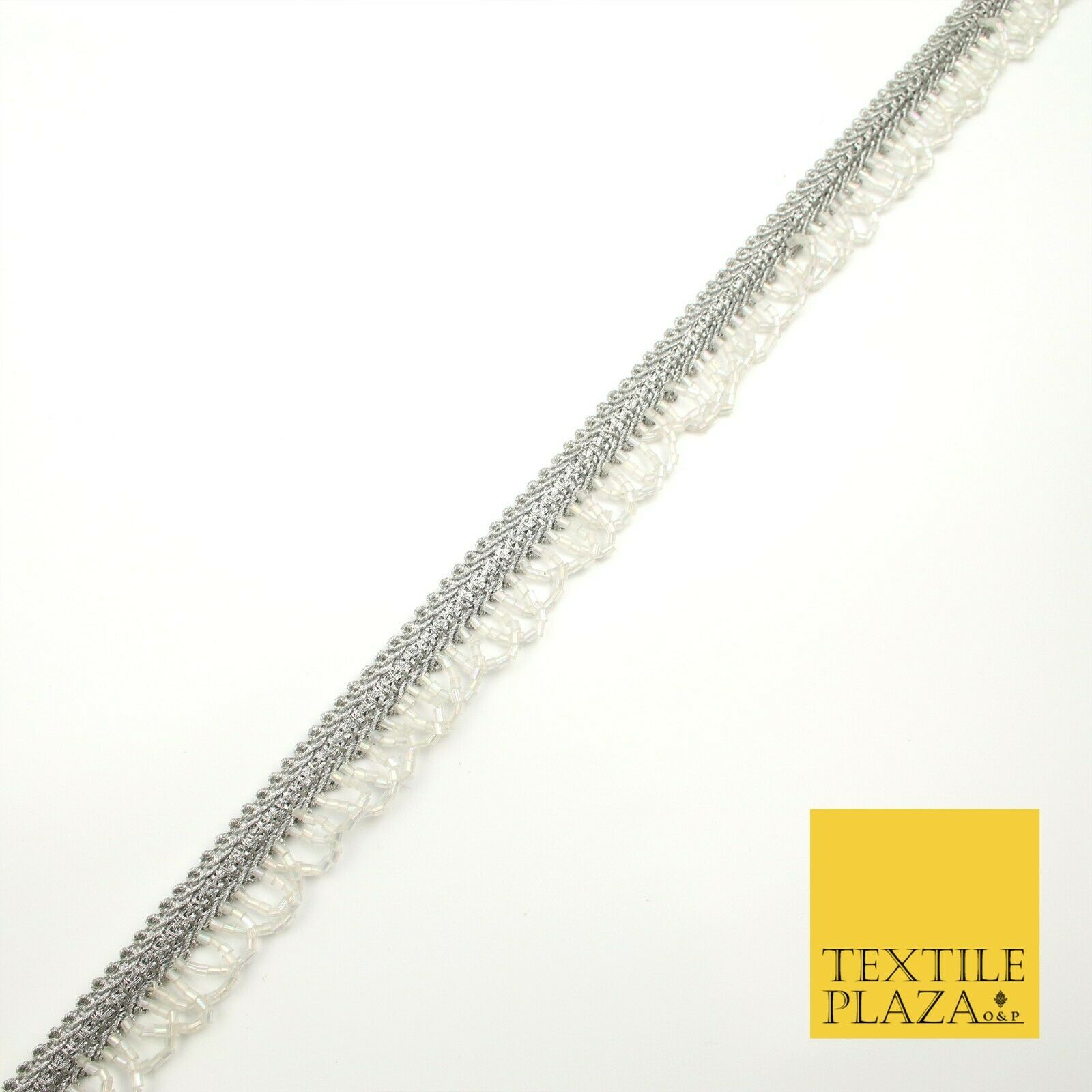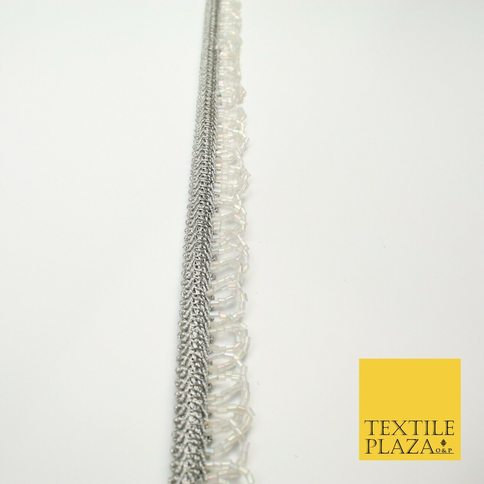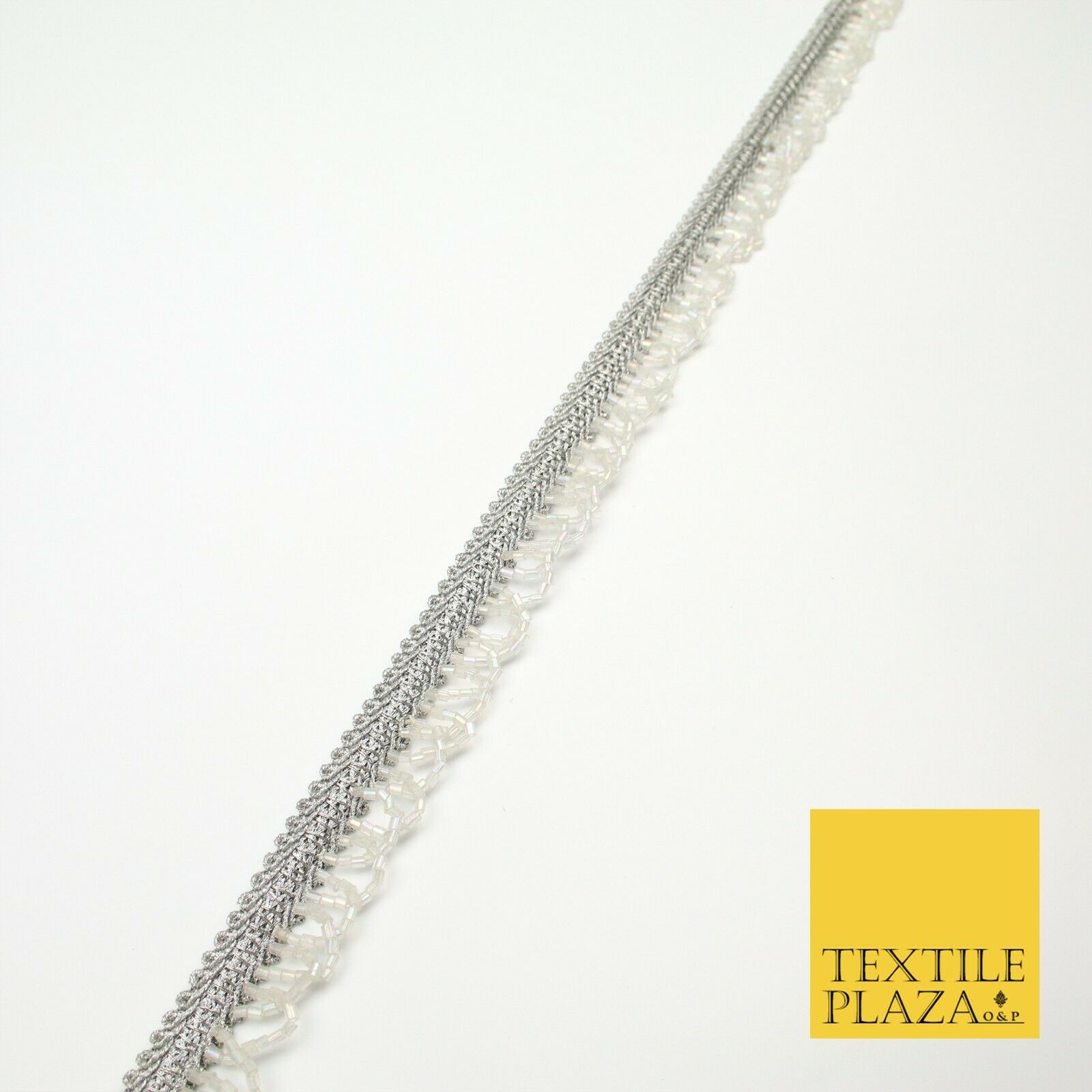 Silver Pearl Glass Beaded Swag Tassel Drop Loop Trimming Ribbon Border Lace X318