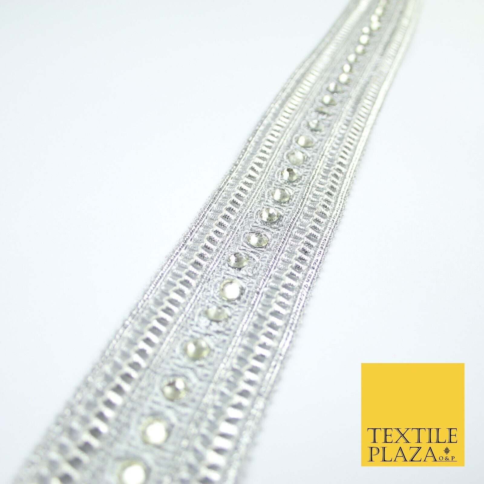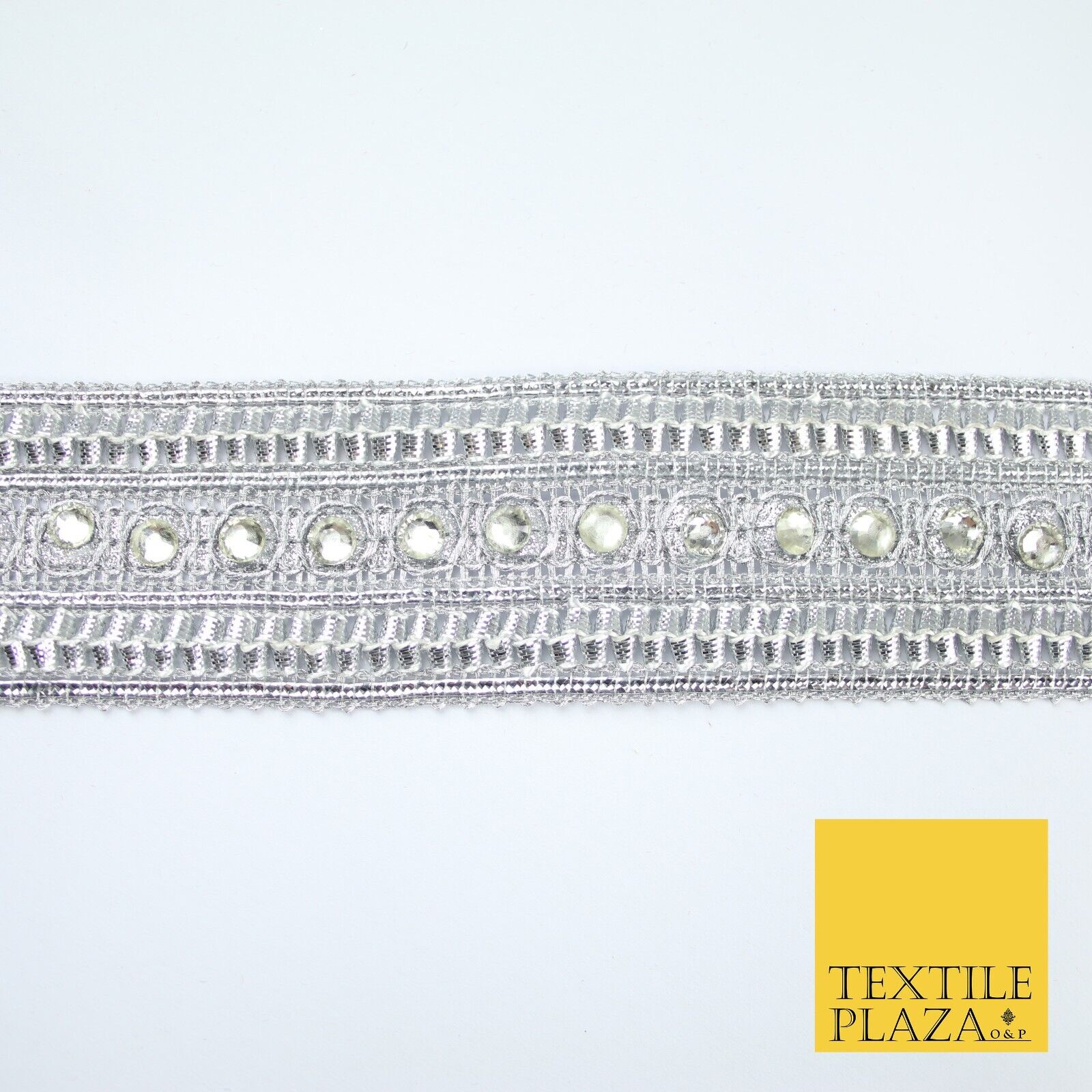 Silver Round Diamonte Double Band Metallic Trim Border Lace - 4.5cm Wide - X617
