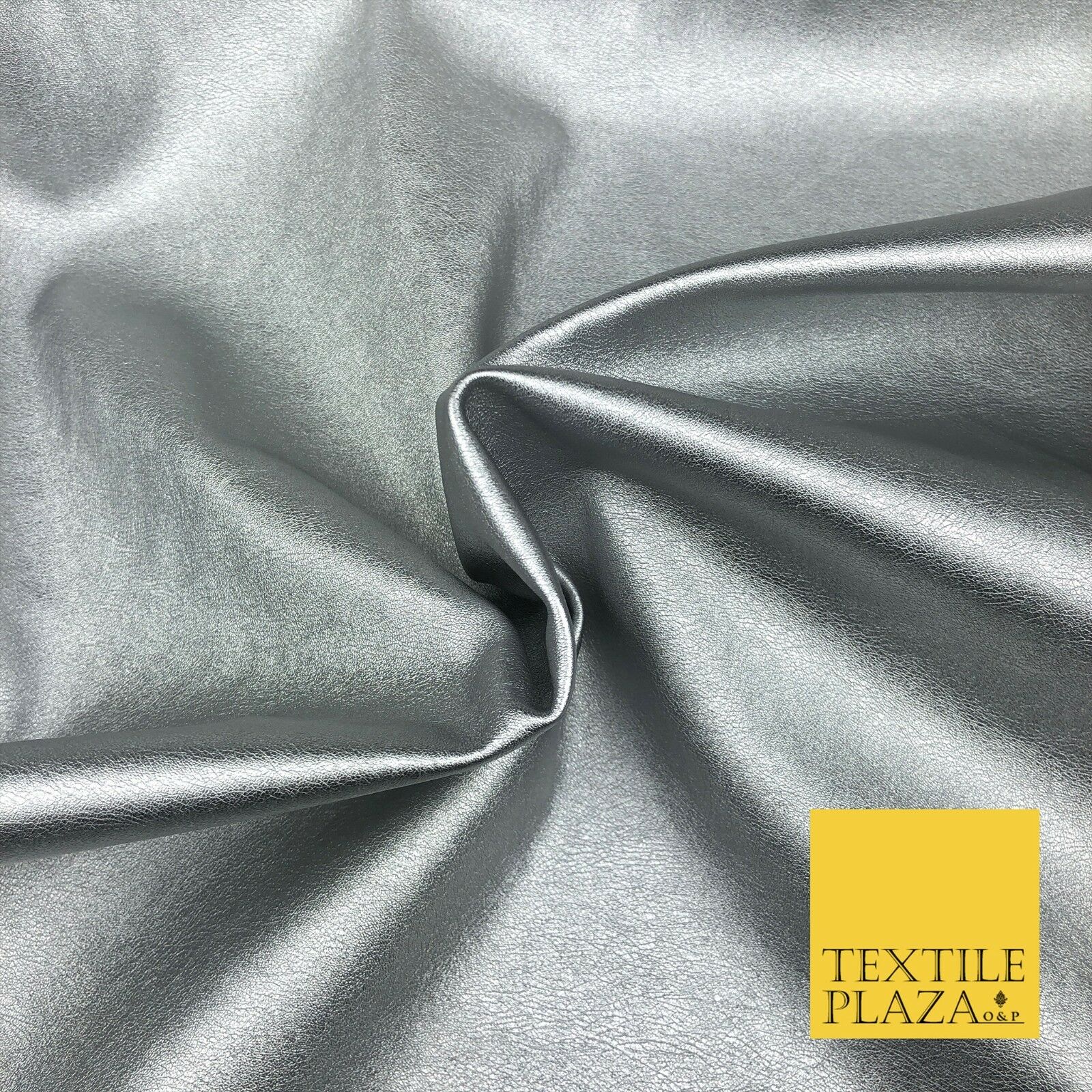 SILVER Shiny Premium Metallic Leatherette Fabric 300gsm Dancewear Craft 978