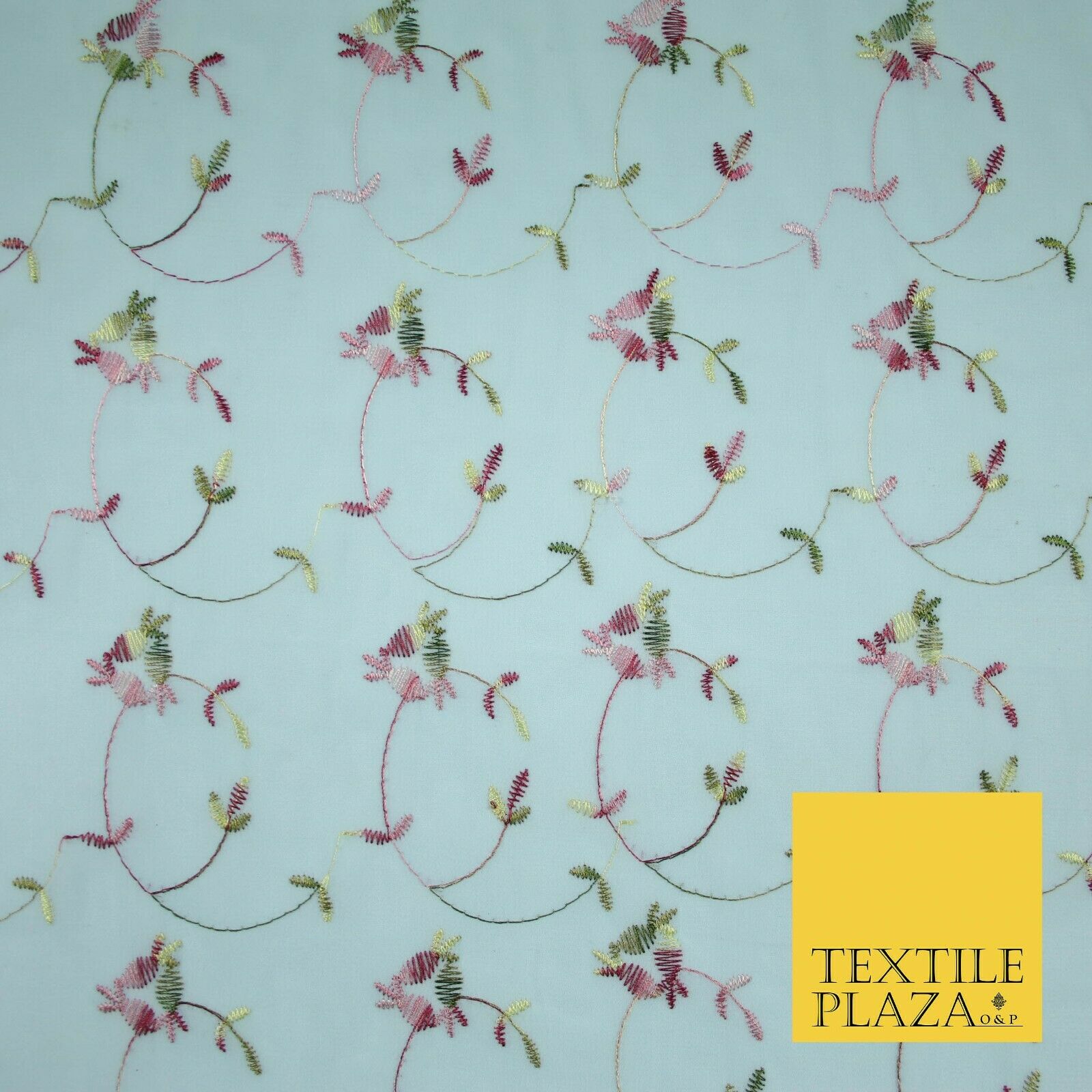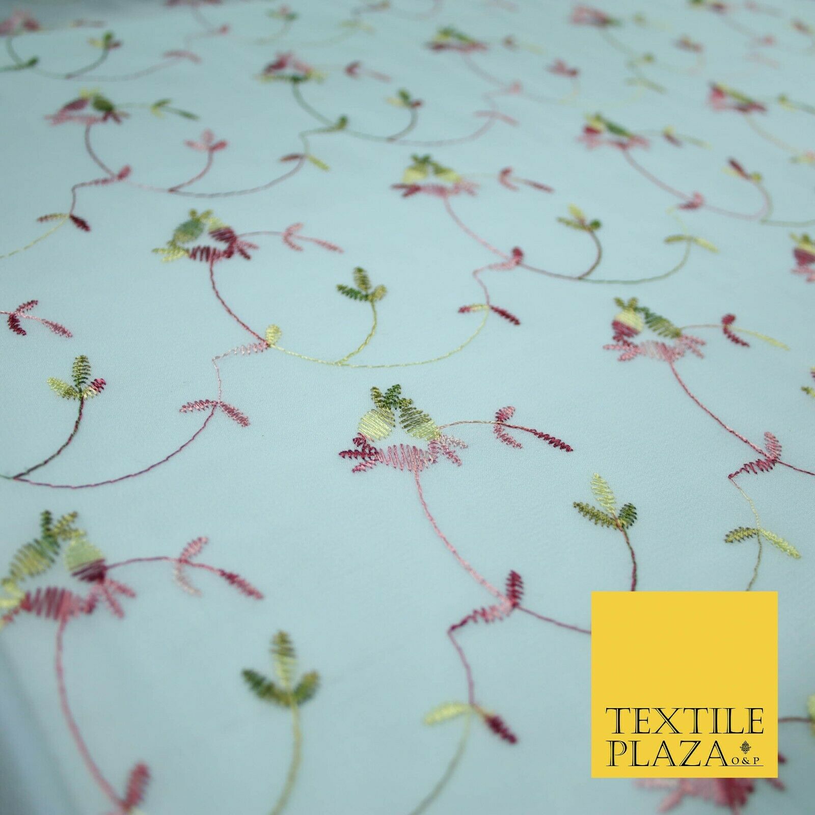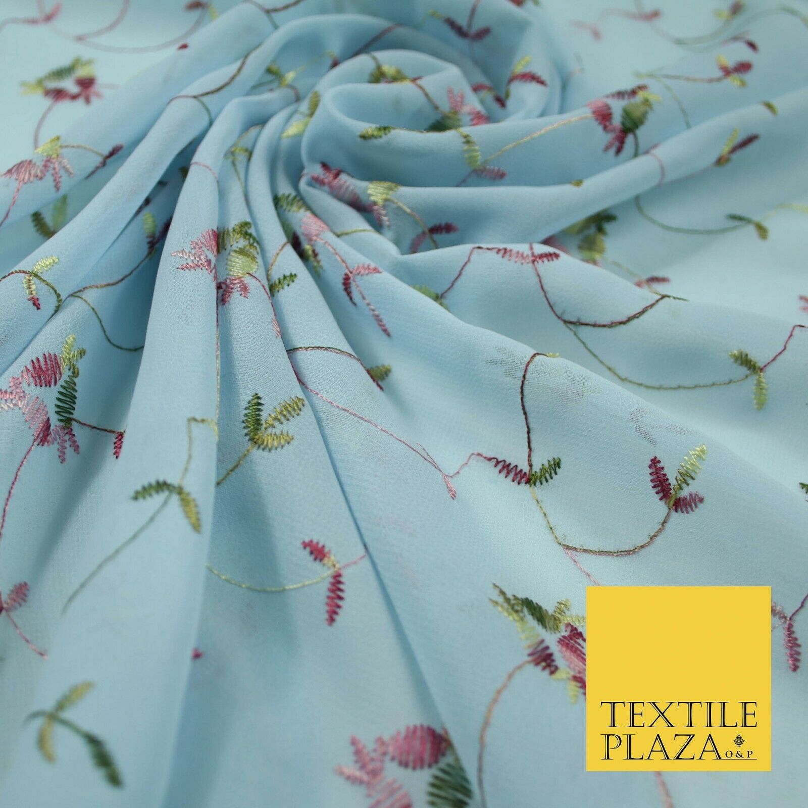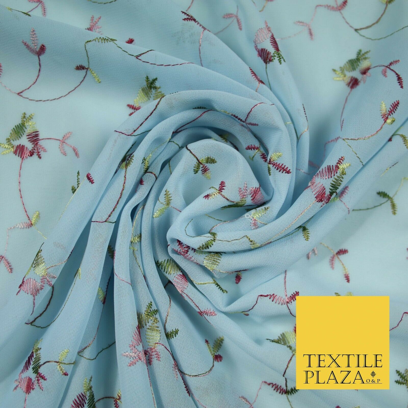 Sky Blue Floral Multi Thread Embroidered Georgette Dress Fabric Fancy 55" 5279