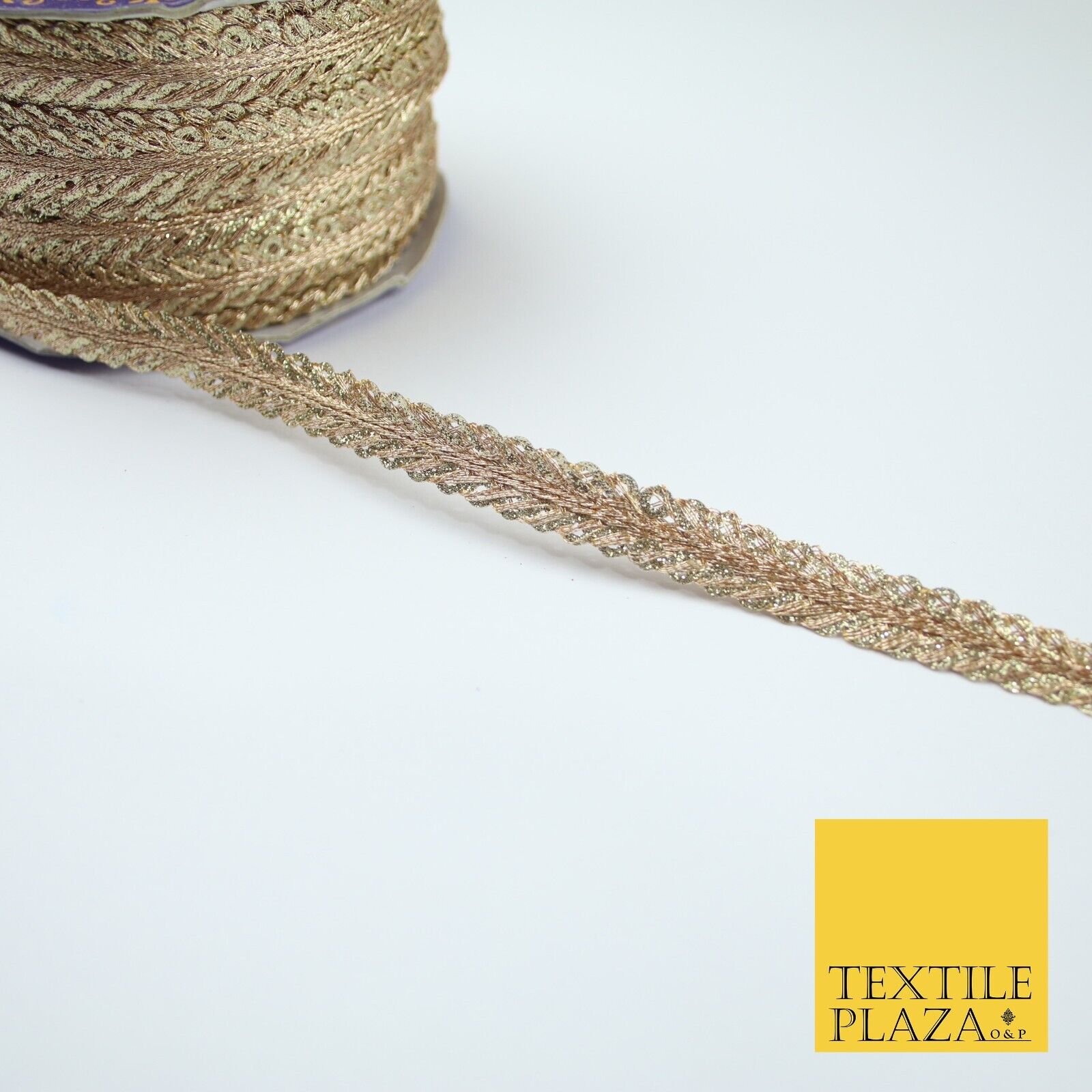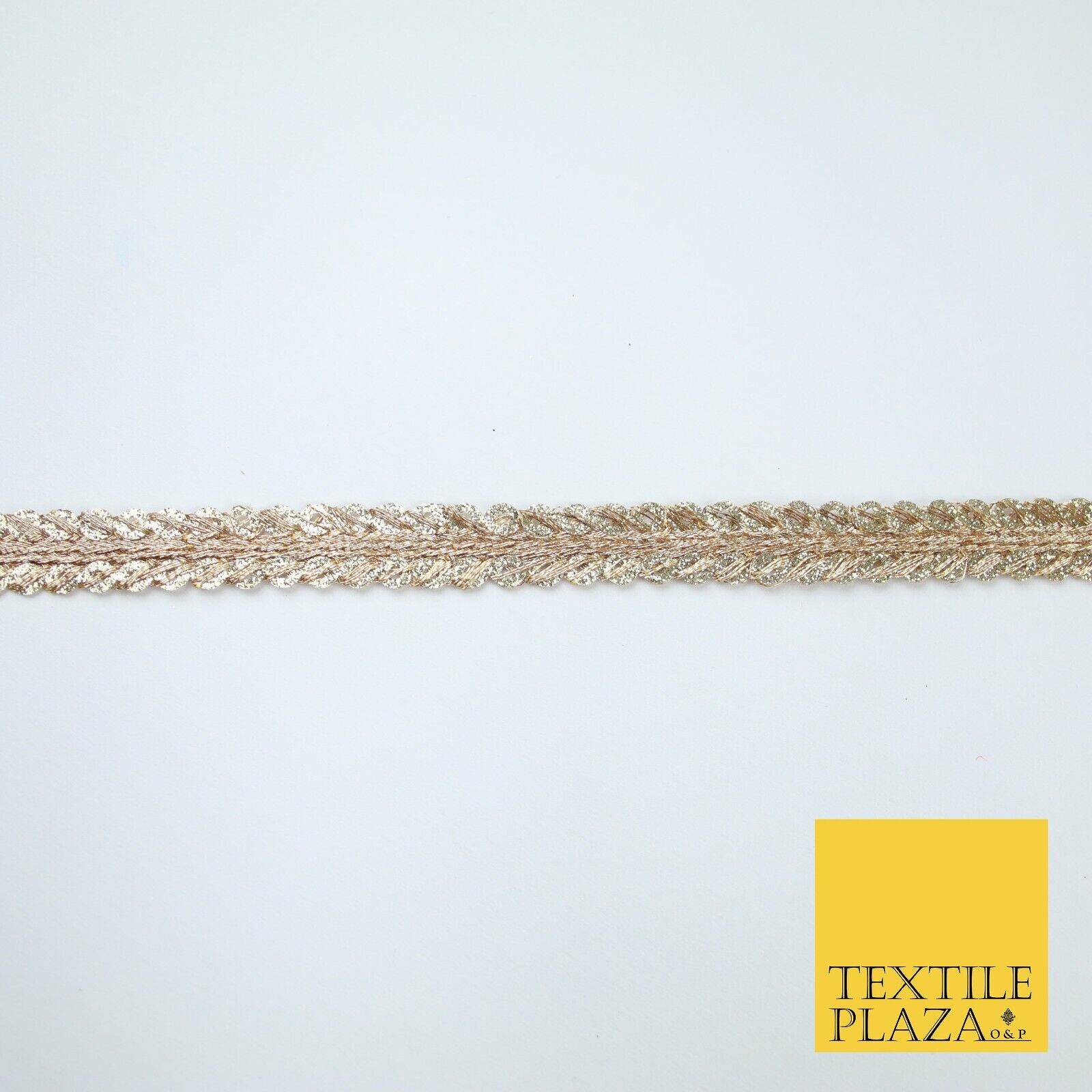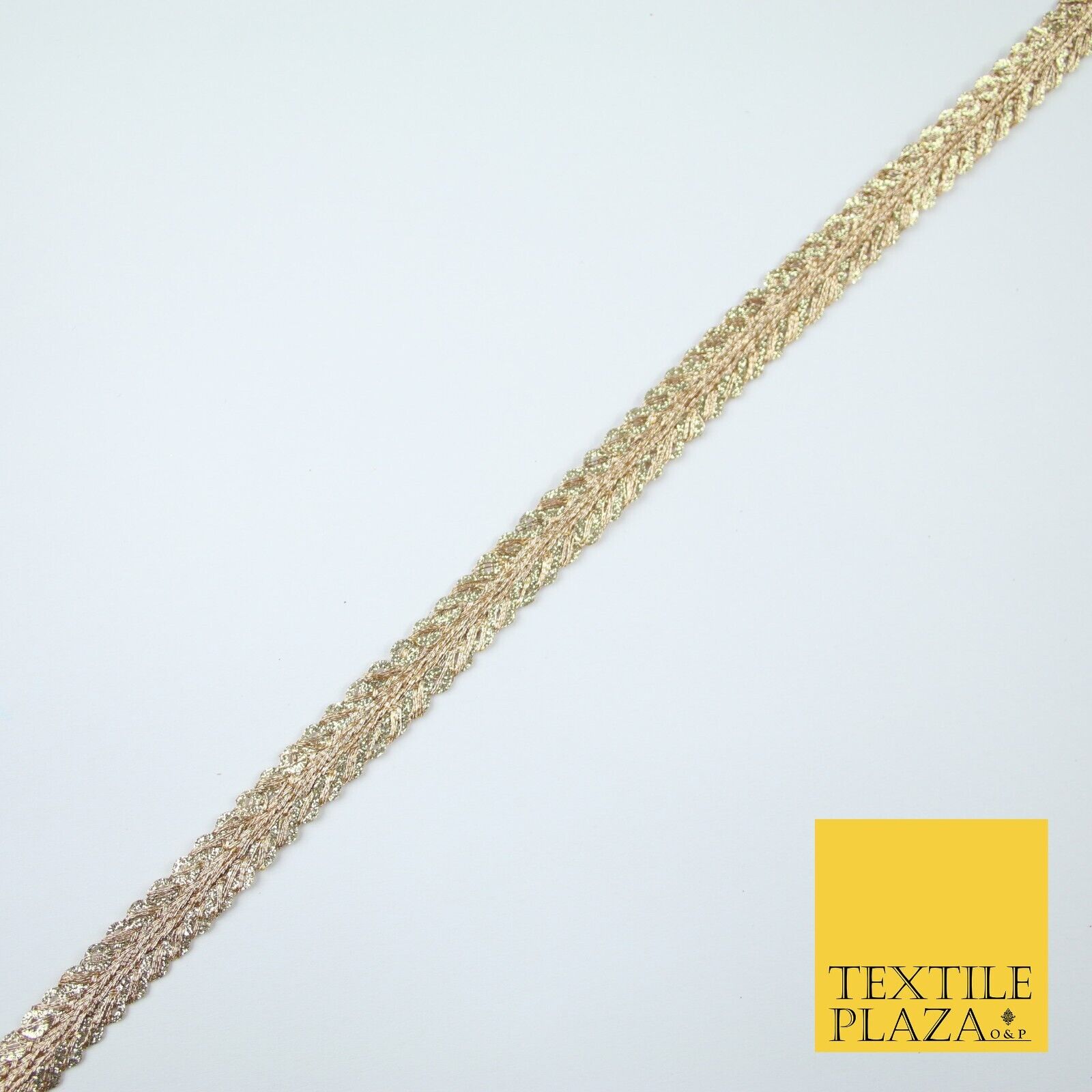 Slim Two Tone Gold Woven Glitter Sequin Chevron Trim Border Lace - 1cm Wide X673