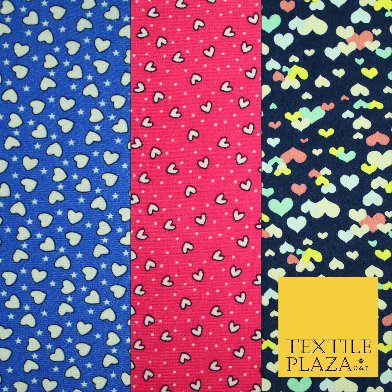 Small Cute Heart Love Valentine Rainbow Printed Crepe Polyester Dress Fabric 58"