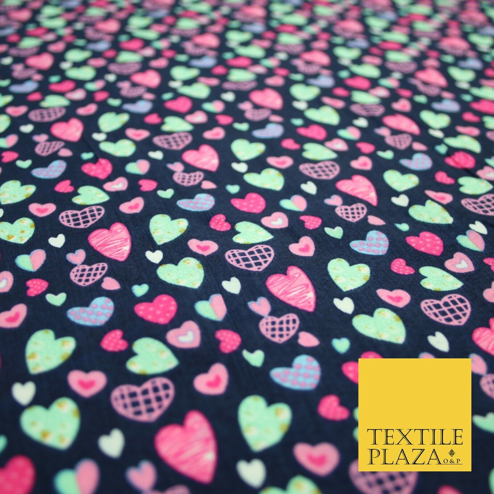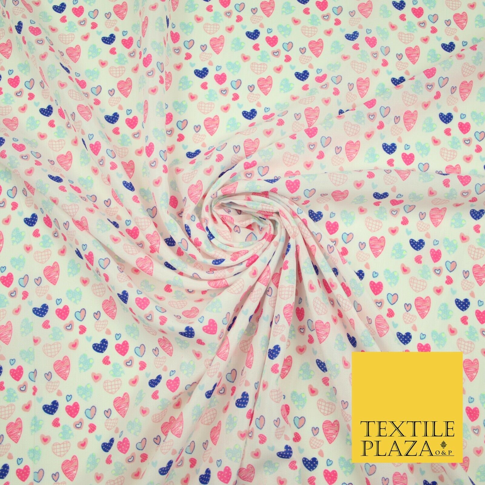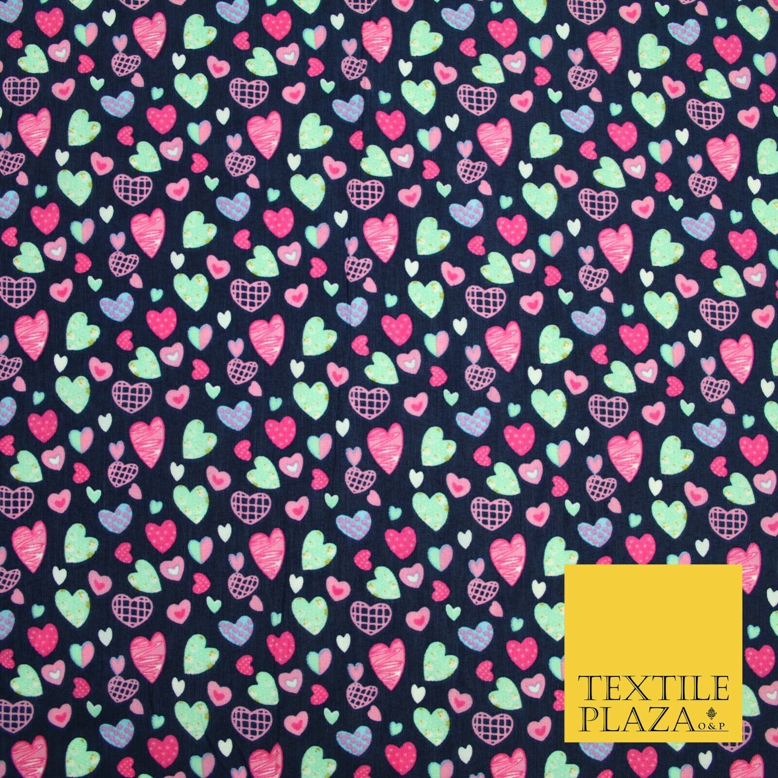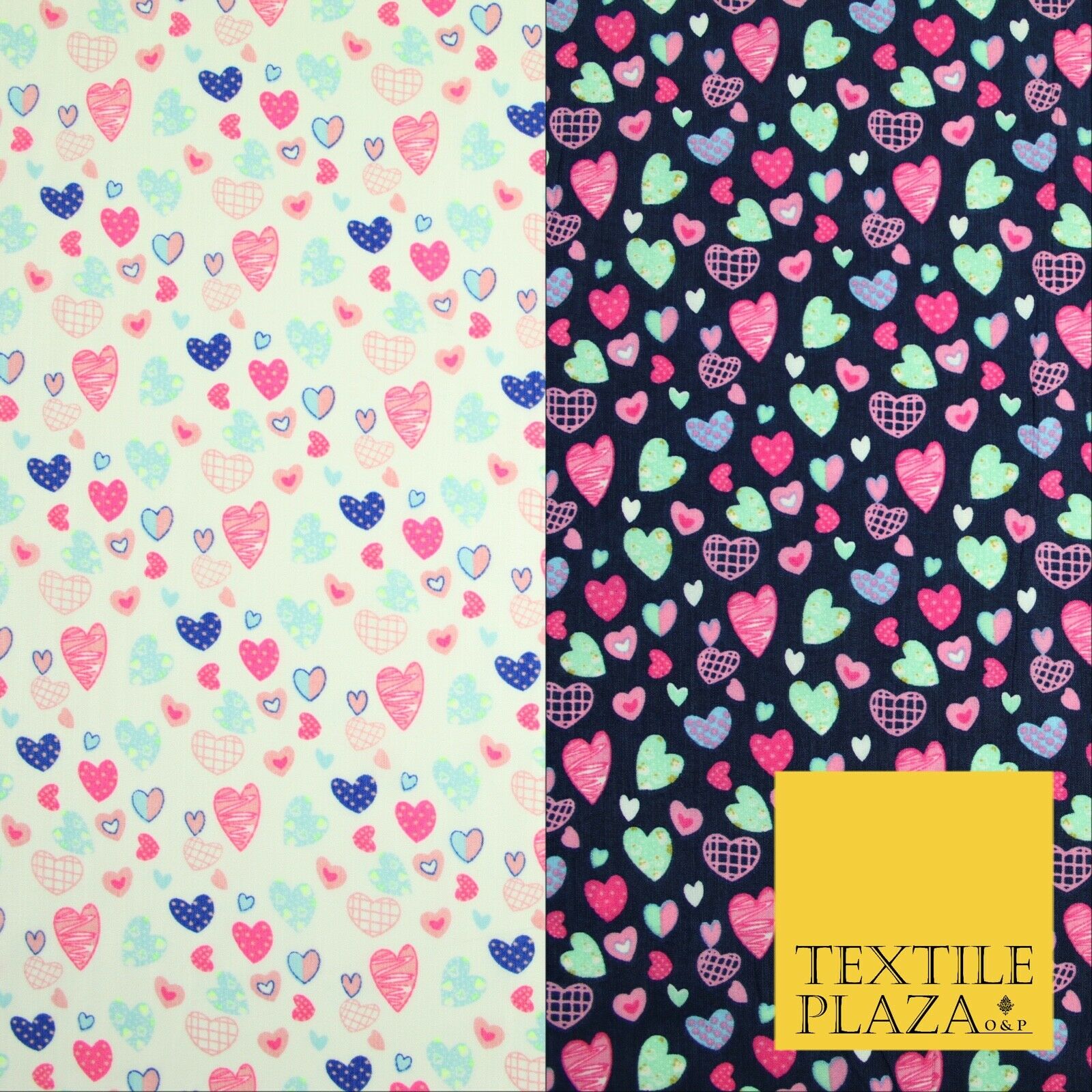 Small Cute Heart Love Valentine Rainbow Printed Crepe Polyester Dress Fabric 58"