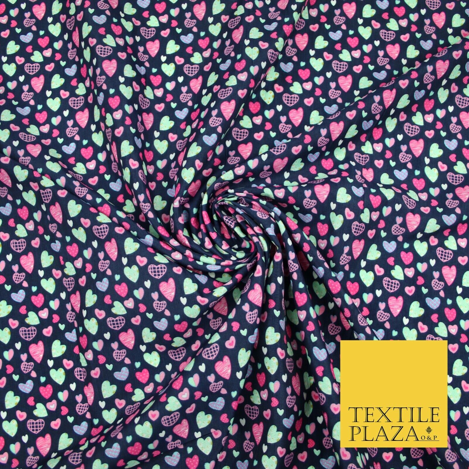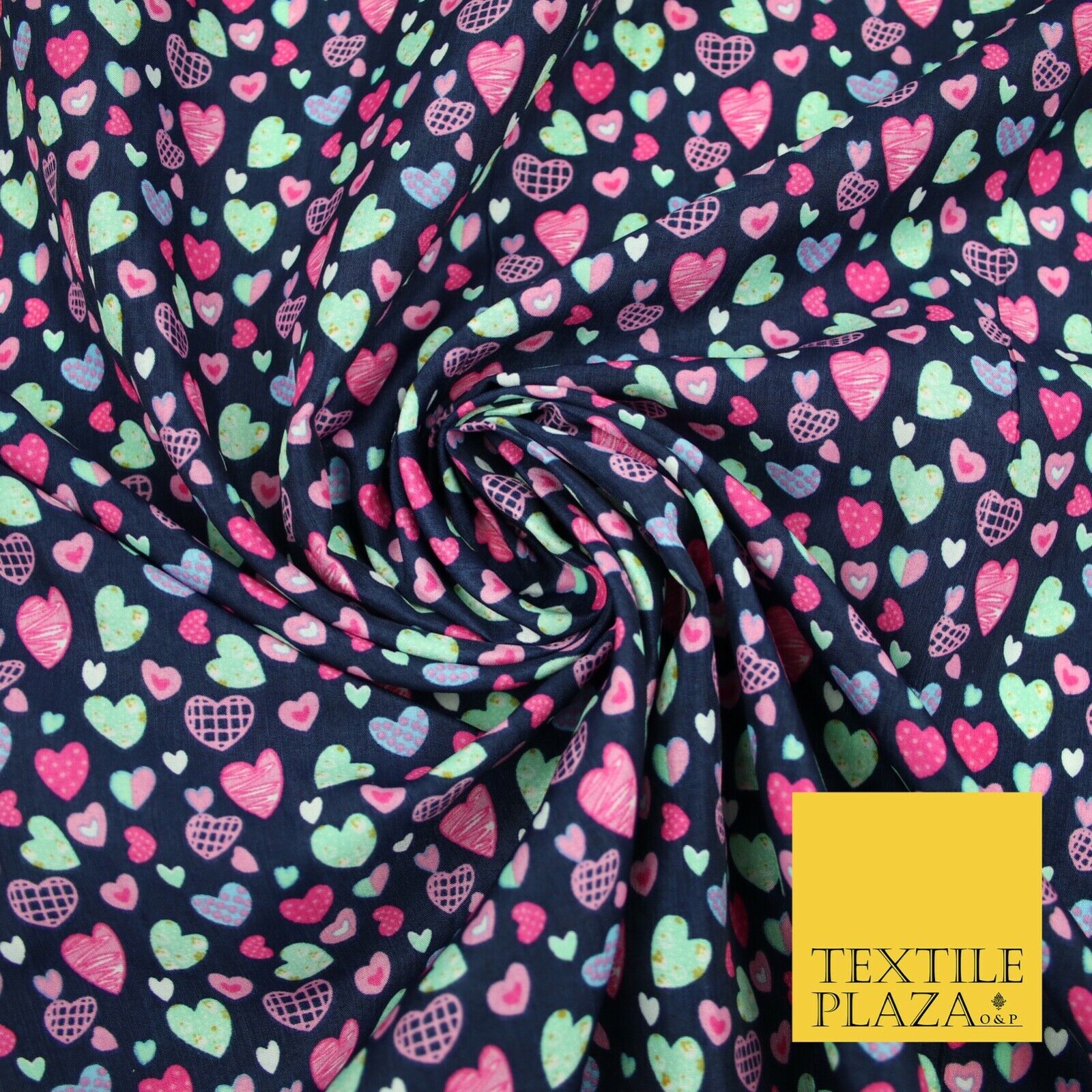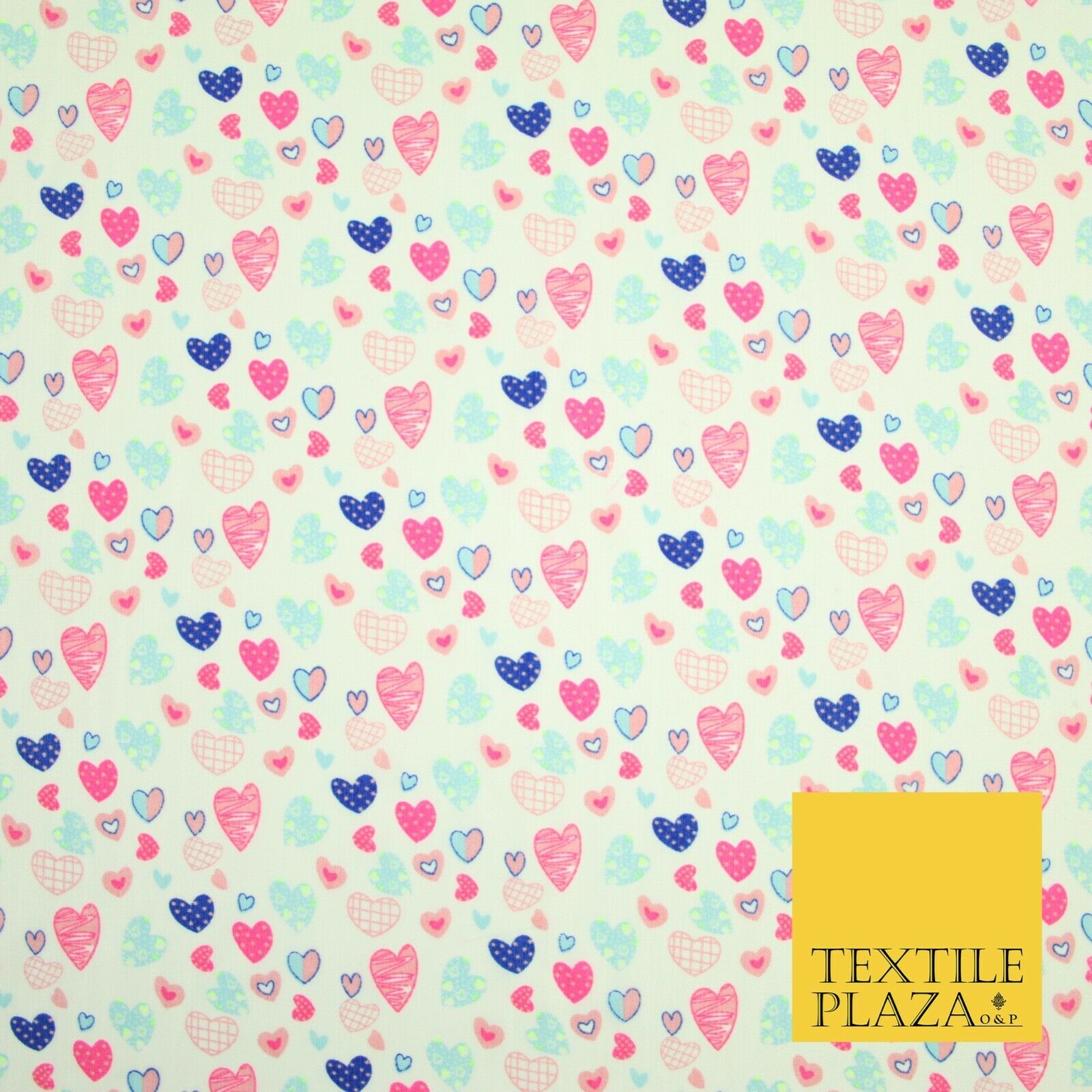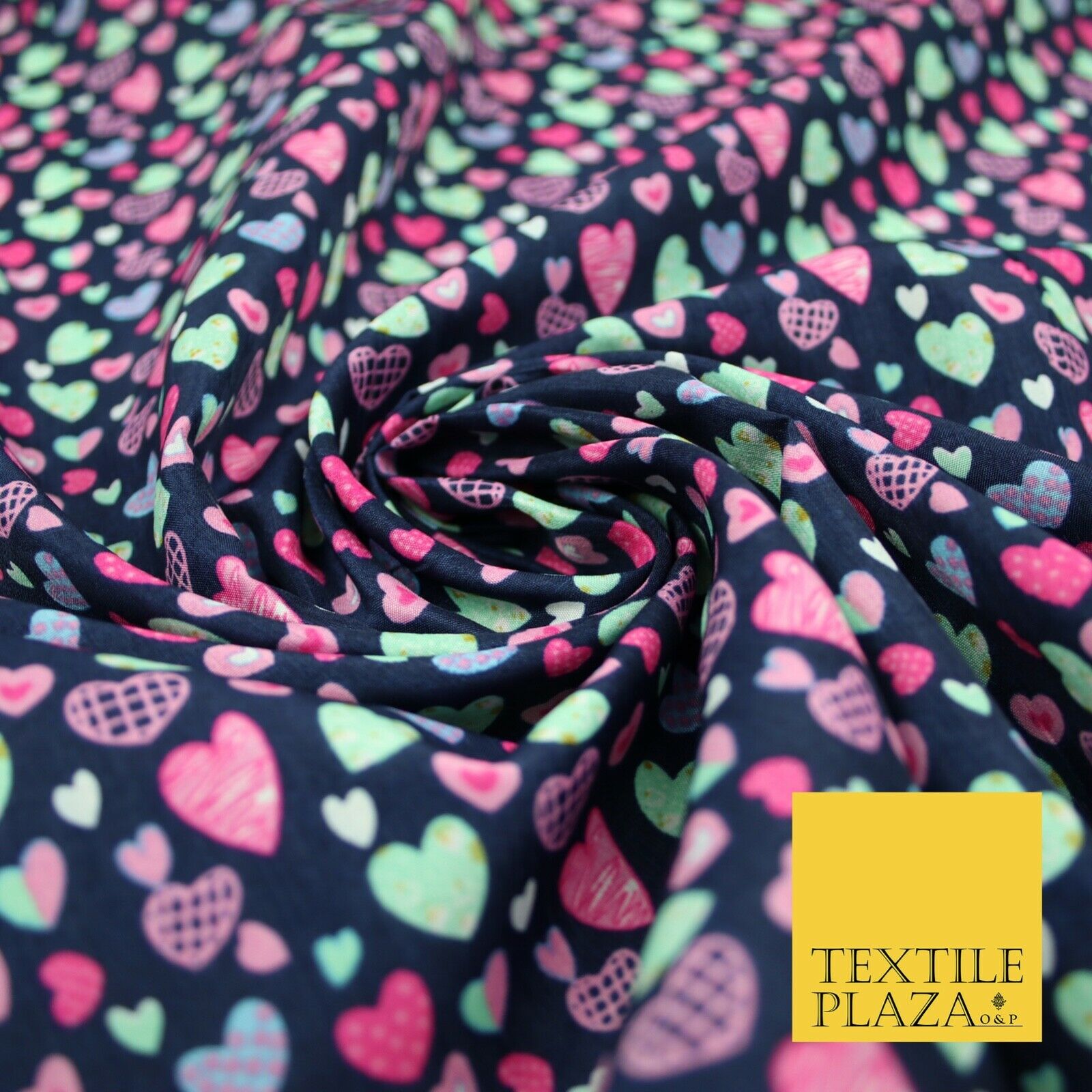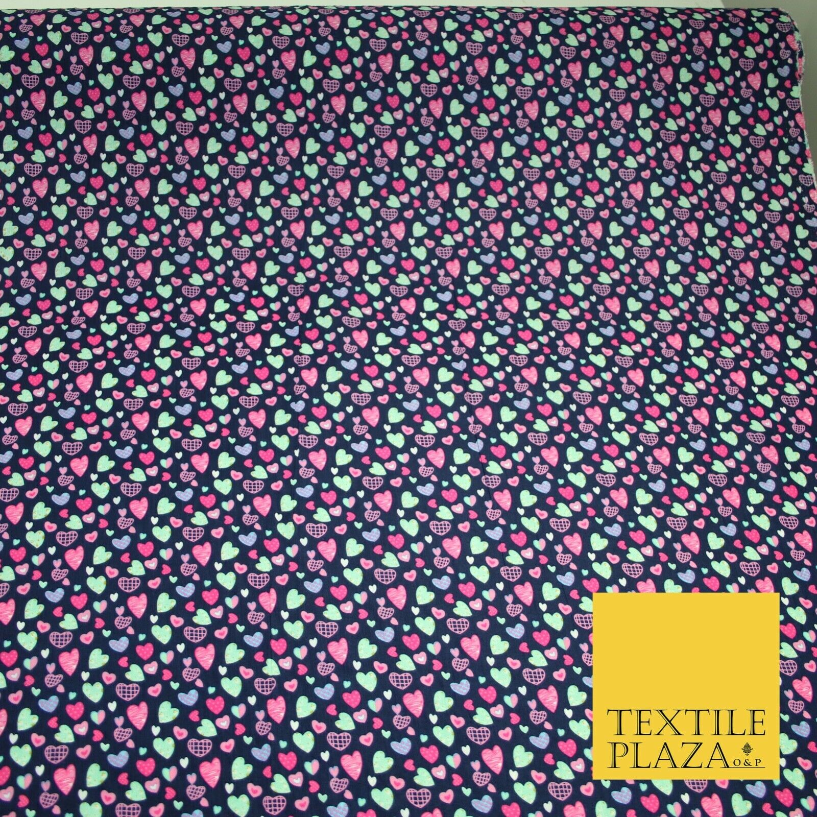 Small Cute Heart Love Valentine Rainbow Printed Crepe Polyester Dress Fabric 58"