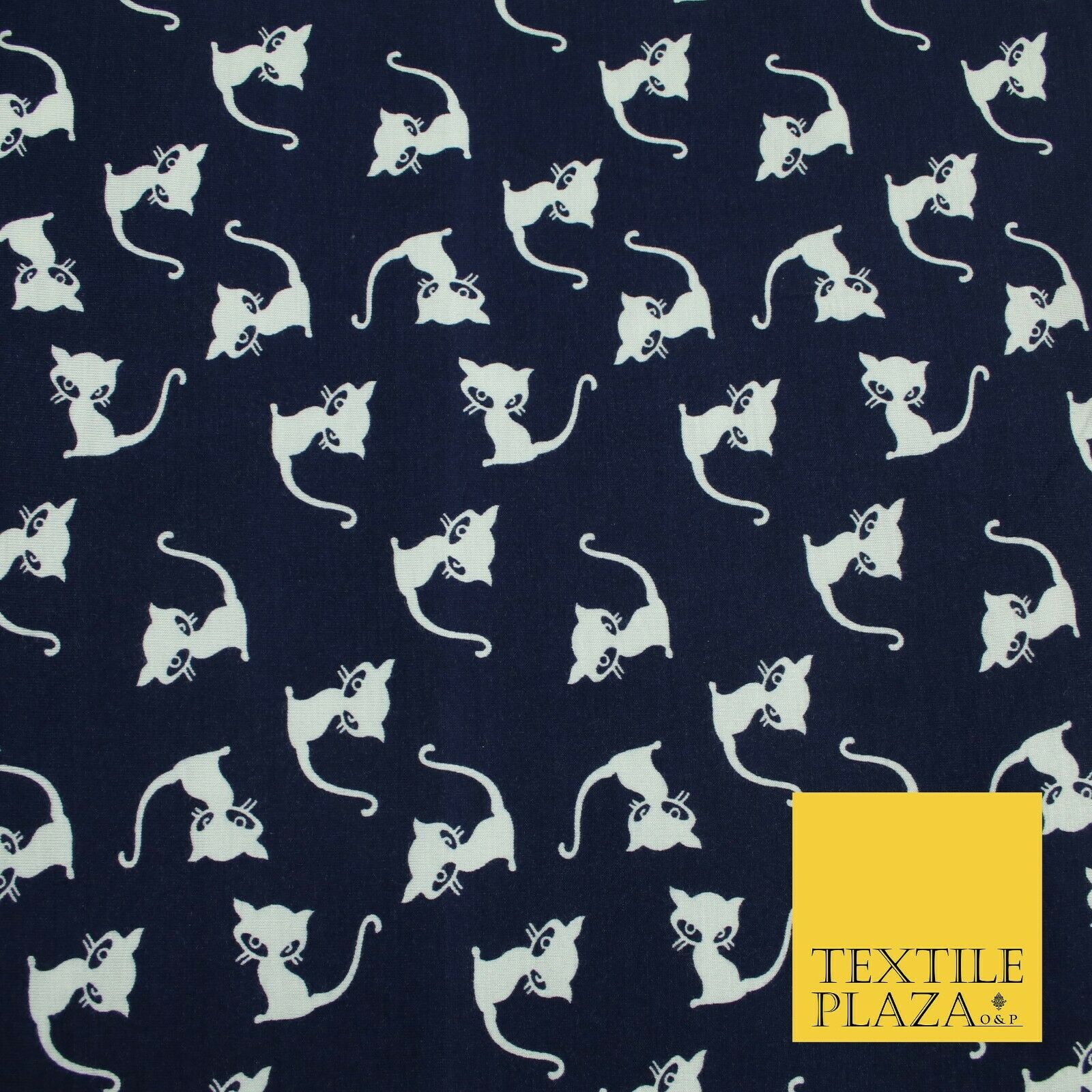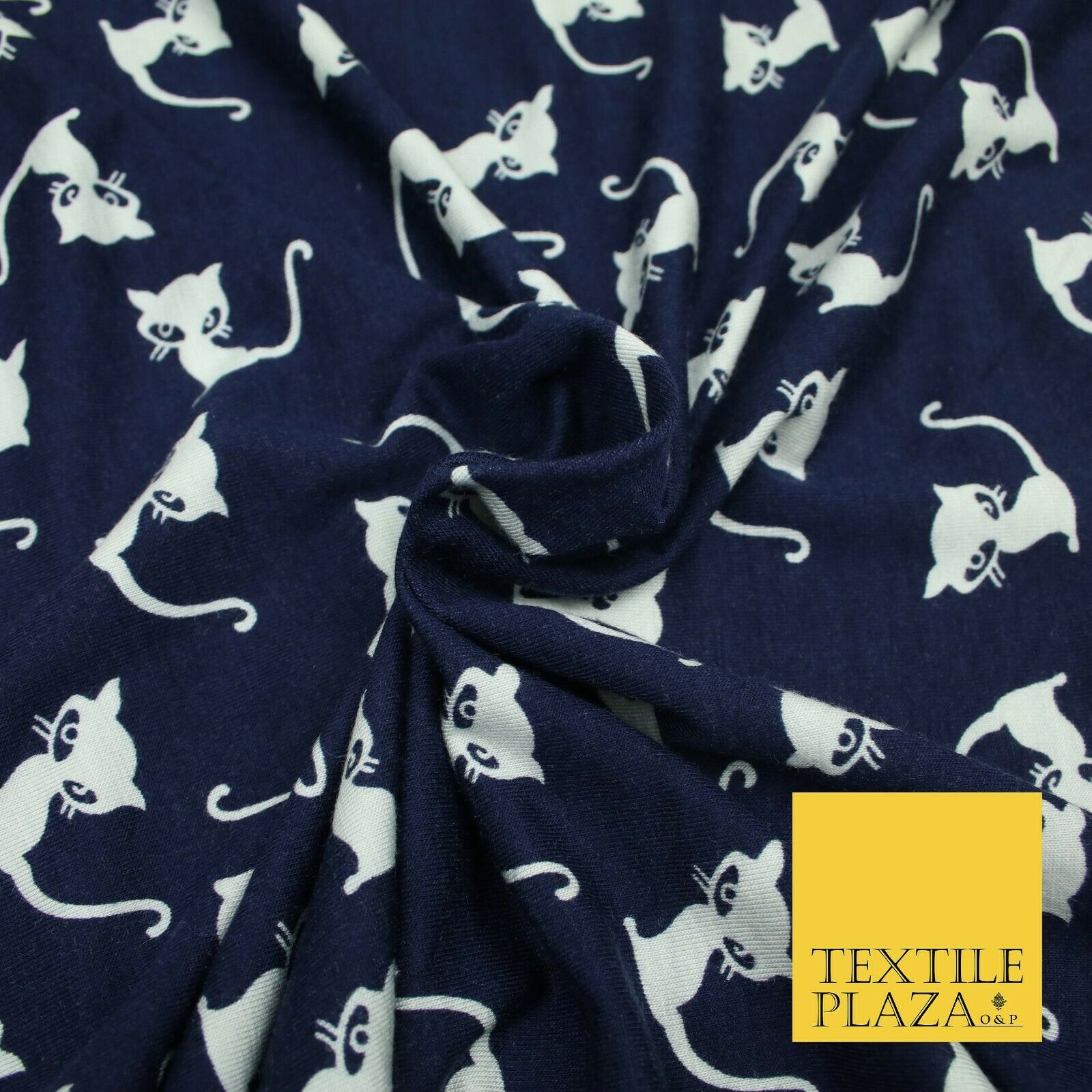 Soft Blue White Siamese Cats Printed Brushed Stretch Rayon Jersey Fabric 1952