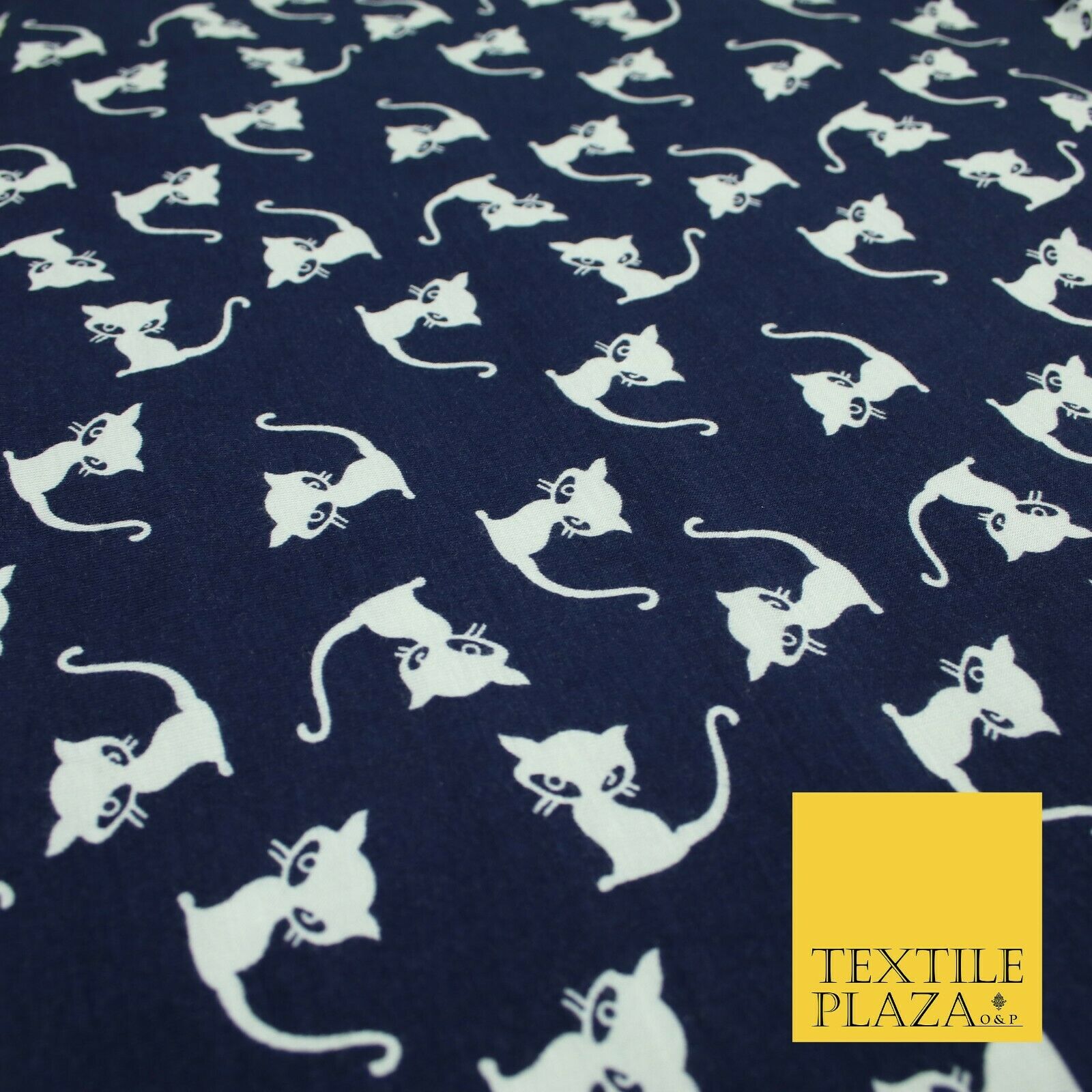 Soft Blue White Siamese Cats Printed Brushed Stretch Rayon Jersey Fabric 1952