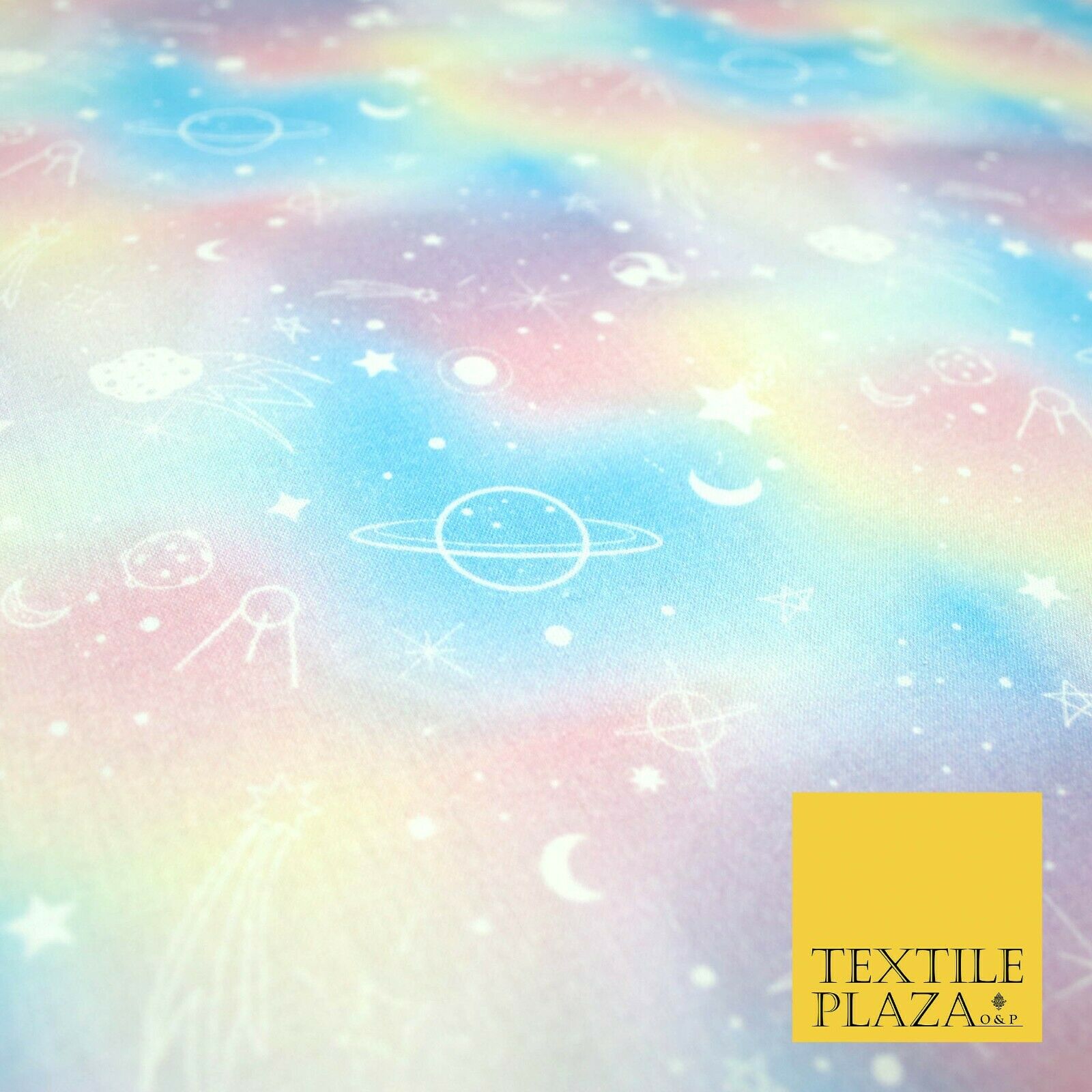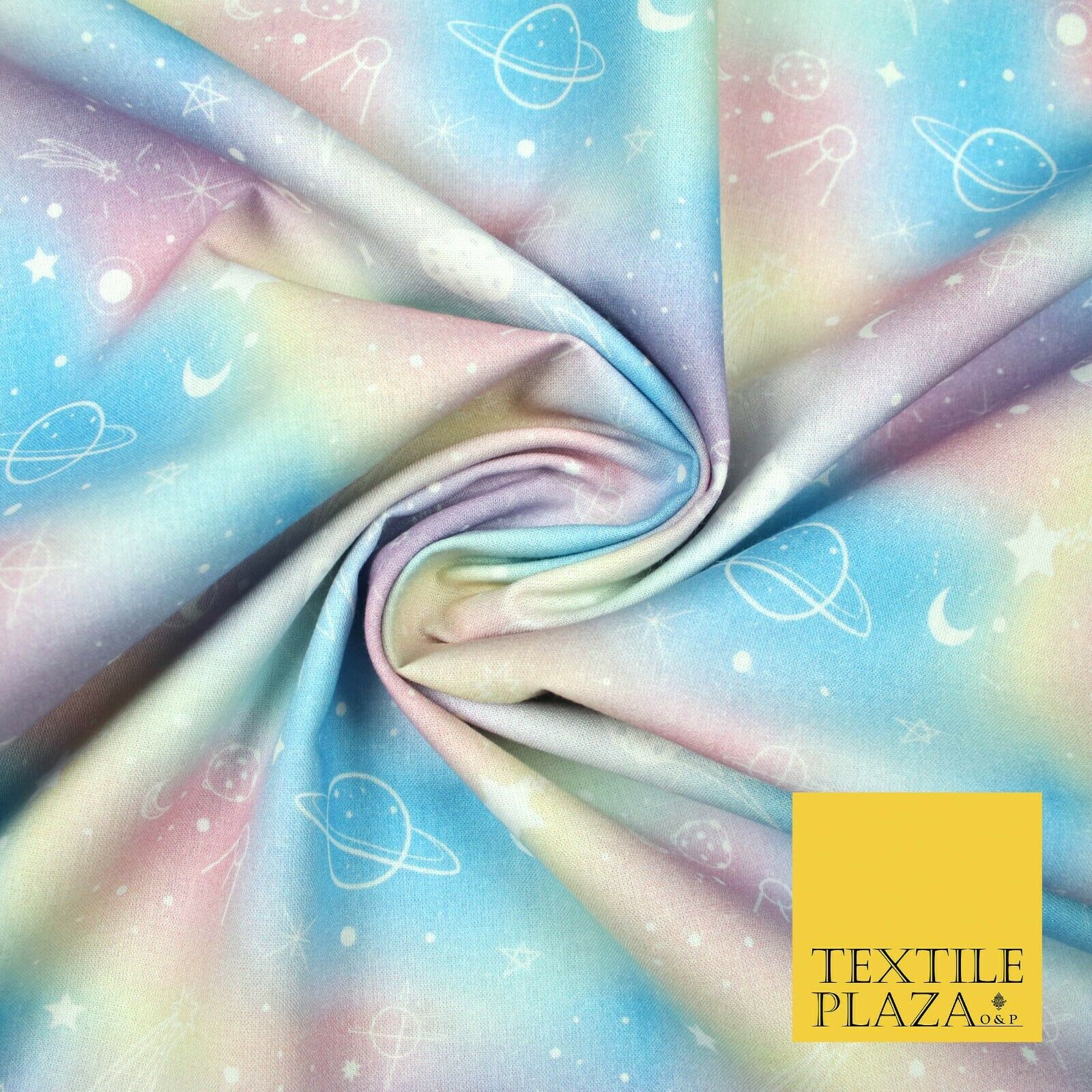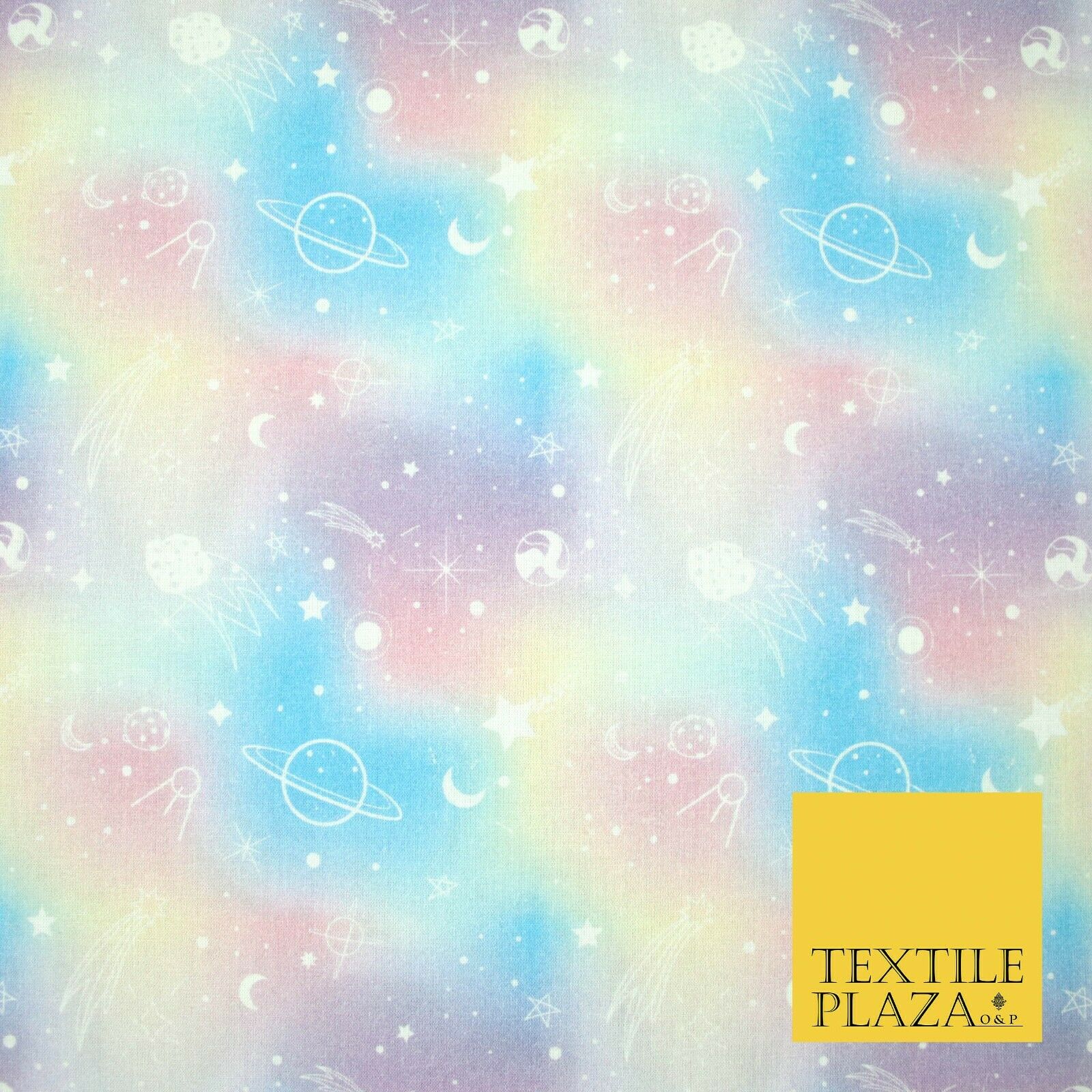 Space Planets Moon Stars Pastel Shaded Digital Print 100% Cotton Fabric 58" 5418