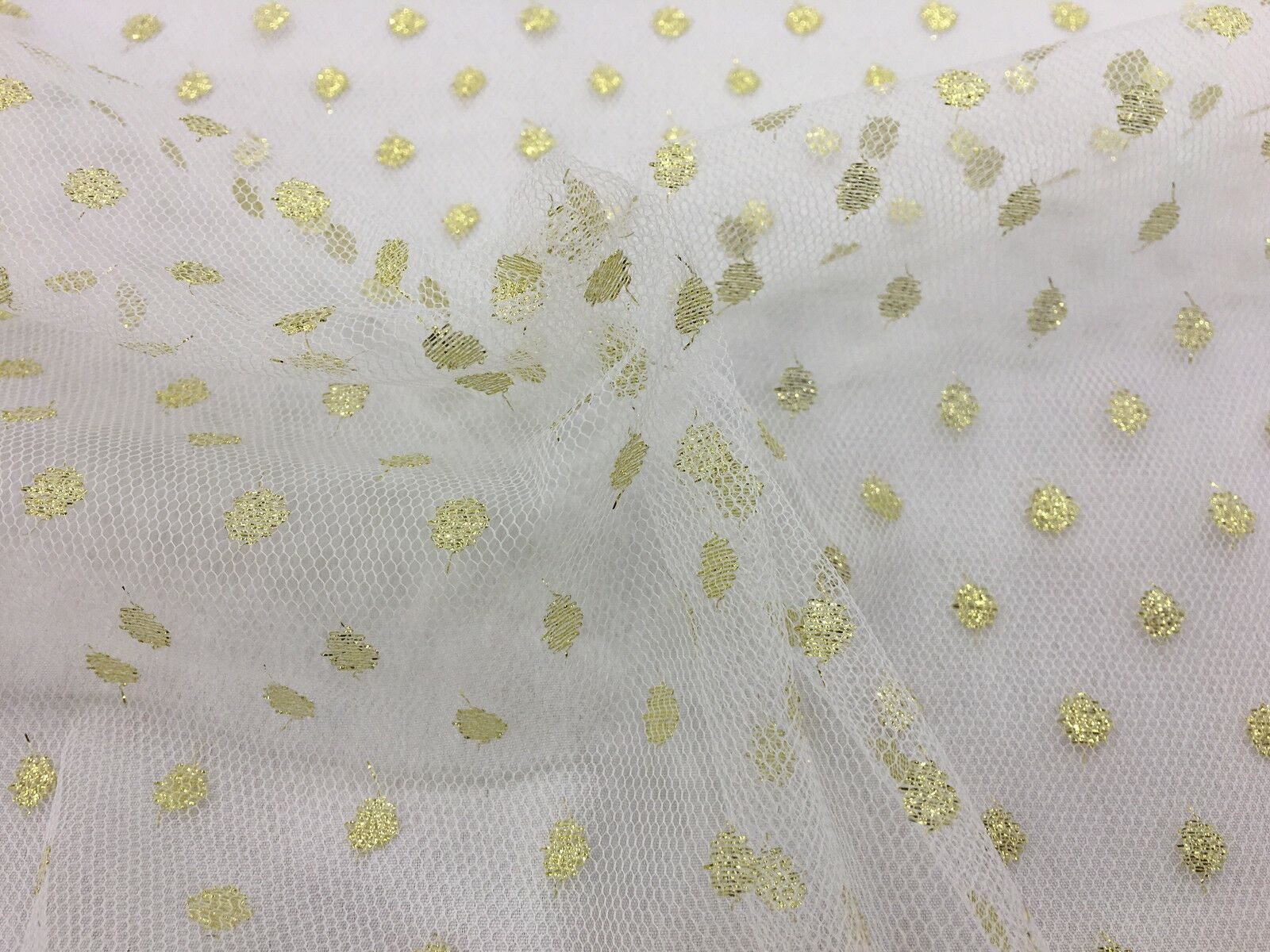 Sparkle Spot Print Mesh Fabric - 100% Polyester- Per Metre - GOLD/WHITE - RE88