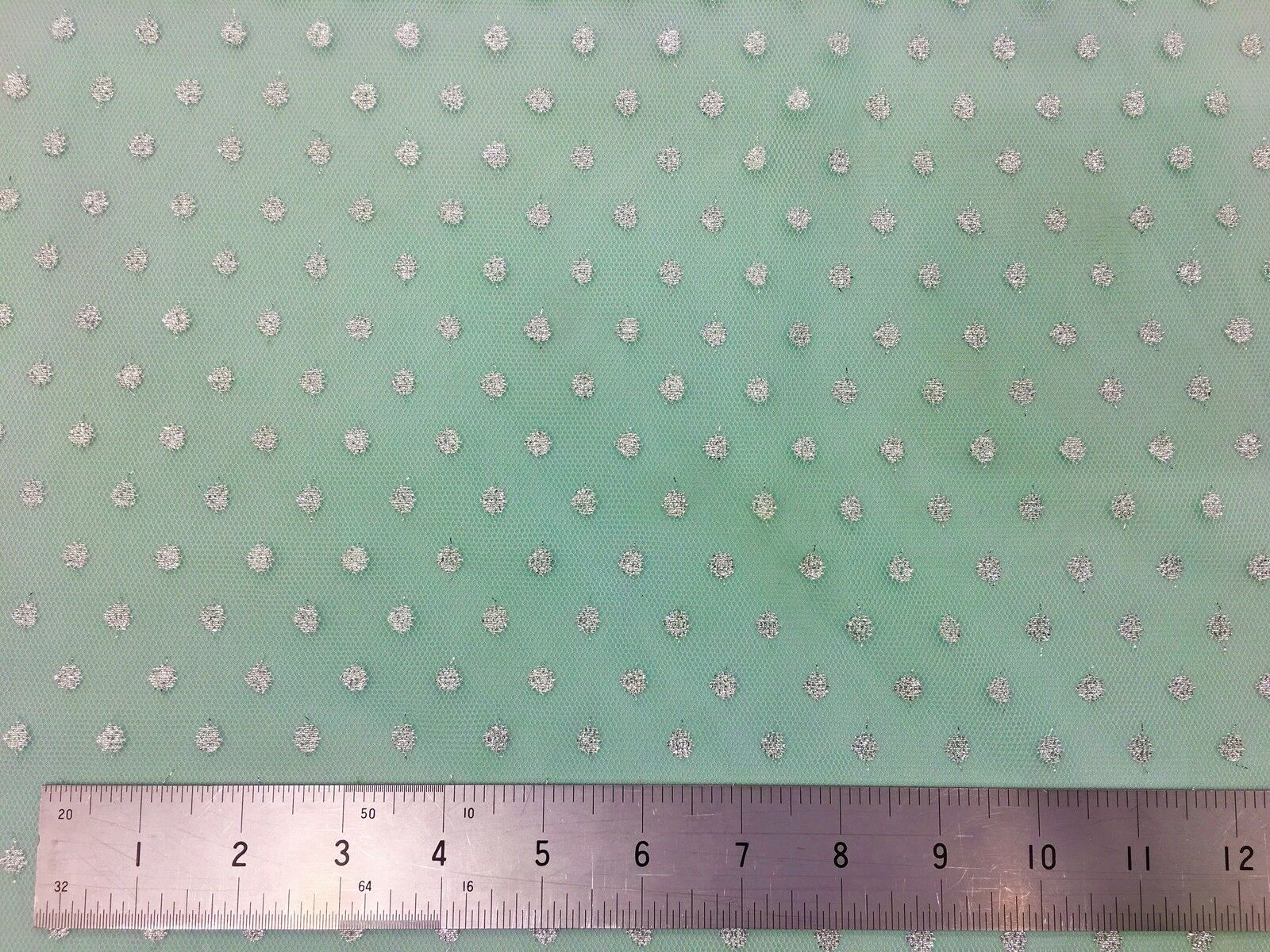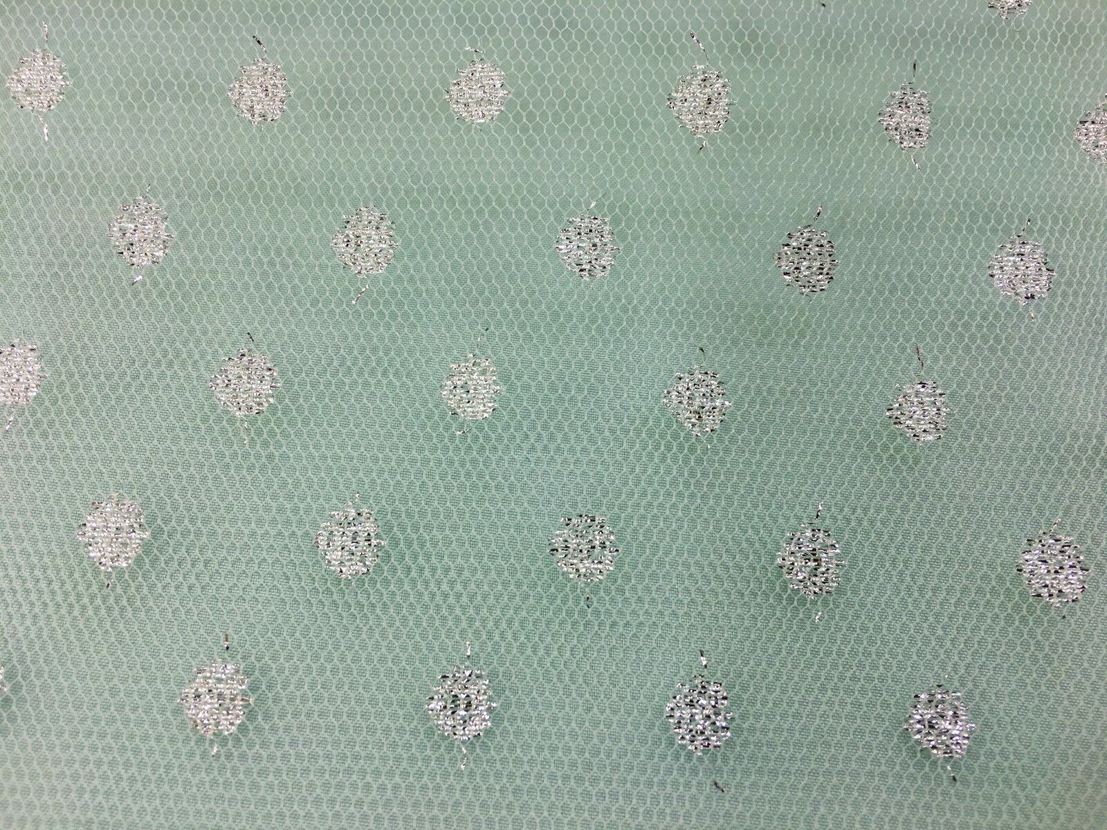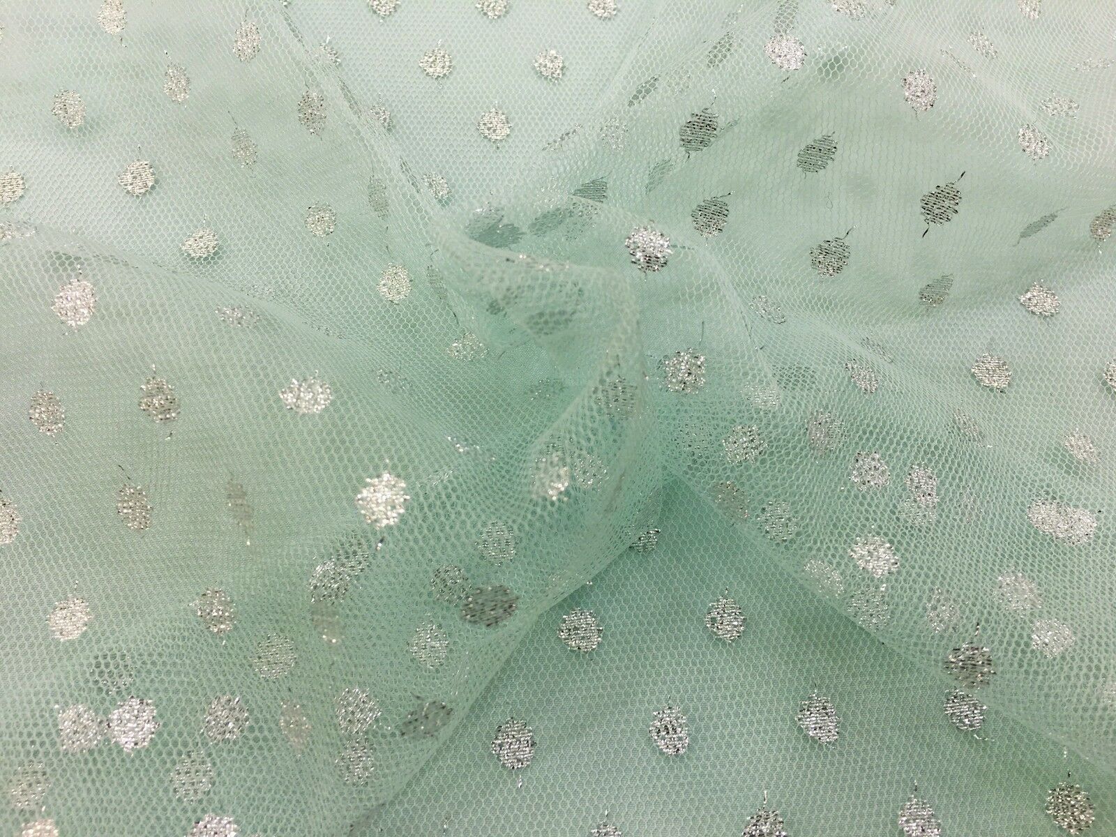 Sparkle Spot Print Mesh Fabric - 100% Polyester- Per Metre - SILVER/MINT - RE90