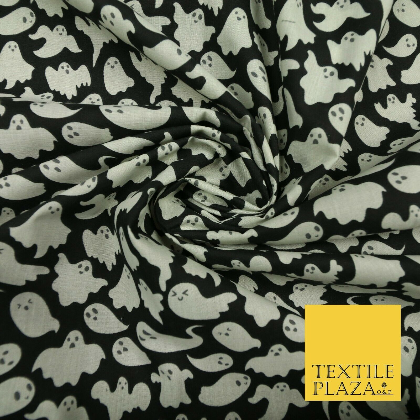 Spooky Scary Flying Ghosts Ghouls HALLOWEEN Printed Polycotton Fabric 45" Wide