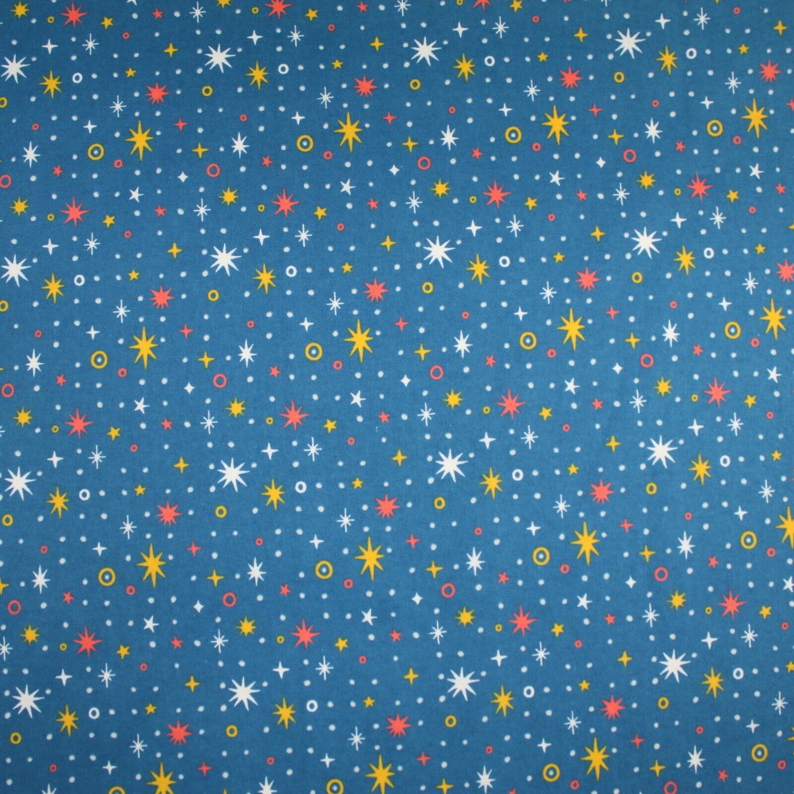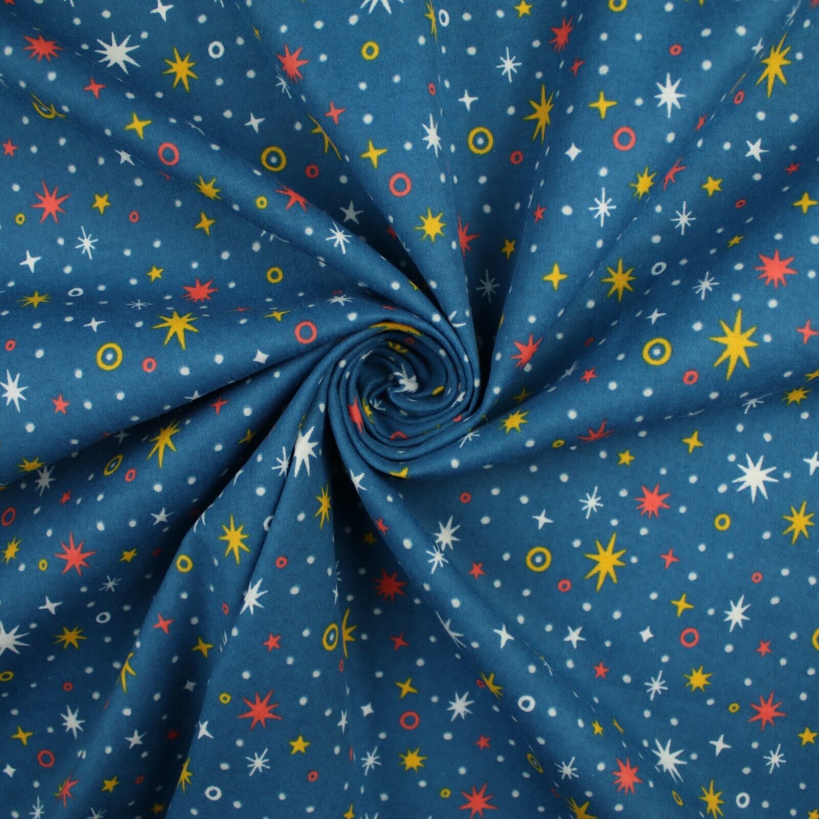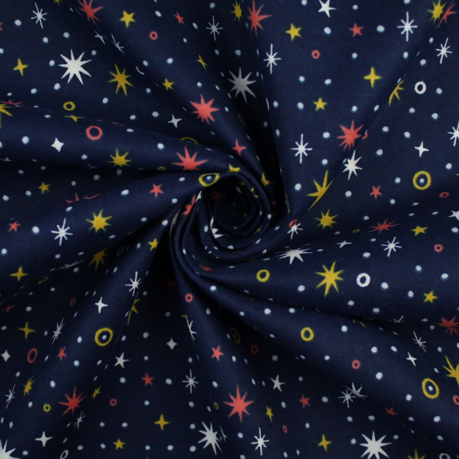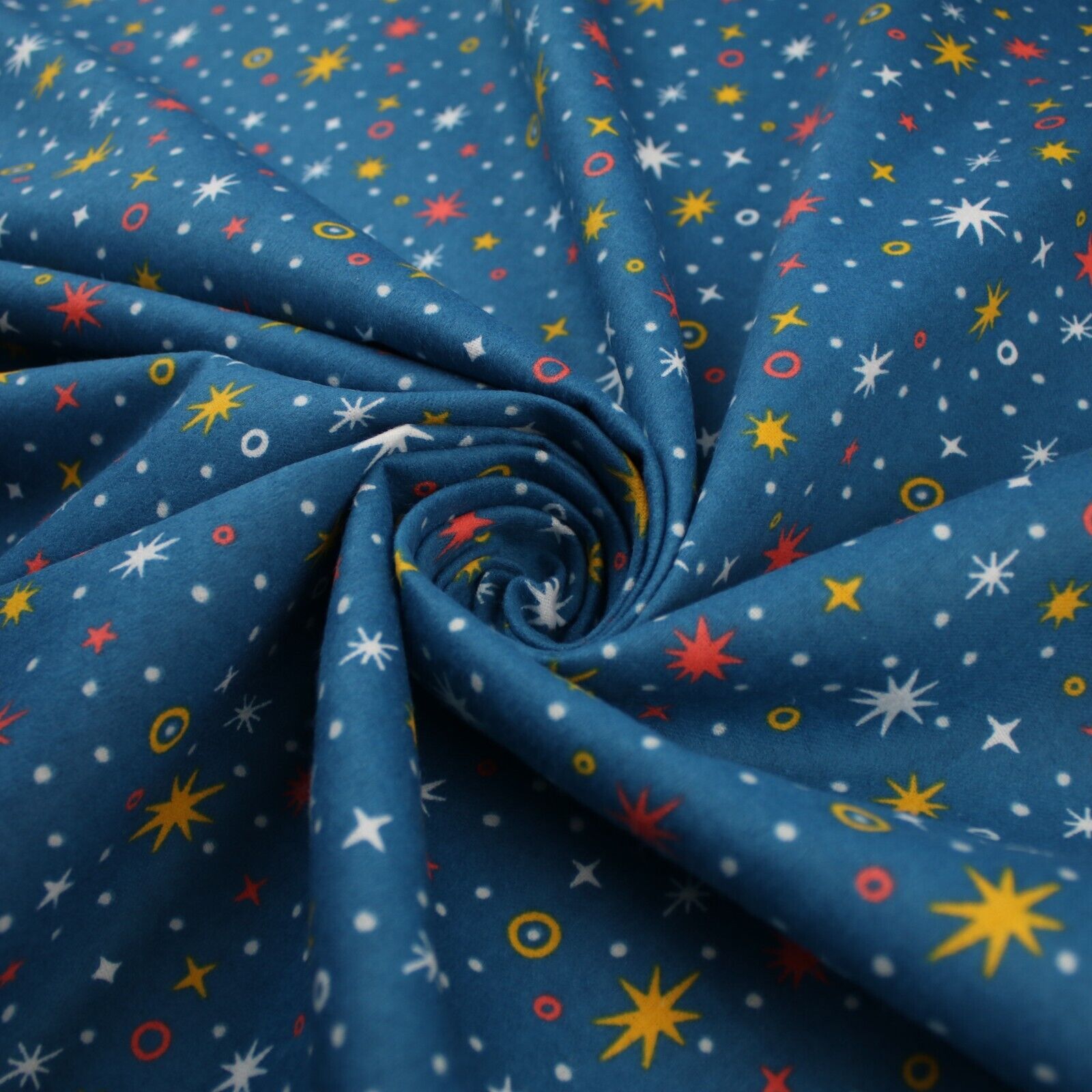 Starry Night Sparkle Stars Brushed Cotton Winceyette Fabric Flannel