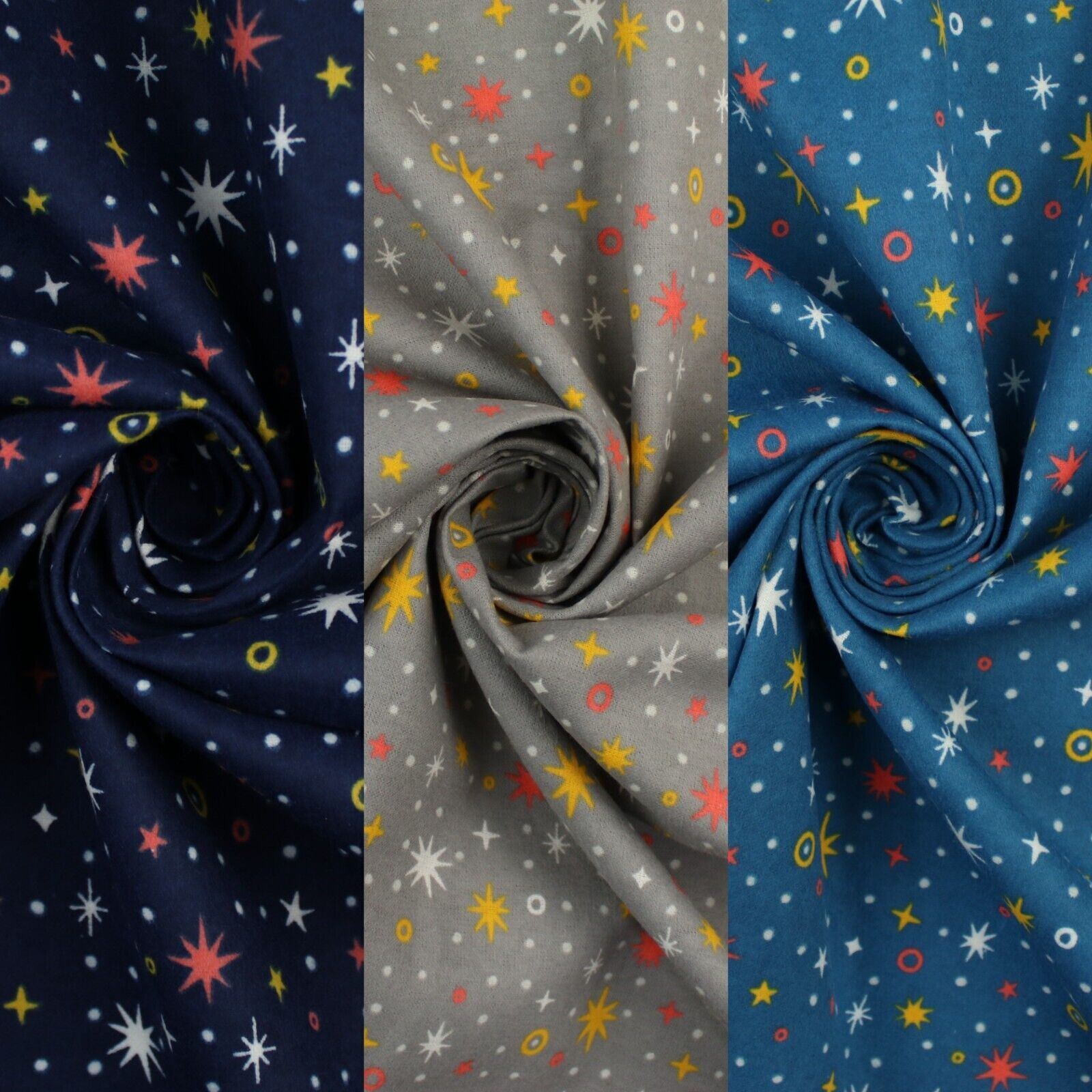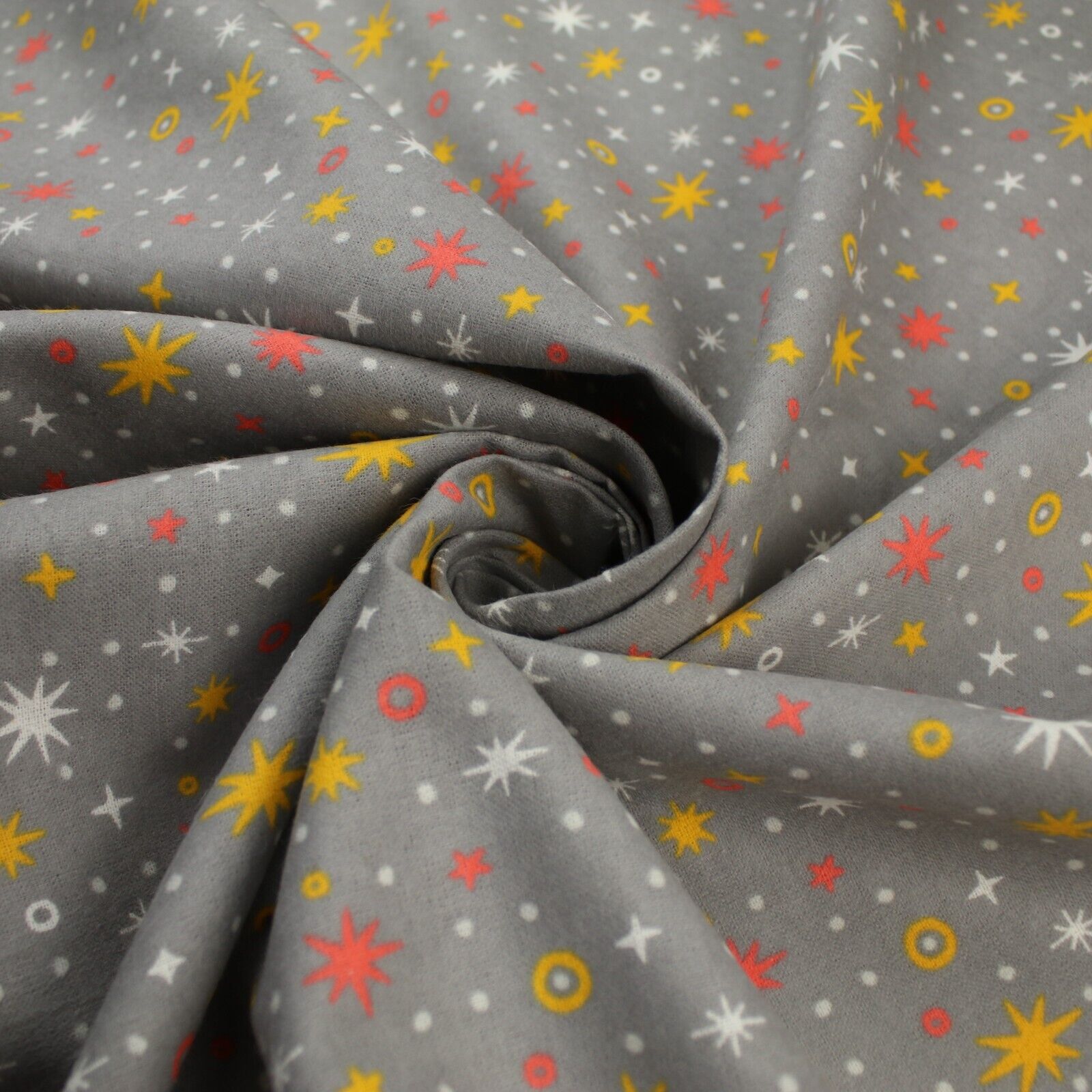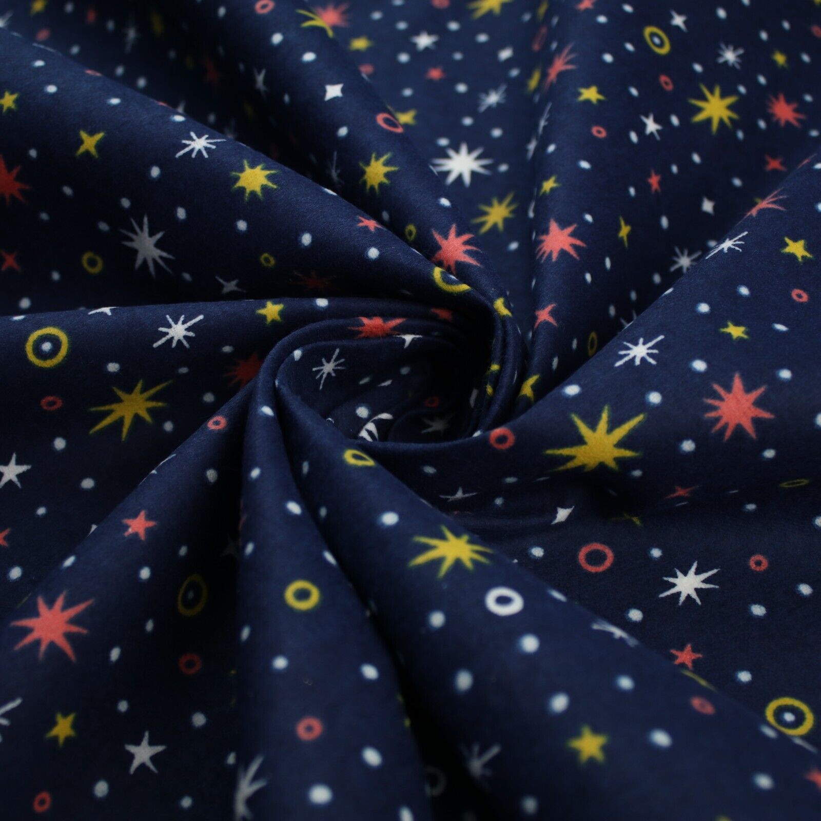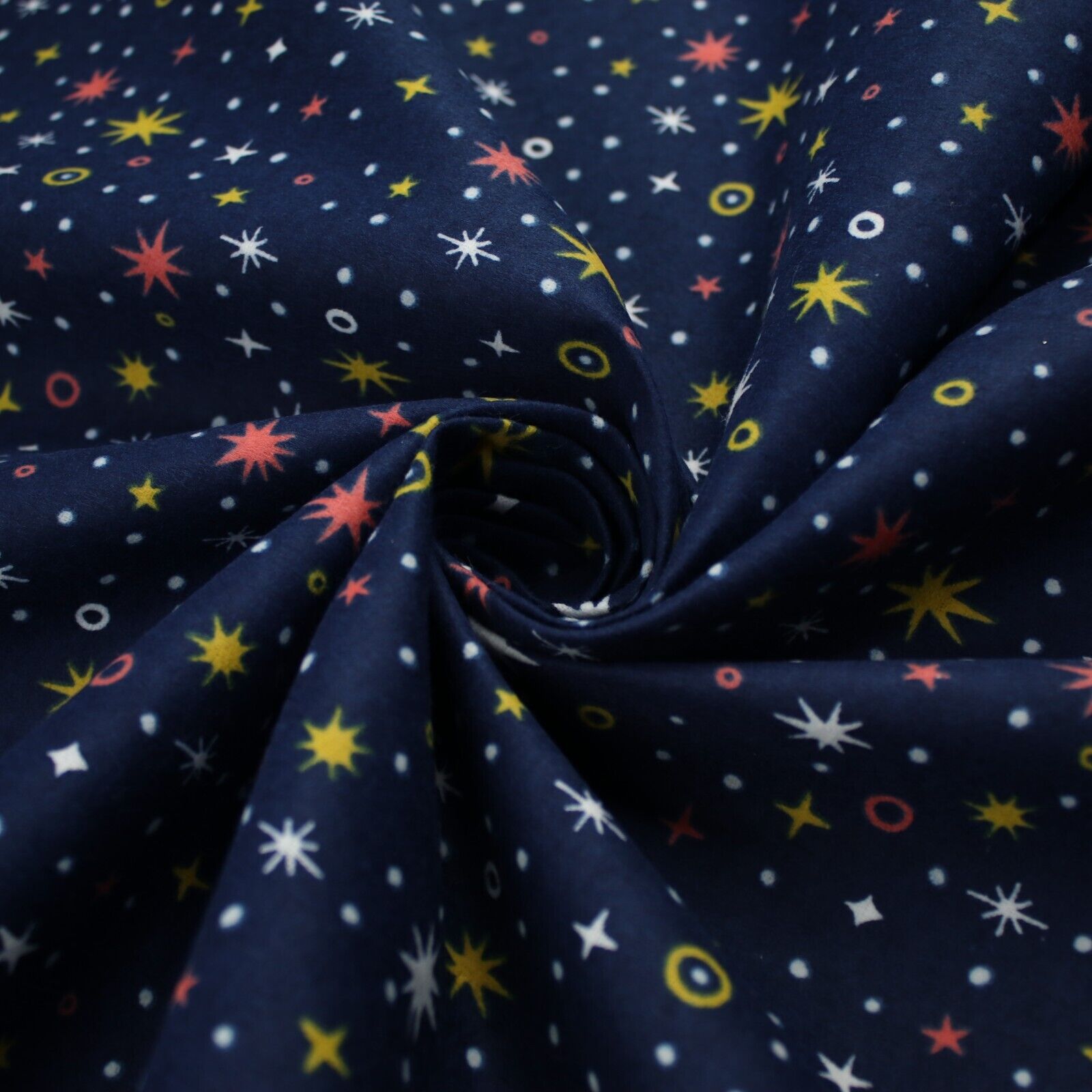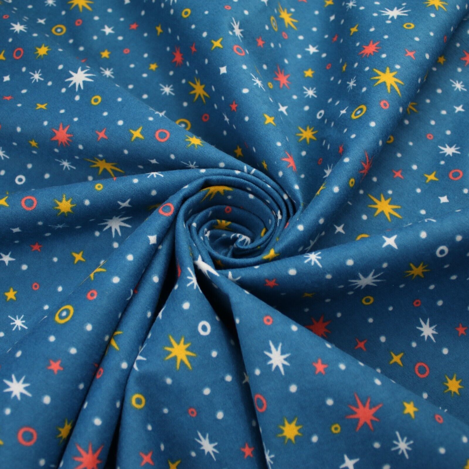 Starry Night Sparkle Stars Brushed Cotton Winceyette Fabric Flannel
