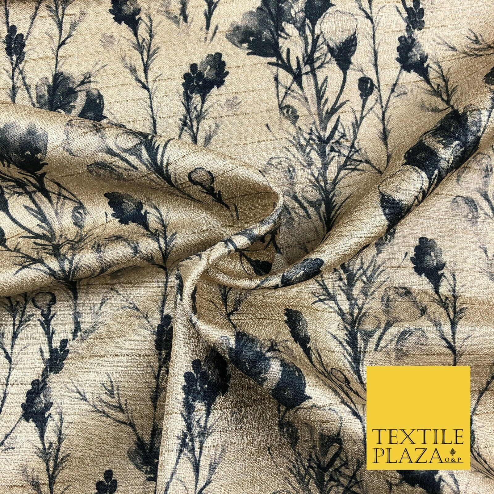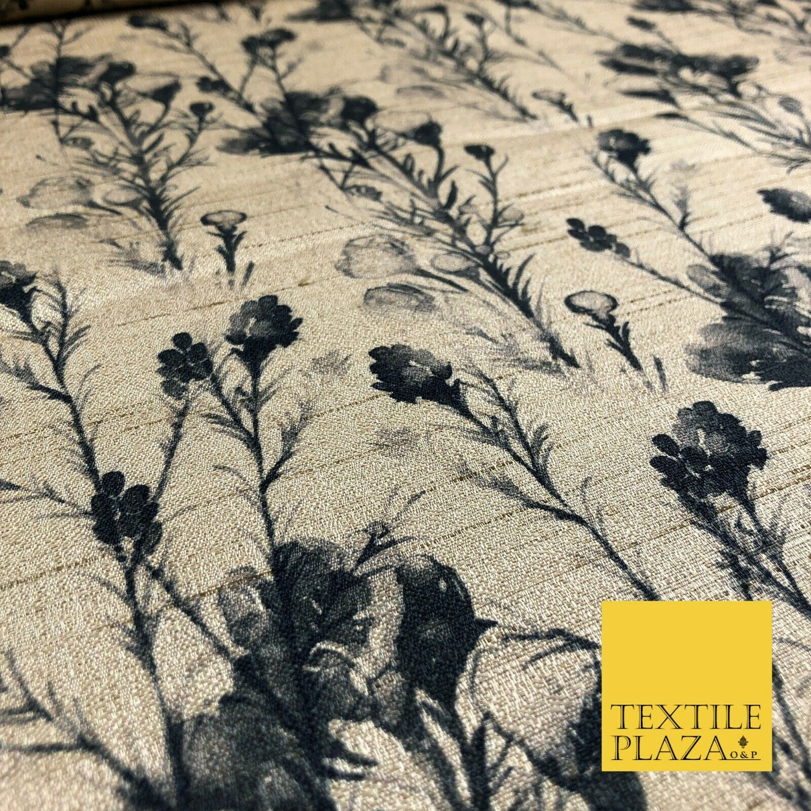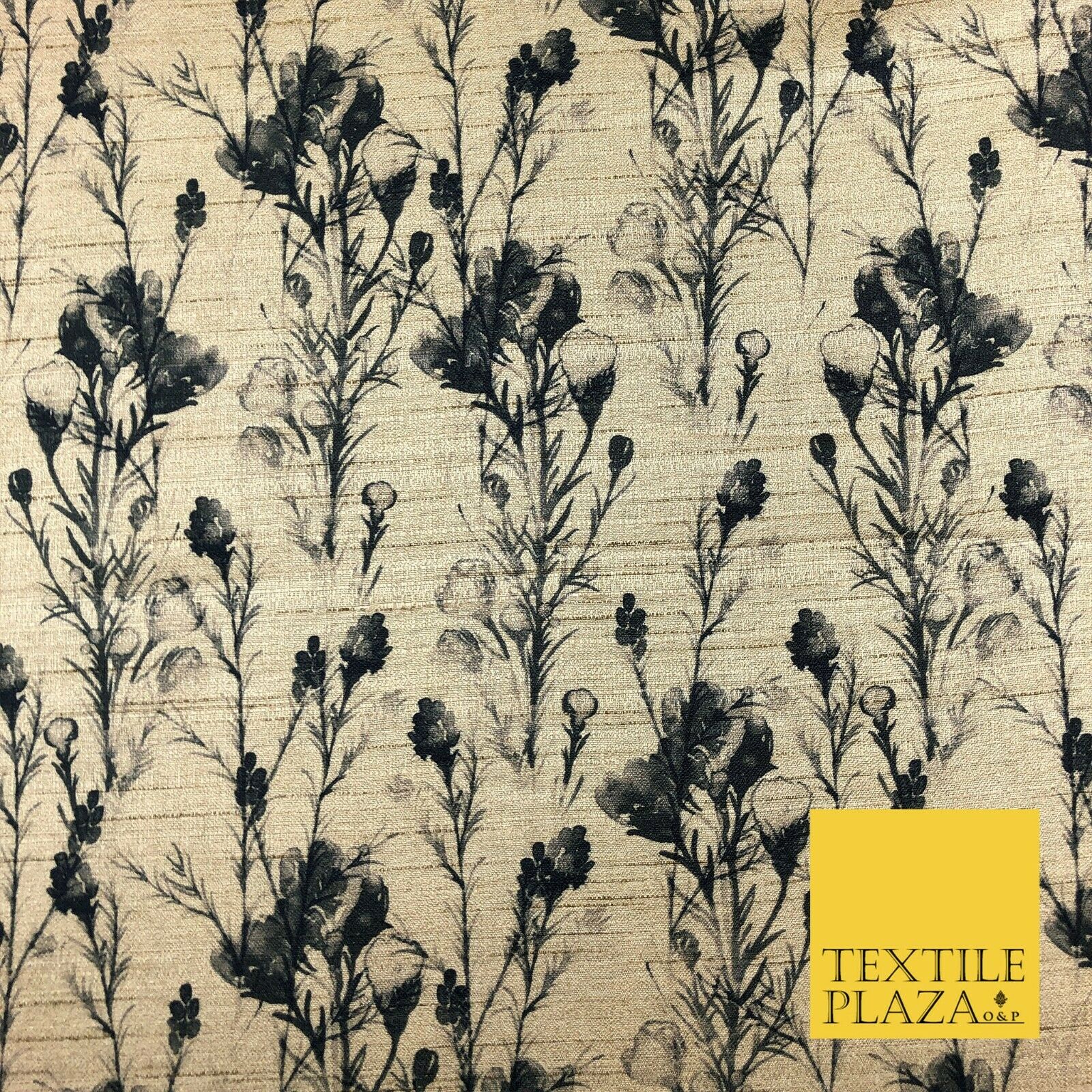 STONE BLACK Watercolour Floral Digital Print Faux Raw Silk Fabric DressCraft1464