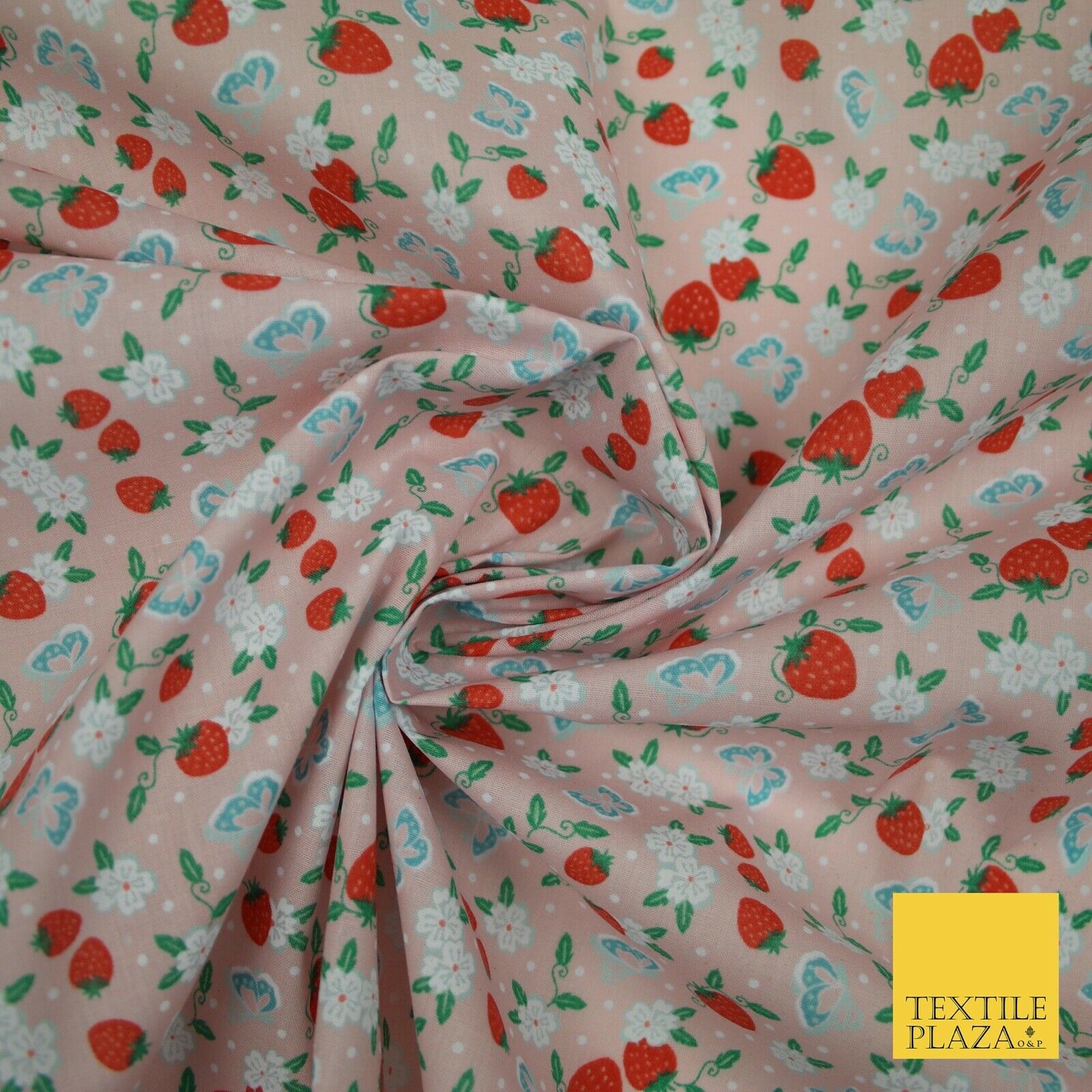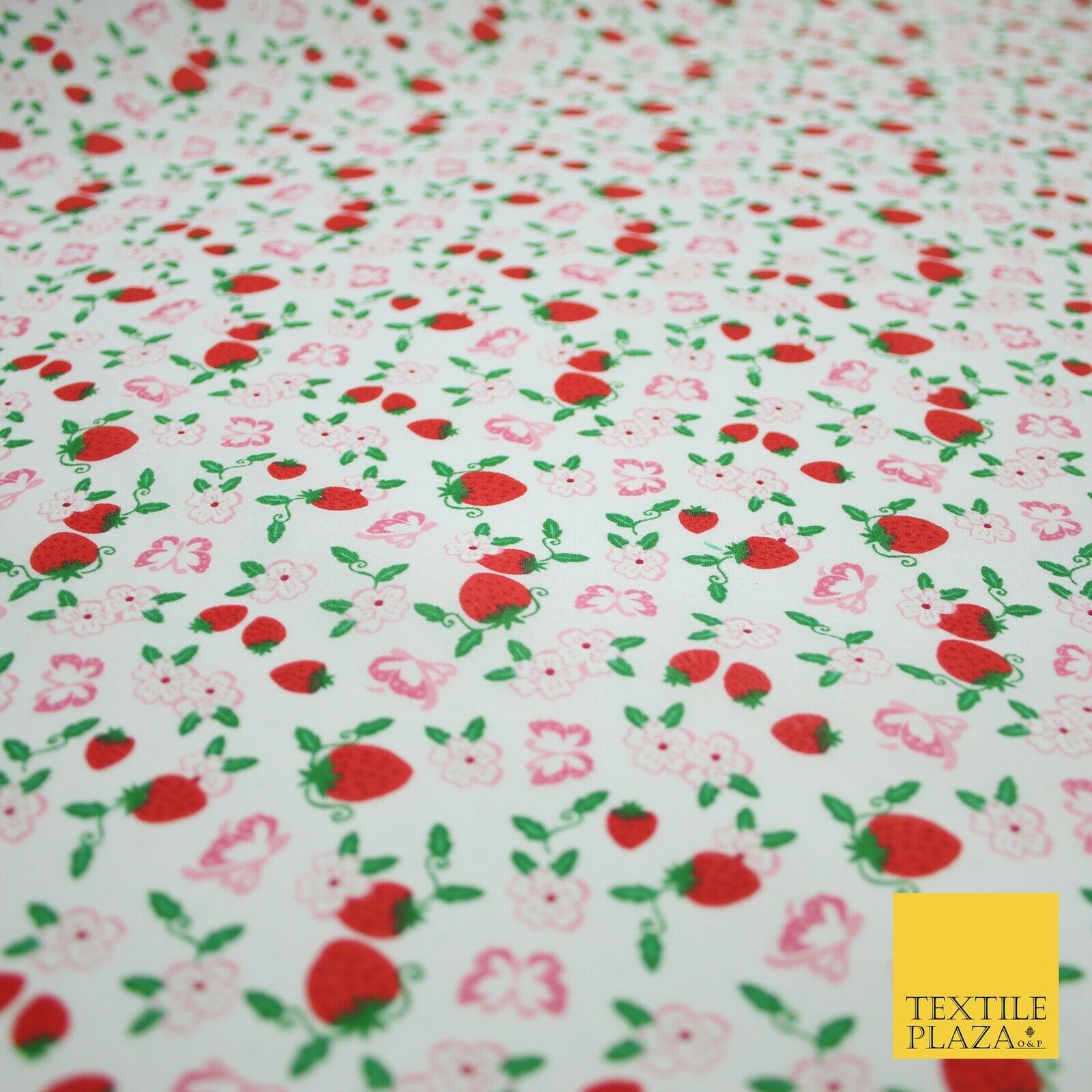 Strawberry Butterfly Ditsy Flower Printed Poly Cotton Fabric Polycotton Mask 45"